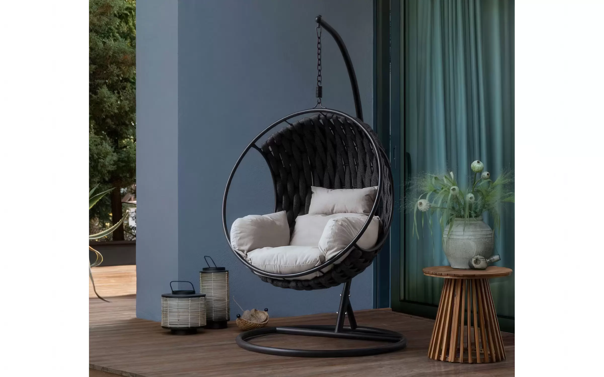 Fotel ogrodowy kokon wiszący na stelażu metalowym GALAPAGOS