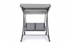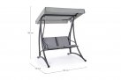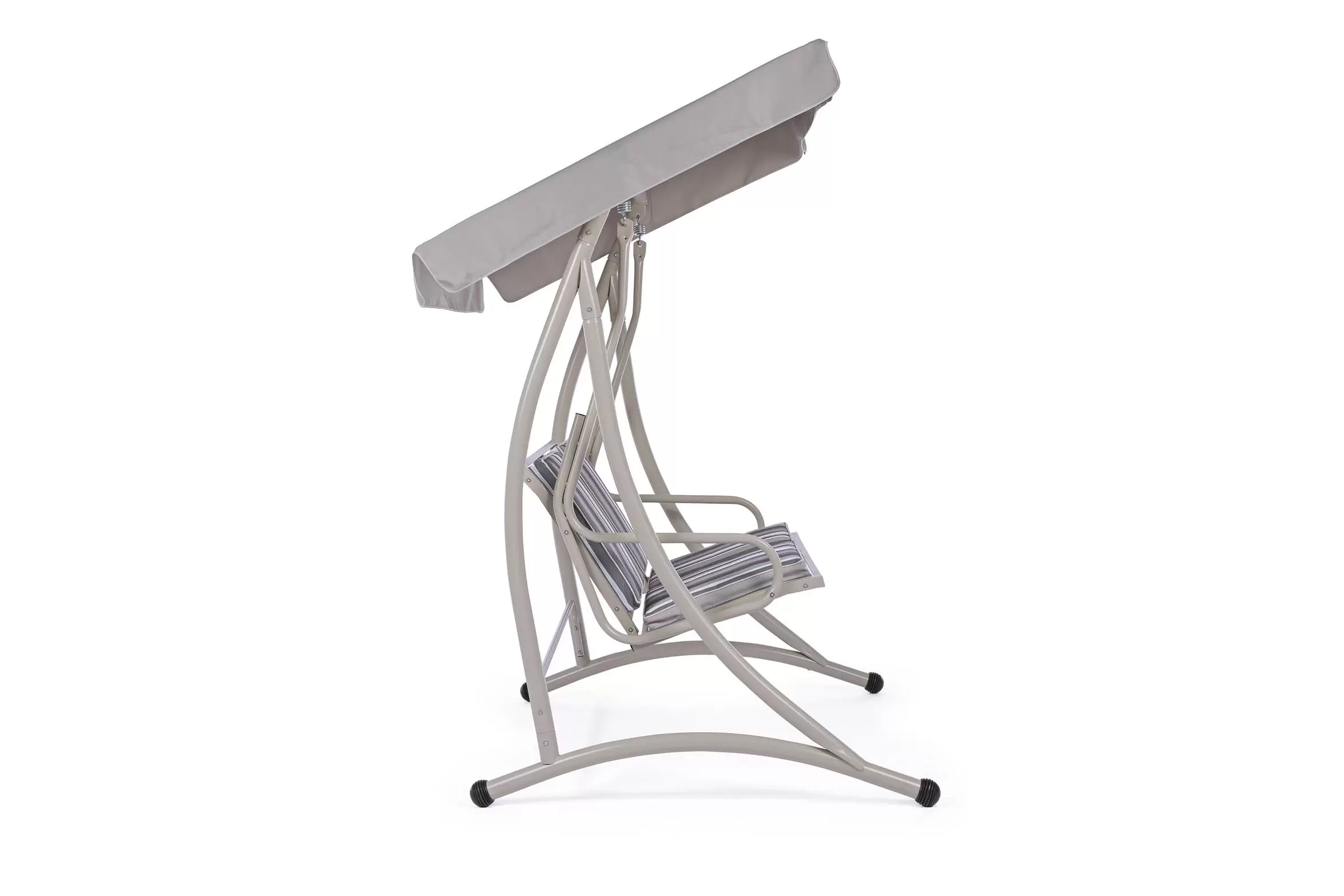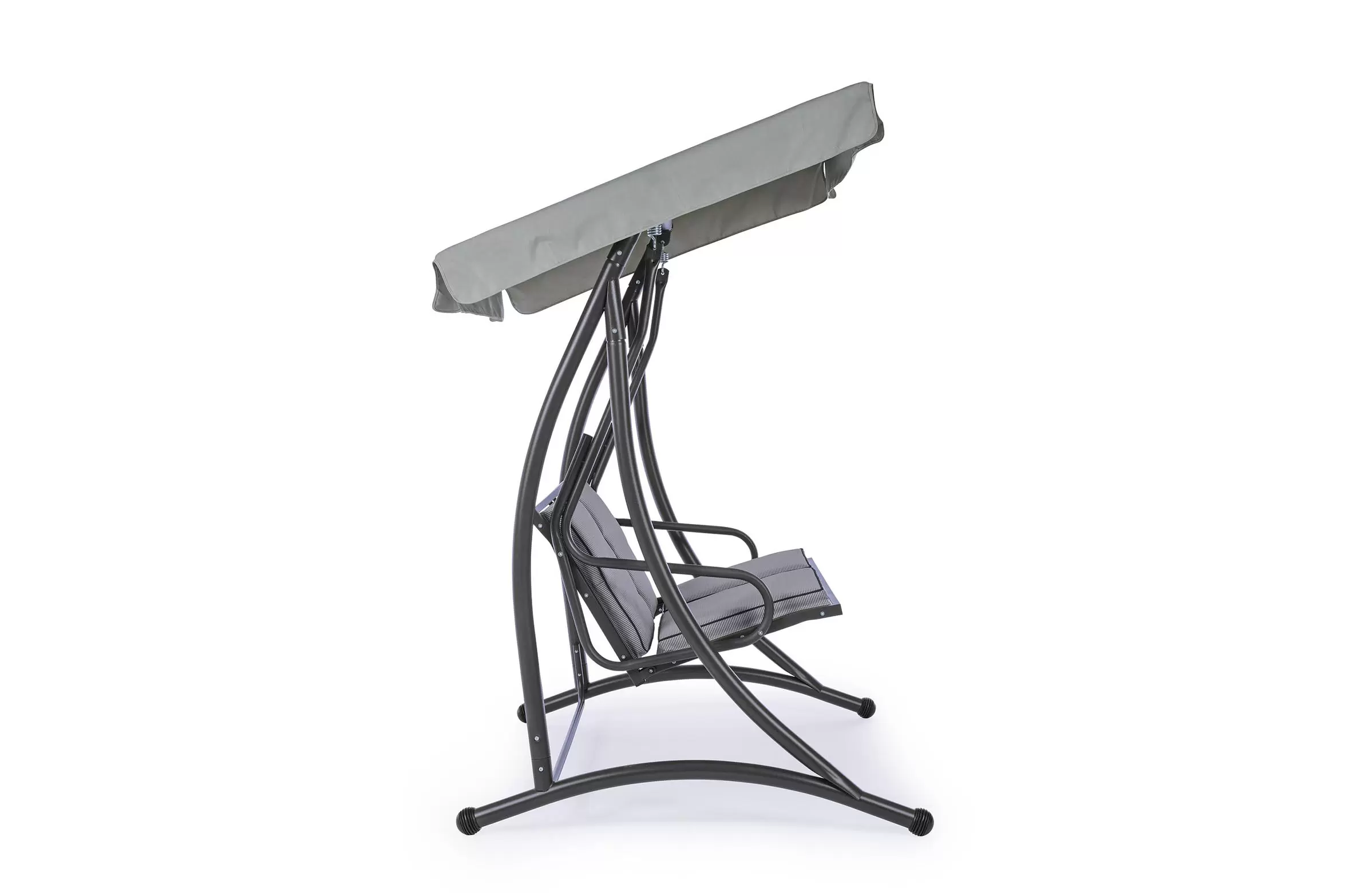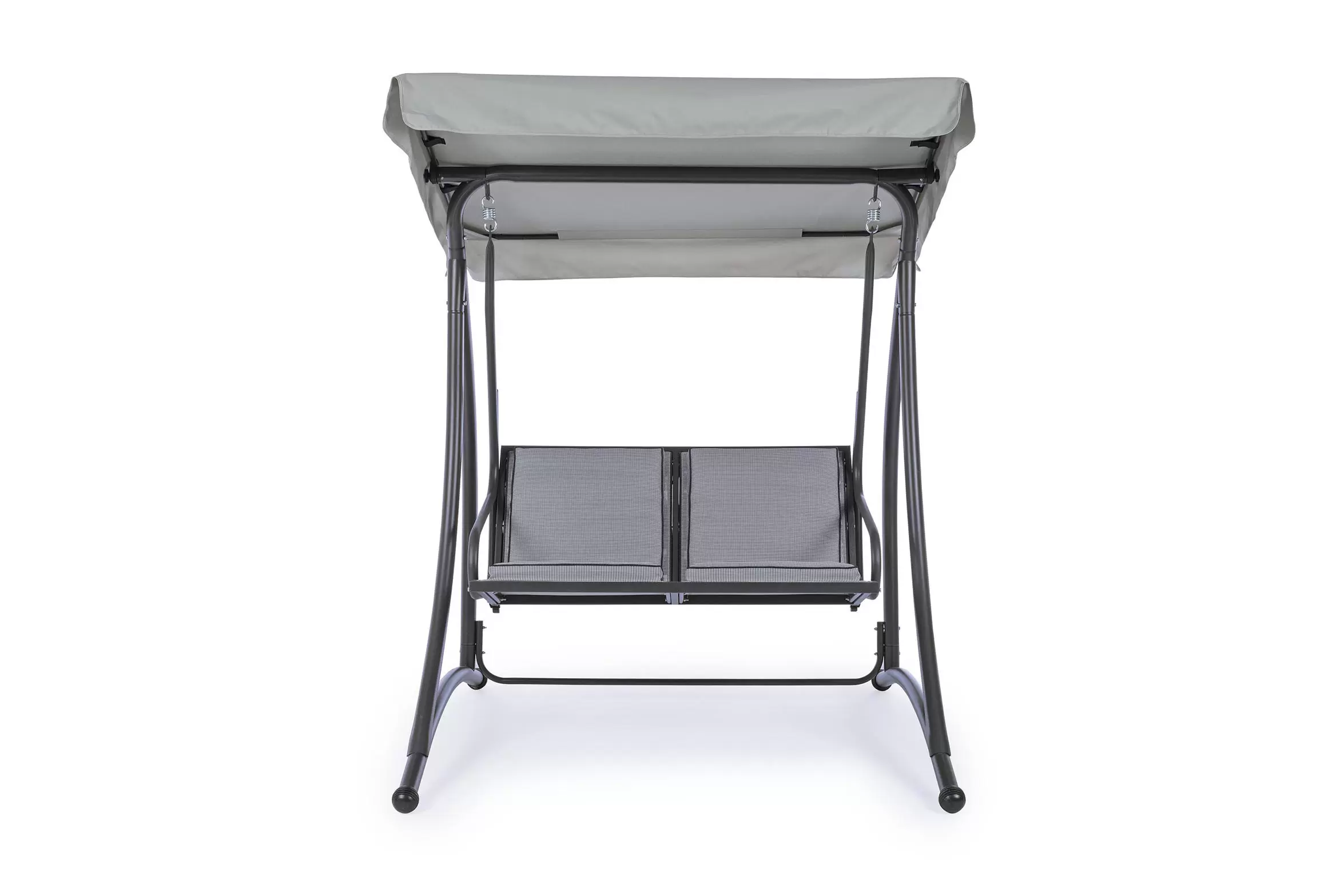 Stalowa huśtawka ogrodowa z daszkiem dla 2 osób. Dwa kolory konstrukcji oraz siedziska z miękkim wypełnieniem szybkoschnącym z tekstyliny.