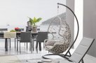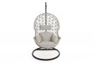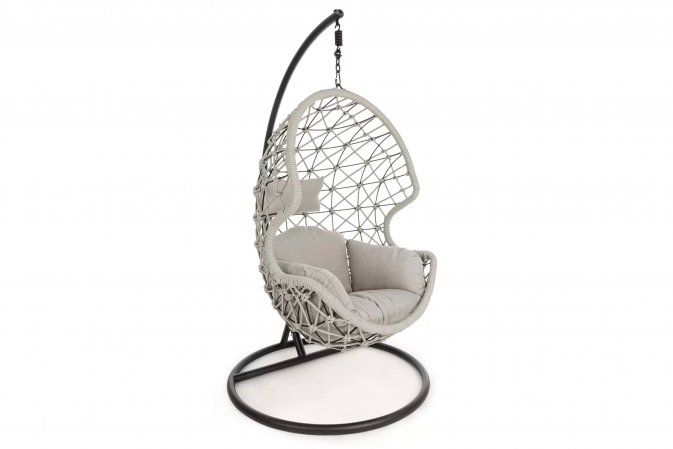 Huśtawka wisząca na stalowym stelażu do użytkowania w ogrodzie.
