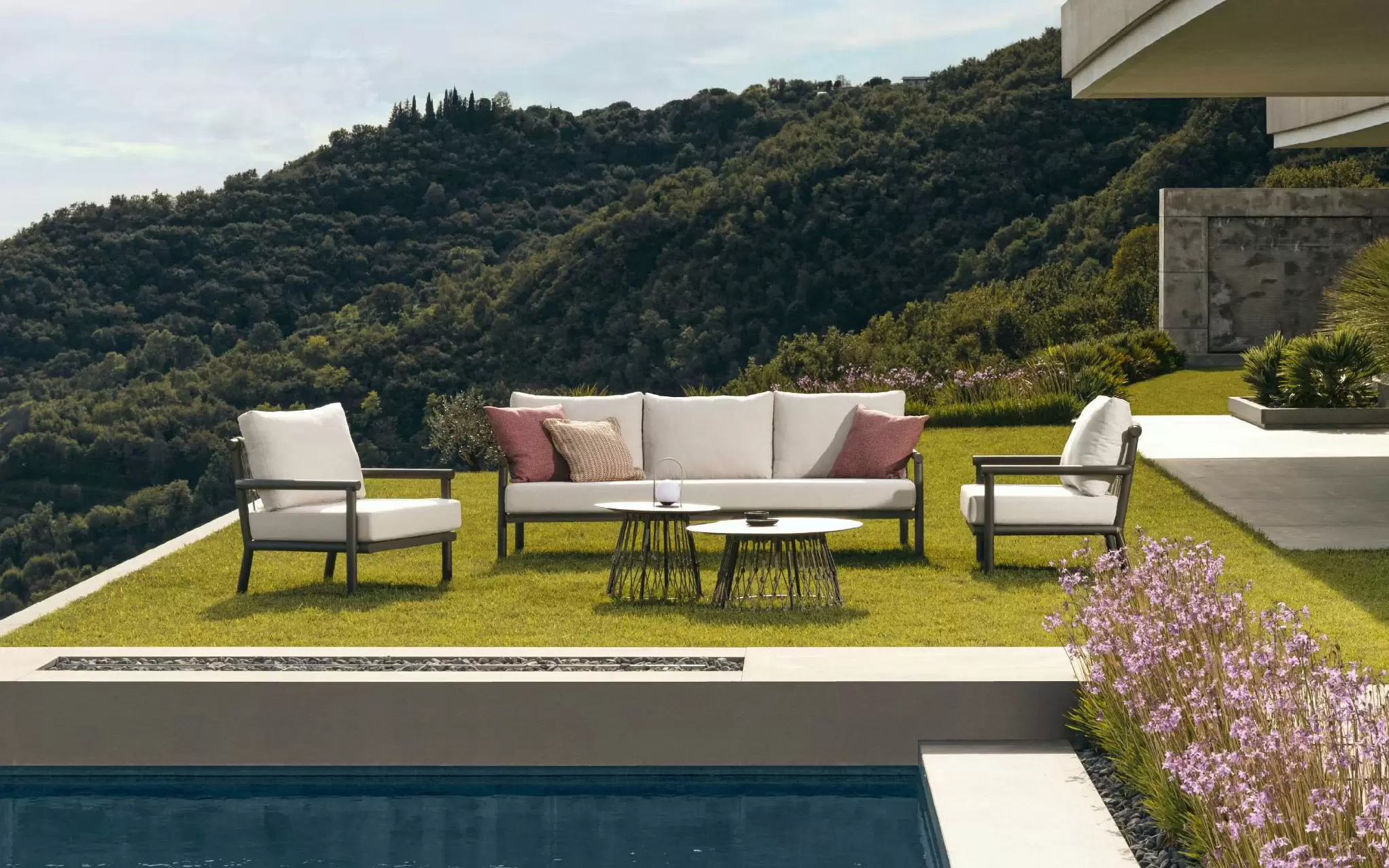 Zestaw ogrodowy wypoczynkowy Lanai to propozycja dla osób, które chcą przenieść salonowy komfort bezpośrednio na taras lub do ogrodu. Komplet wyróżnia się nowoczesną sylwetką, która została przełamana rzemieślniczym detalem w postaci precyzyjnych plecionek na oparciach. Meble, które przede wszystkim oferują głęboki relaks dzięki wyjątkowo grubym poduszkom siedziskowym.