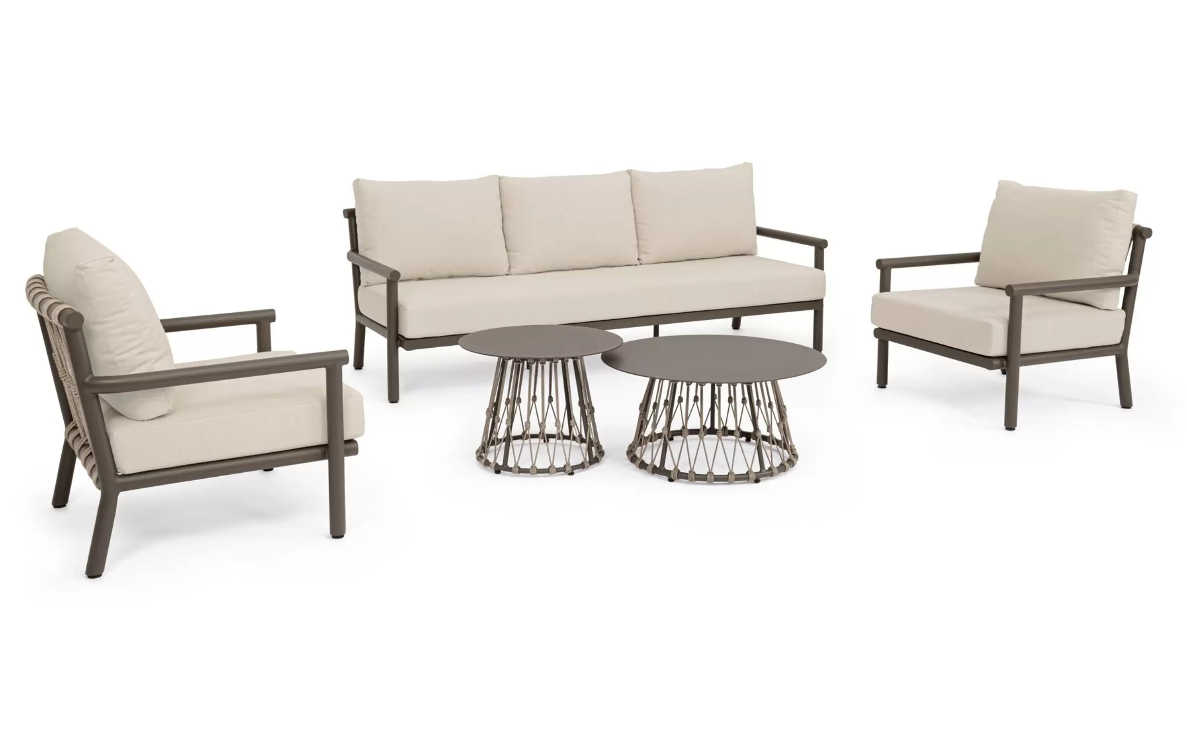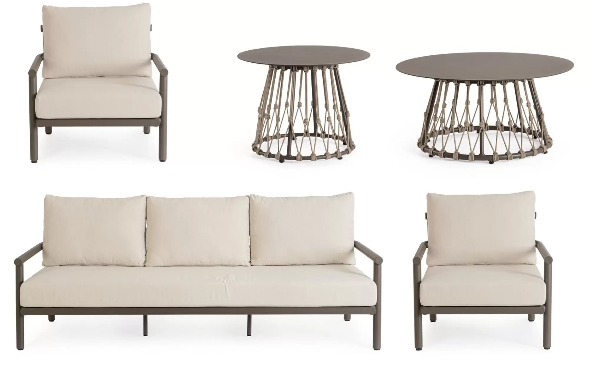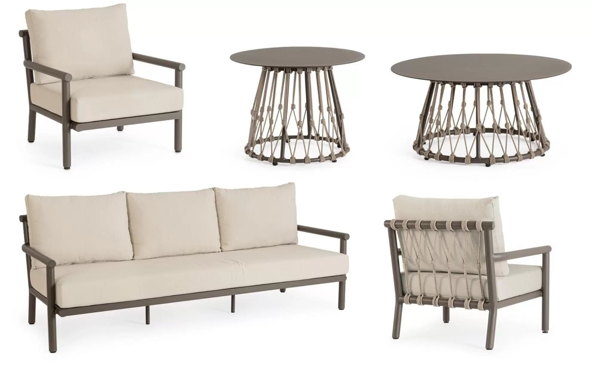 LANAI Zestaw ogrodowy aluminium lina poduszki sofa 3 fotele stoliki