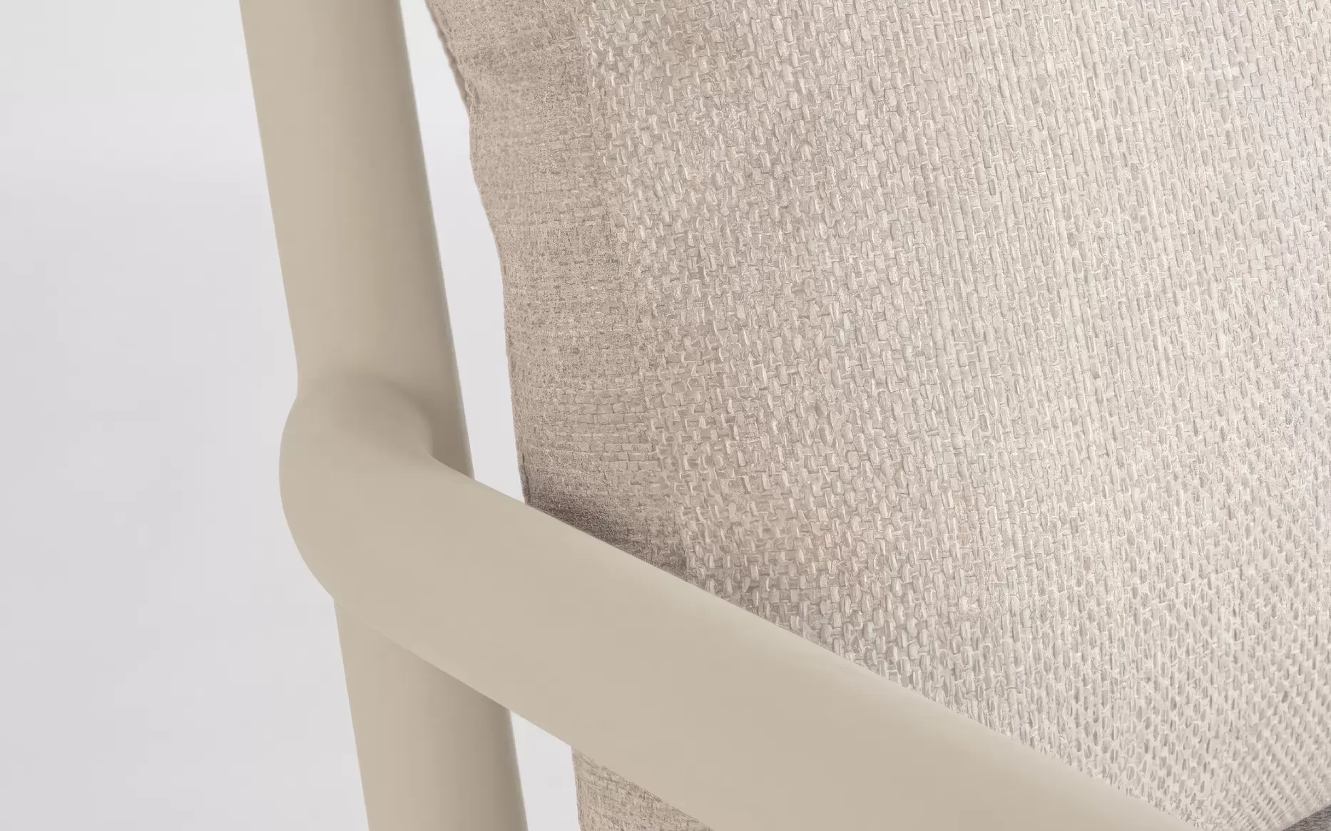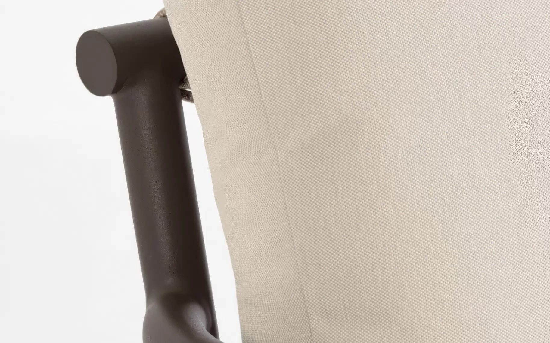 Plecionka z lin poliestrowych – tył oparć oraz podstawy stolików zdobią dekoracyjne liny poliestrowe. Materiał ten jest w pełni wodoodporny i posiada wysoką odporność na promieniowanie UV, dzięki czemu liny nie rozciągają się i zachowują swój pierwotny kolor pod wpływem słońca. To techniczne włókno nadaje meblom unikalnego charakteru, jednocześnie gwarantując ich trwałość w środowisku o zmiennej wilgotności.