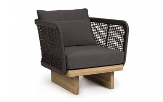 Stalowa konstrukcja zabezpieczona do użytku zewnętrznego poprzez fosforanowanie i malowanie proszkowe (poliester). Plecionka z włókna syntetycznego. Niedemontowalna poduszka wykonana z poliestrowej tkaniny odpornej na wodę. Maksymalne obciążenie: 130 kg. Podstawa (do samodzielnego montażu) pakowana w karton. Siedzenie pakowane bez kartonu.