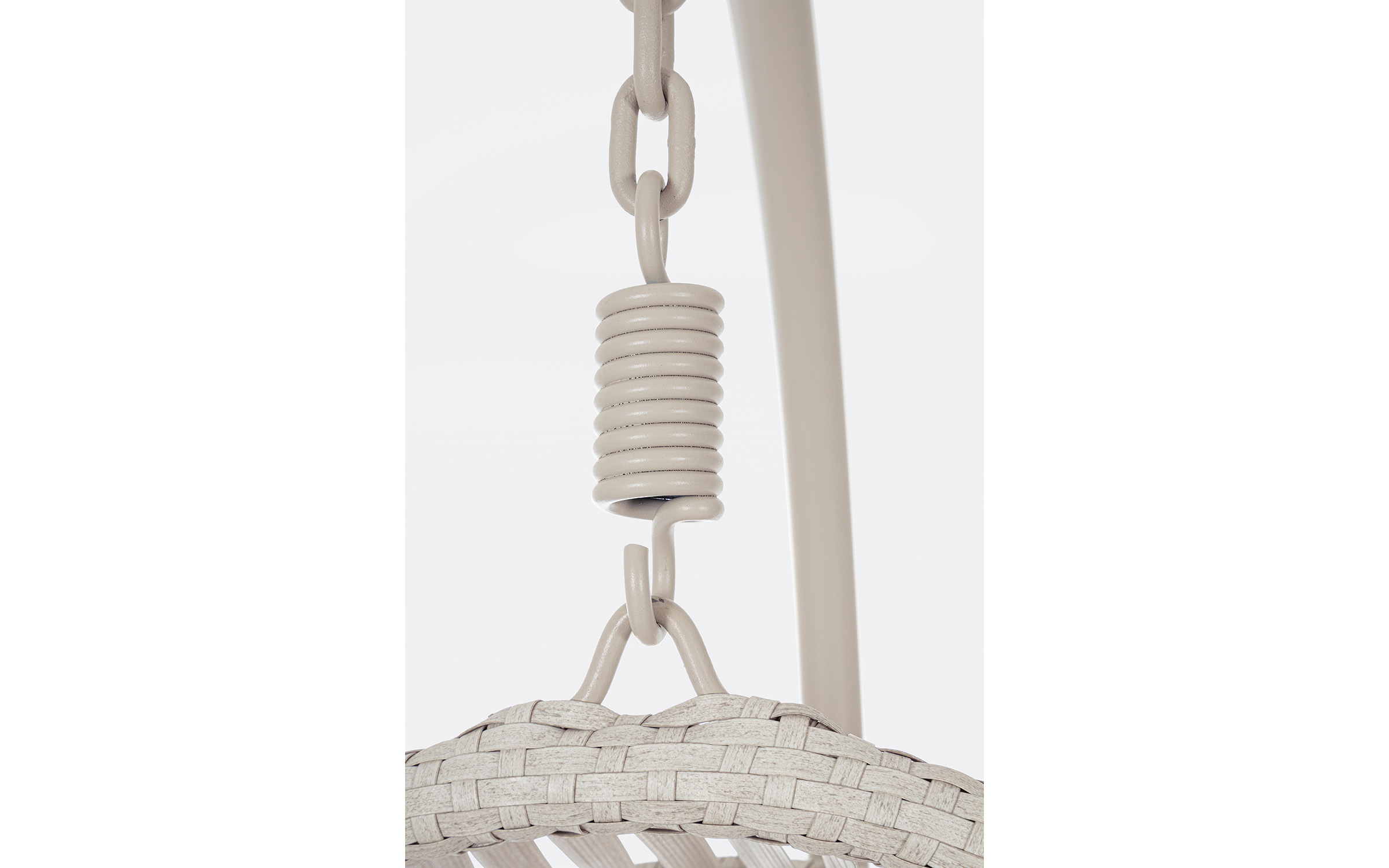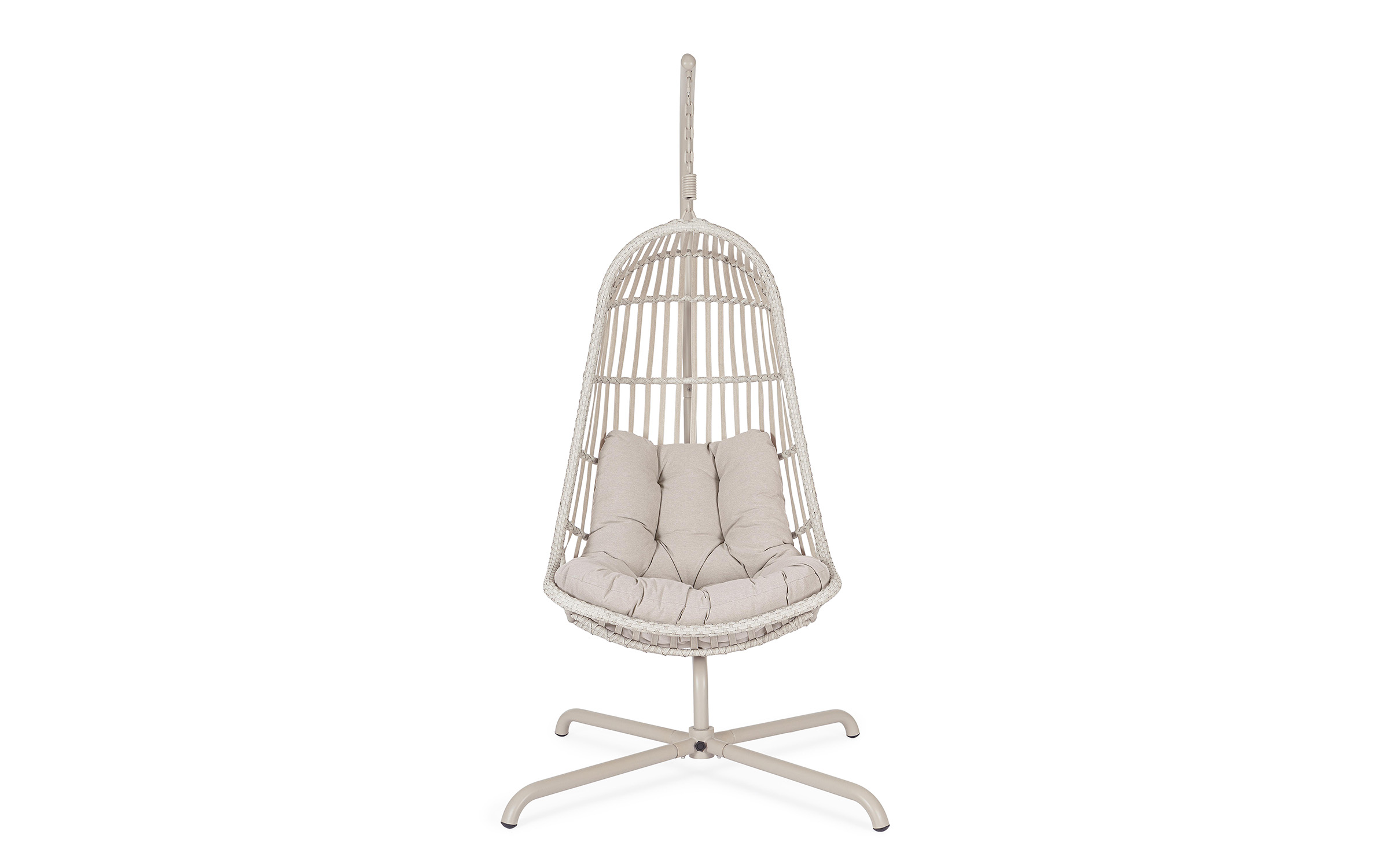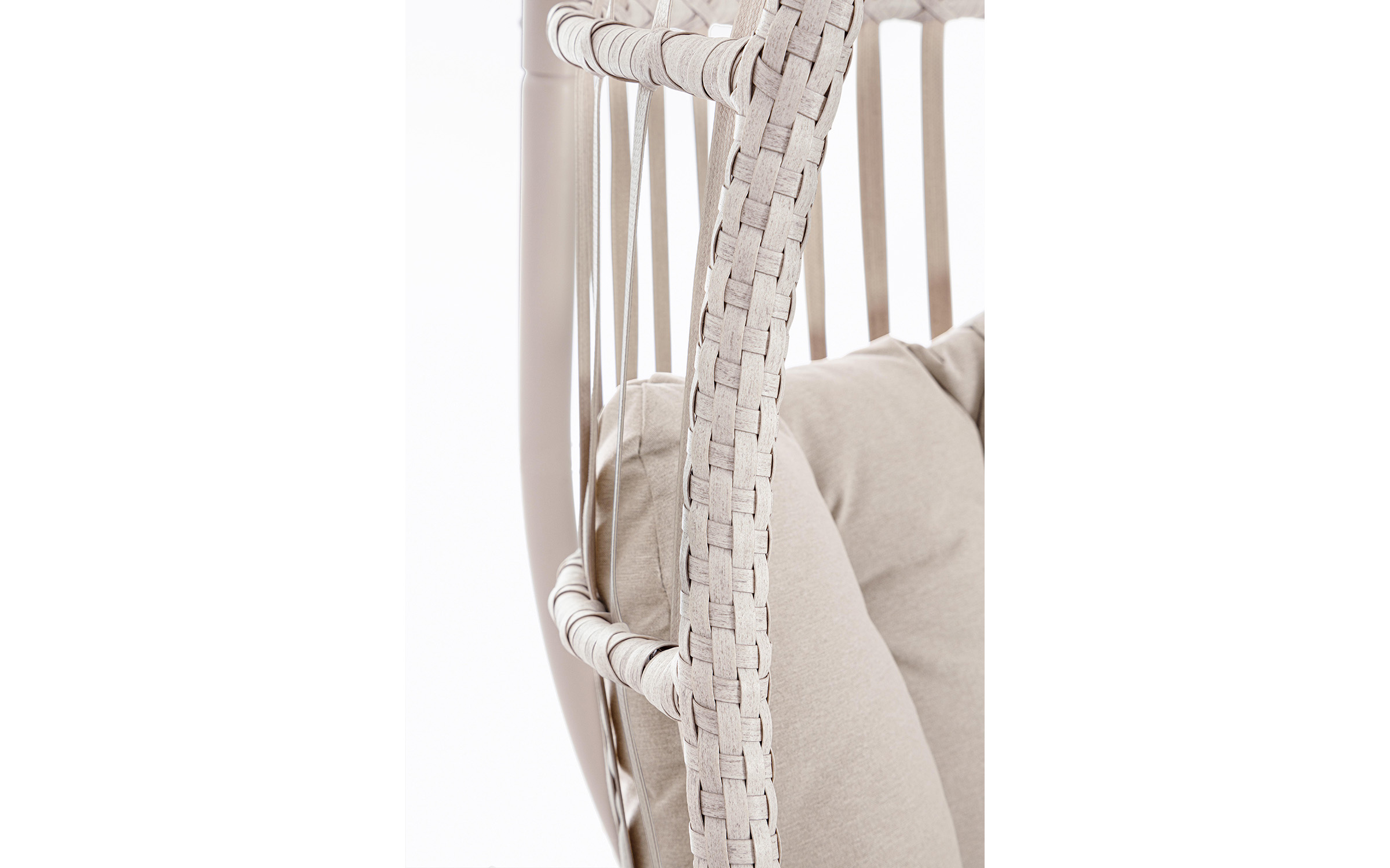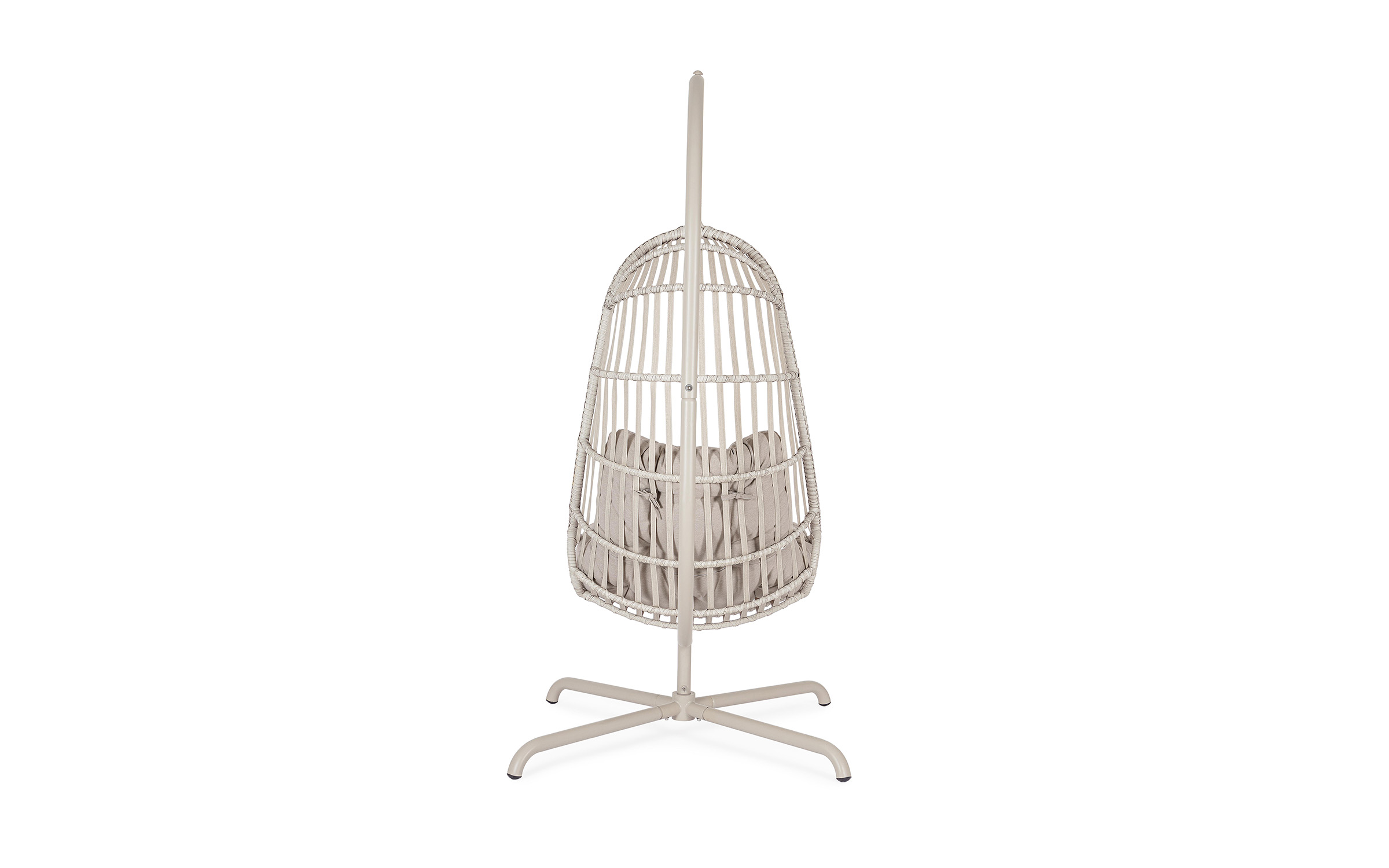Huśtawka typu kokon na podstawie krzyżowej  obrotowej z poduszką.