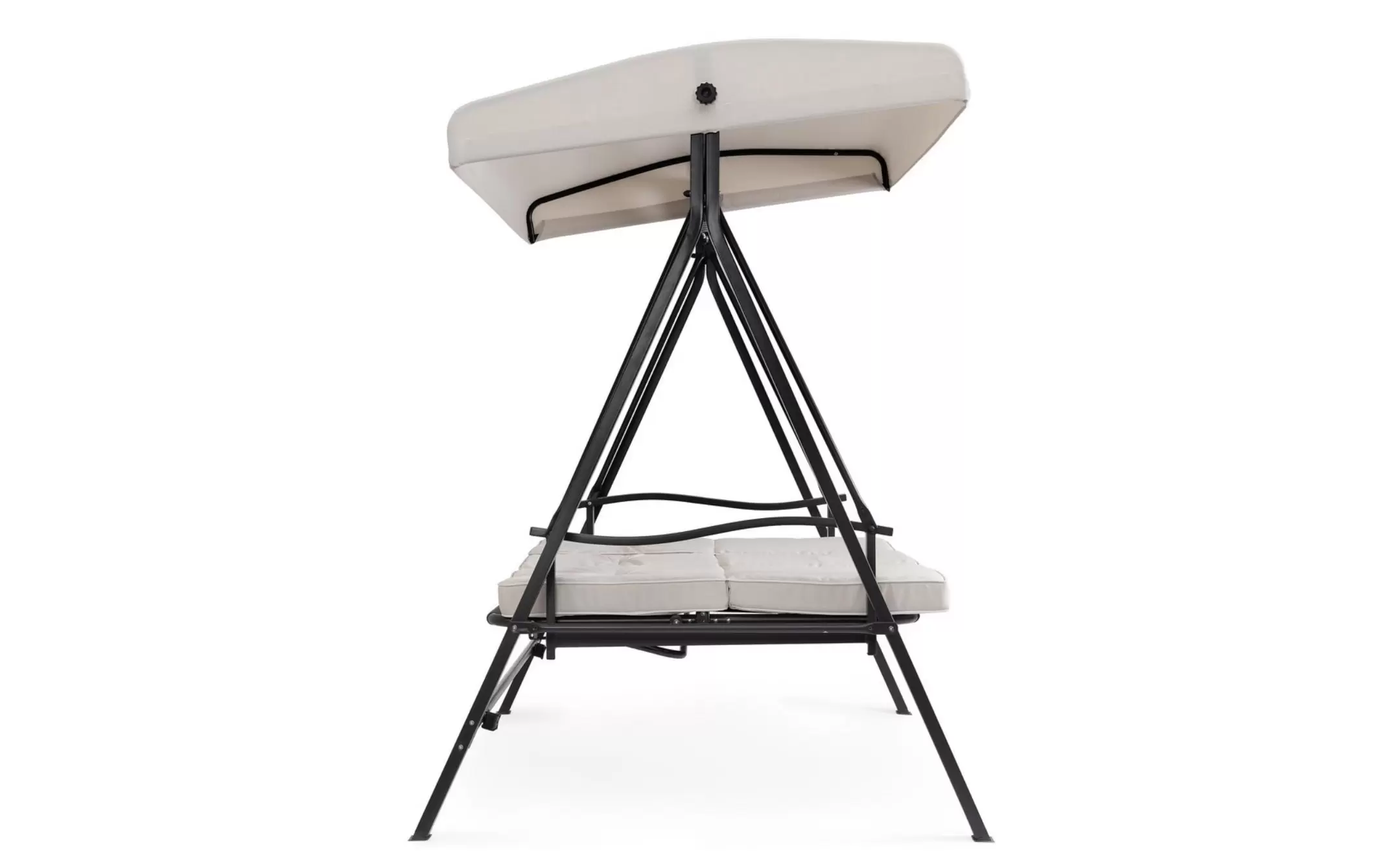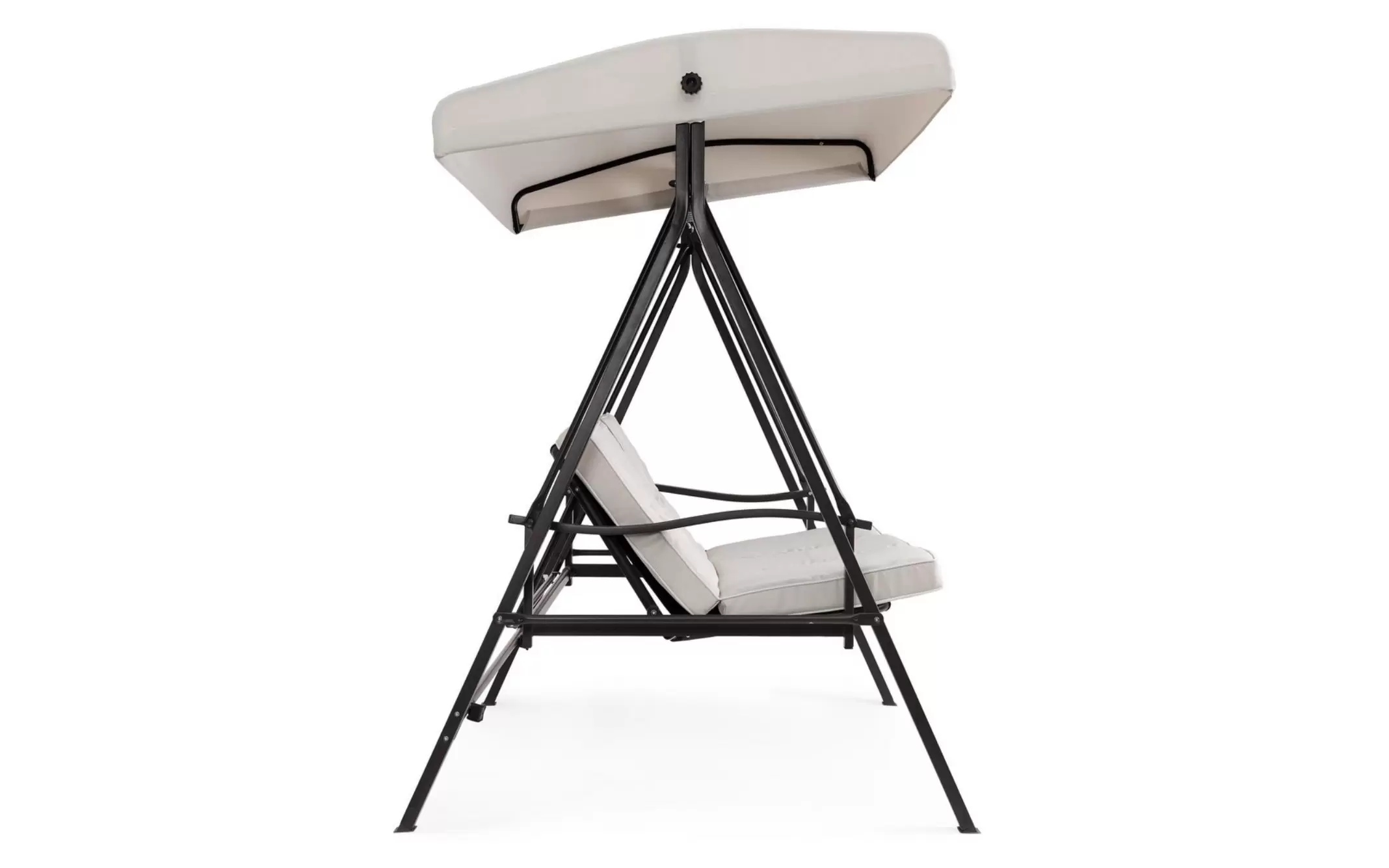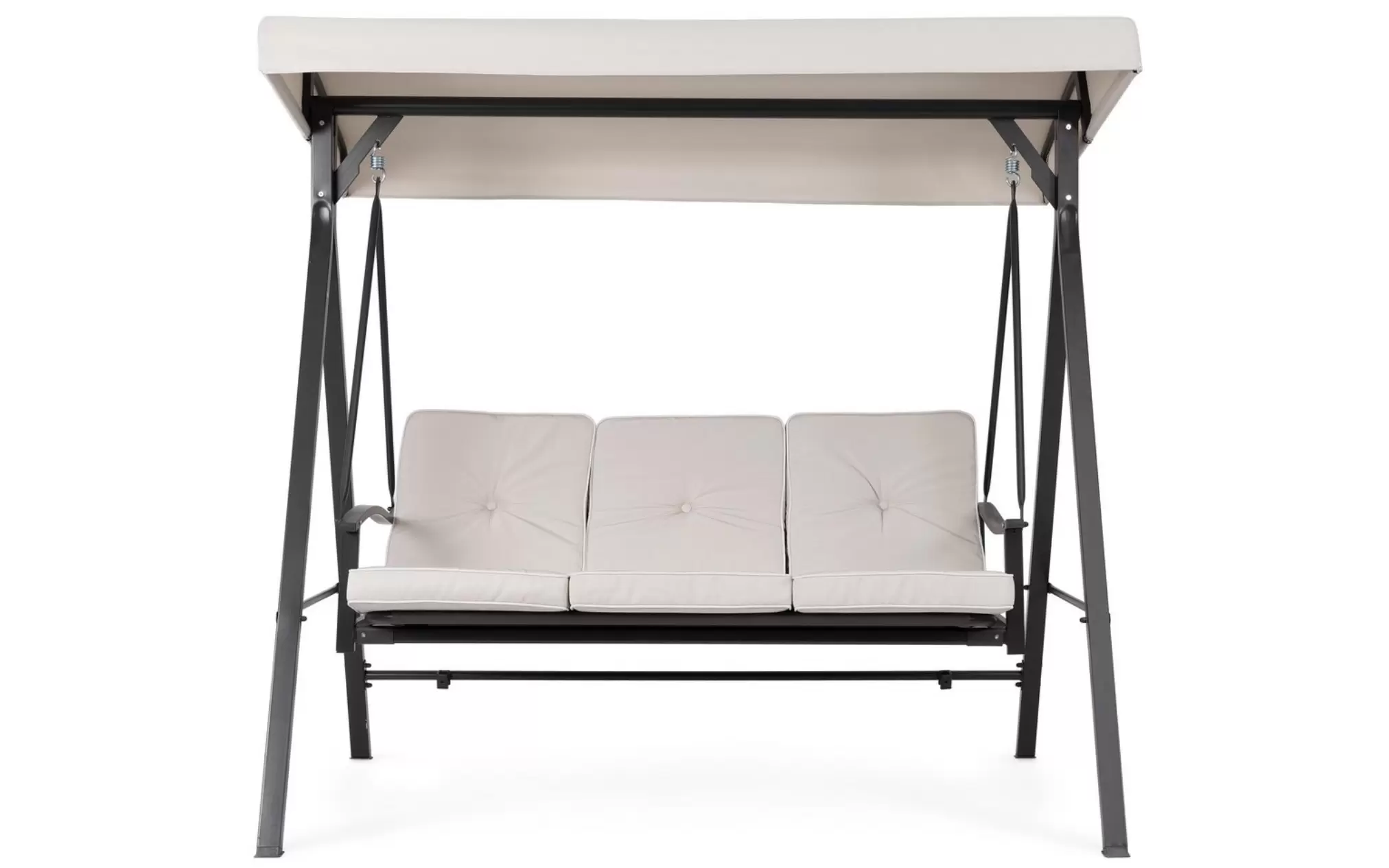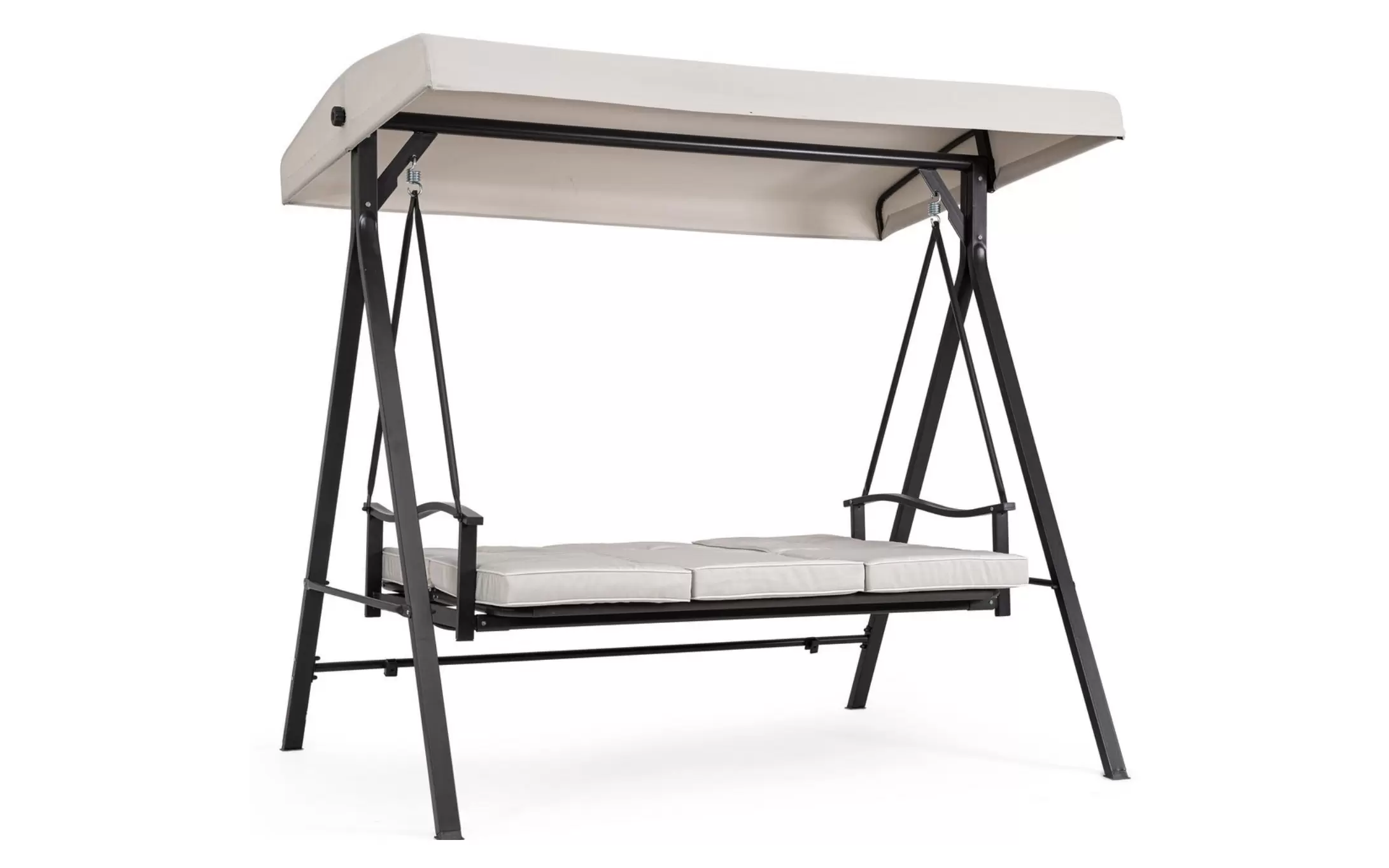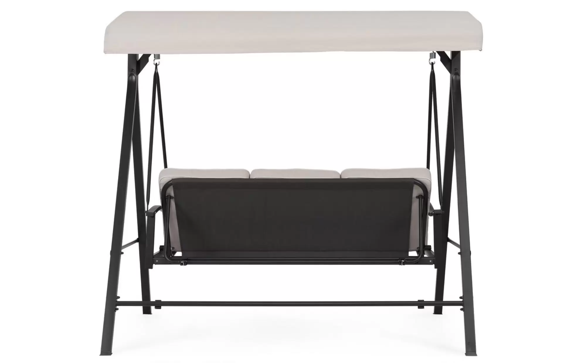 TAURUS L.GREY to komfortowa, 3‑osobowa huśtawka ogrodowa o stabilnej konstrukcji stalowej, zabezpieczonej fosforanowaniem i malowaniem proszkowym (polyester). Jasnoszara tapicerka i nowoczesna forma sprawiają, że doskonale pasuje do współczesnych aranżacji ogrodowych.