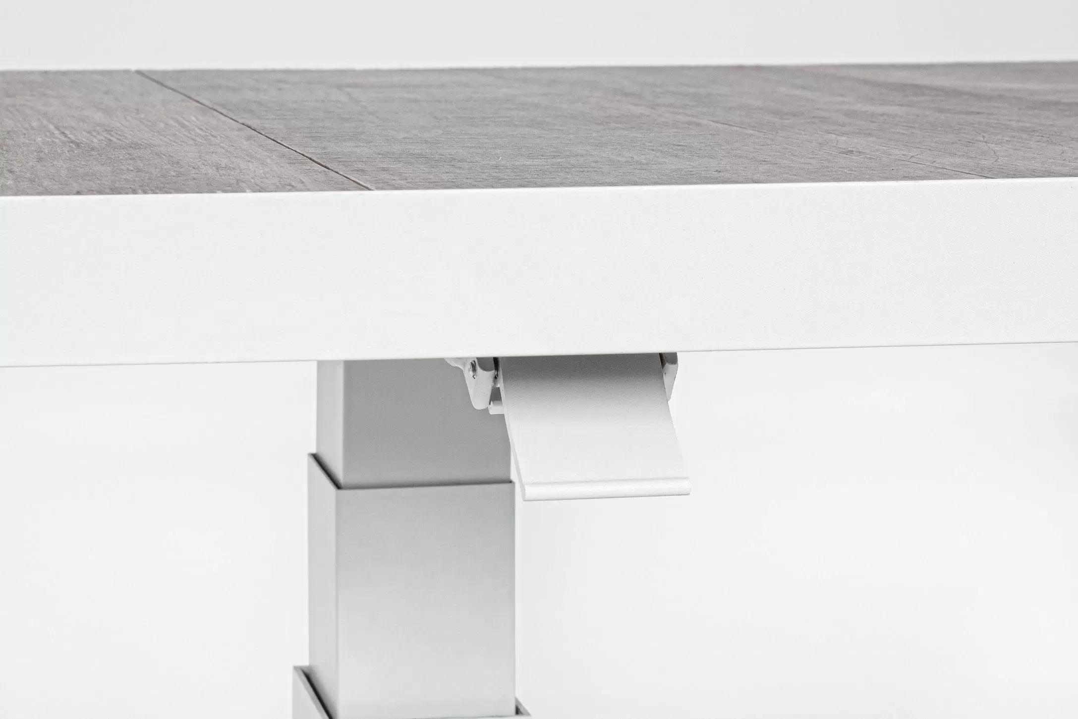 Regulacja wysokości odbywa się za pomocą siłowników gazowych i cięgna zamontowanego pod blatem stołu.