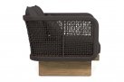 Boki i opacie mebla z aluminium malowanego proszkowo na kolor ciemnoszary. Oplecione liną polipropylenową odporną na wodę i UV.
