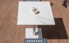 Model PG707 to kwadratowy blat wykonany z gresu porcelanowego, przeznaczony do zastosowań w przestrzeniach horeca – idealny do ogrodów, tarasów, restauracji i stref wypoczynkowych. Kompatybilny z podstawami BA005, BA105, BA505 za pomocą czterech tulei montażowych.