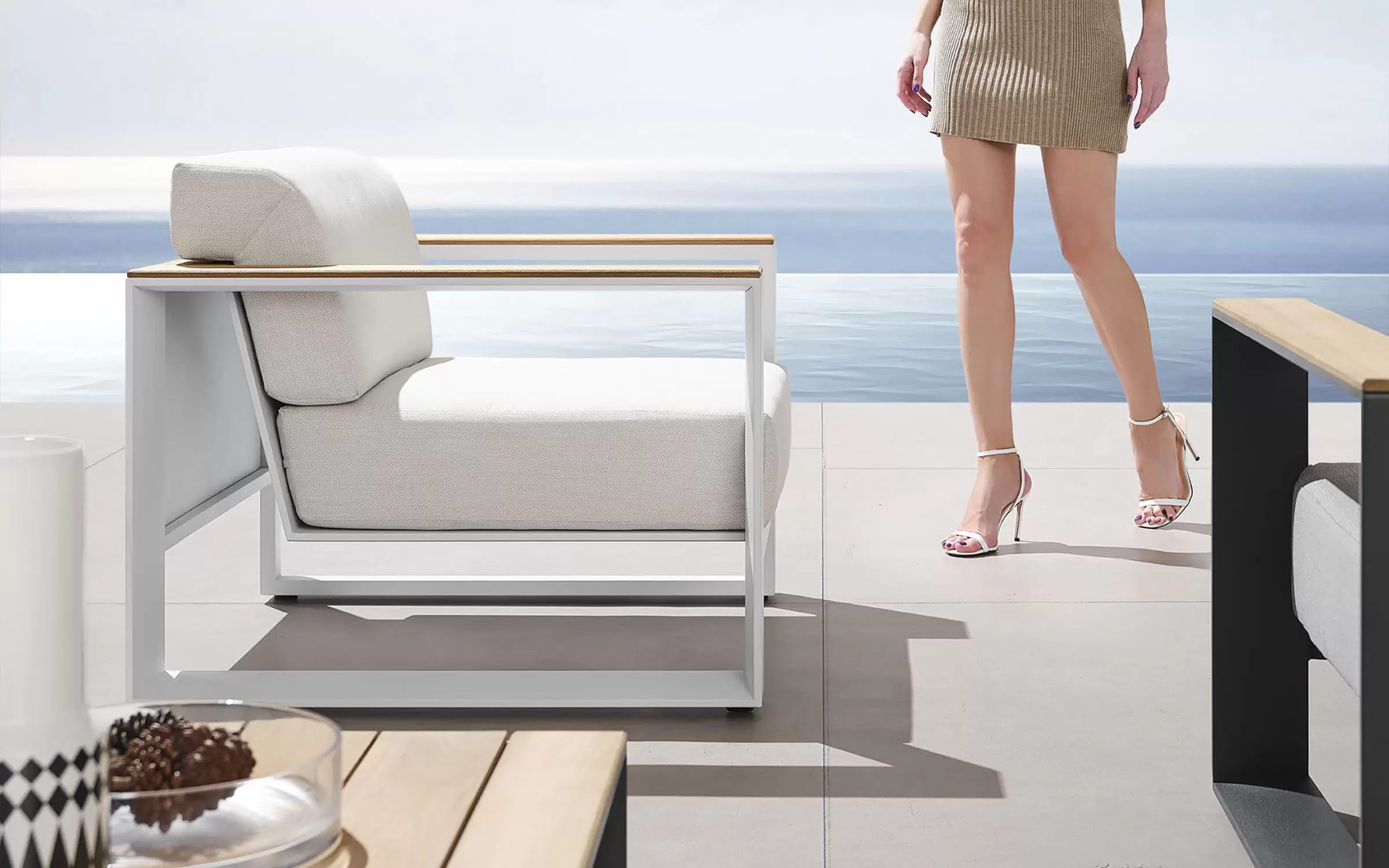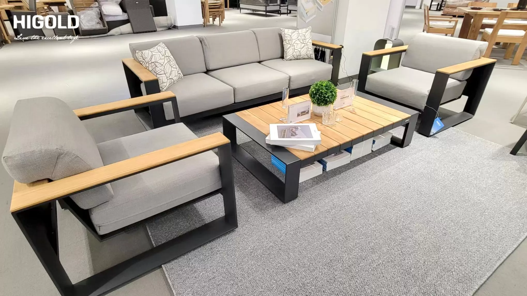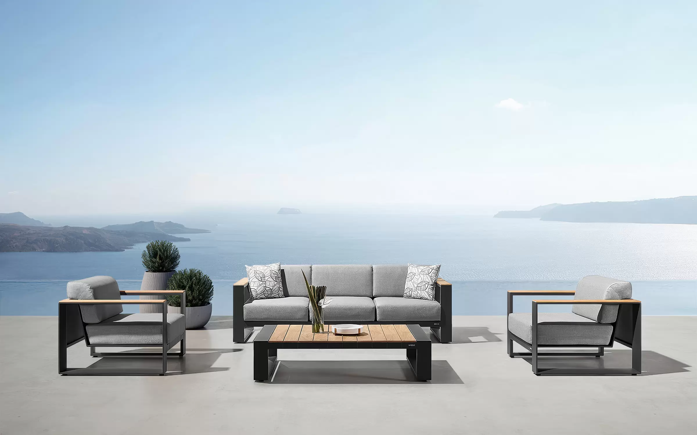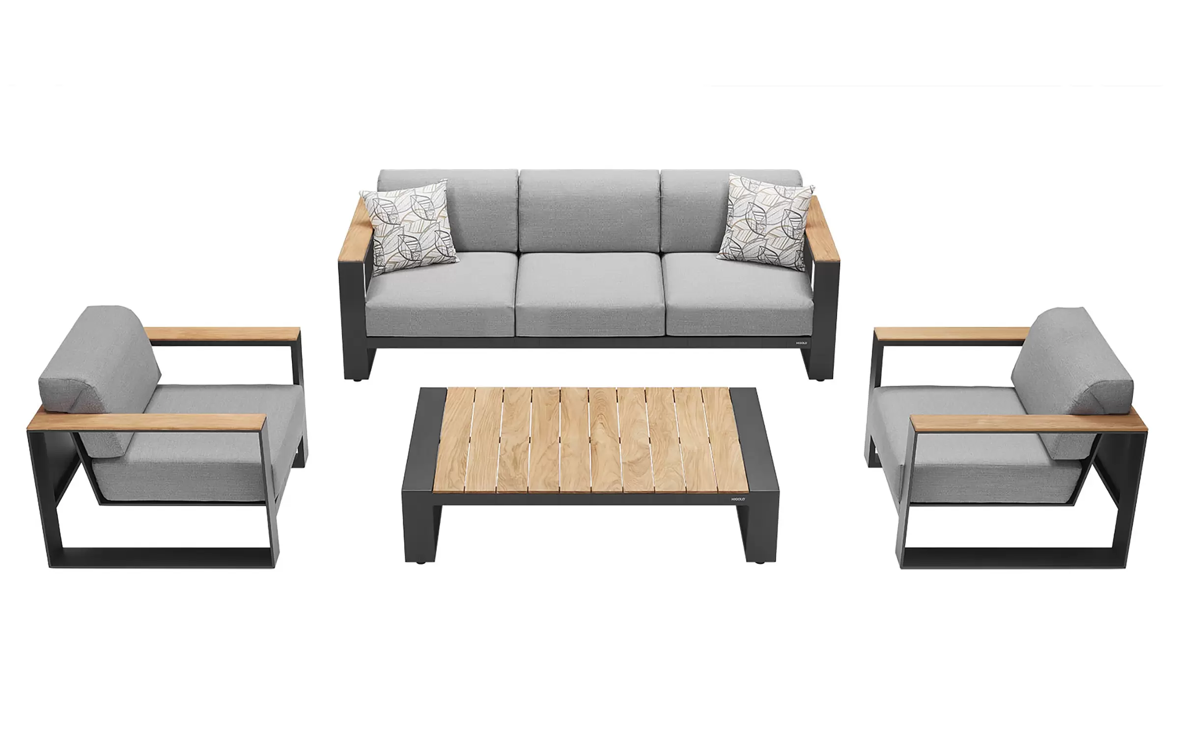 Cambusa to elegancki zestaw wypoczynkowy marki Higold, łączący nowoczesne wzornictwo z wysokiej jakości materiałami. Konstrukcja z aluminium malowanego proszkowo zapewnia stabilność, odporność na warunki atmosferyczne oraz wieloletnią trwałość.
