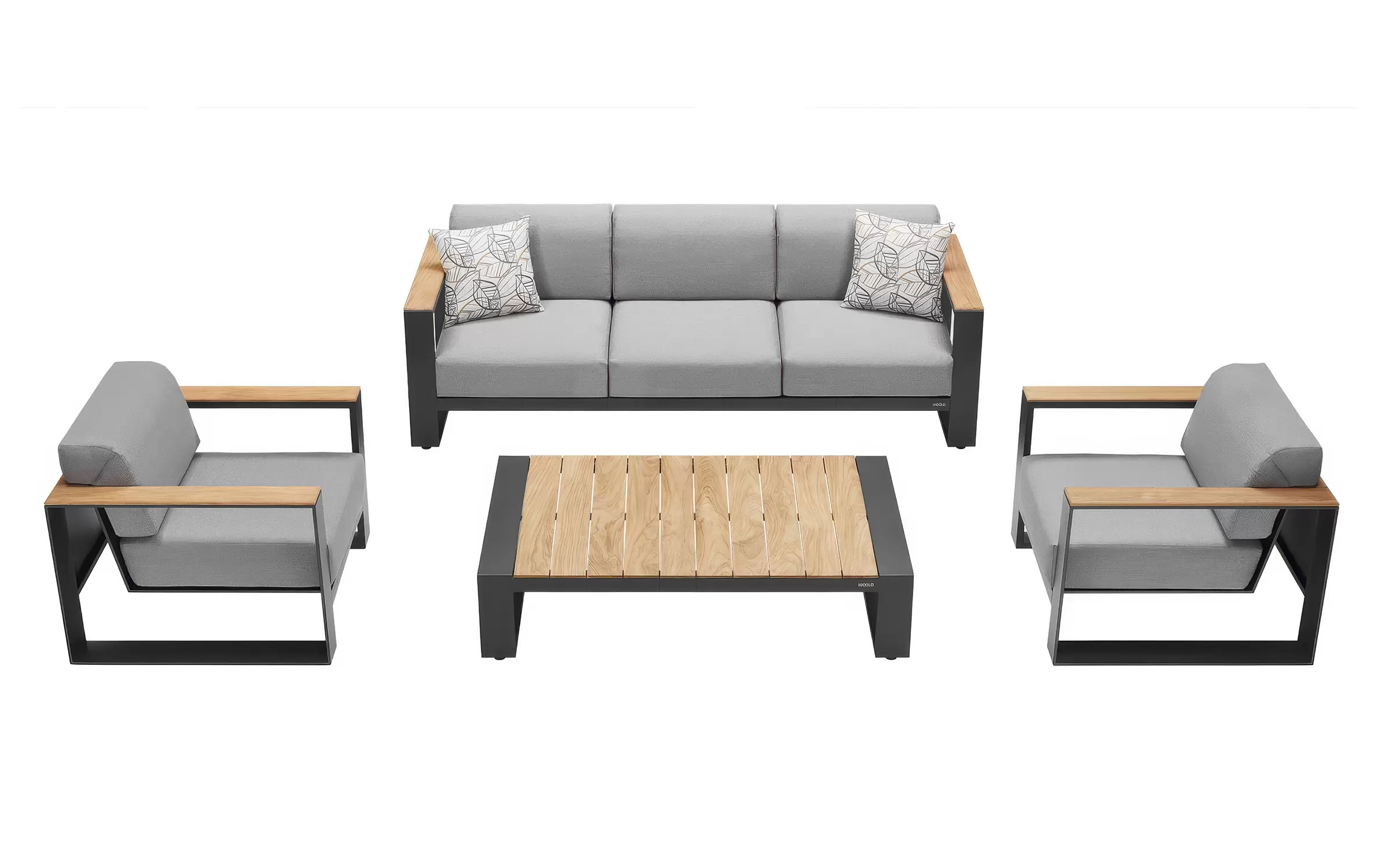 Elementy z naturalnego drewna teak FSC nadają zestawowi ponadczasowy charakter i podkreślają jego prestiżowy design. Sofa 3‑osobowa, dwa fotele oraz stolik kawowy tworzą komfortową i funkcjonalną przestrzeń relaksu do ogrodu, na taras lub patio.