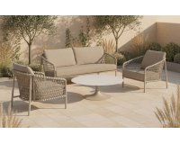 COMO Beige to elegancka propozycja do stworzenia komfortowej strefy relaksu na tarasie, patio lub w ogrodzie. Utrzymany w harmonijnych odcieniach beżu, zestaw łączy nowoczesną formę z naturalnym charakterem, charakterystycznym dla kolekcji COMO.