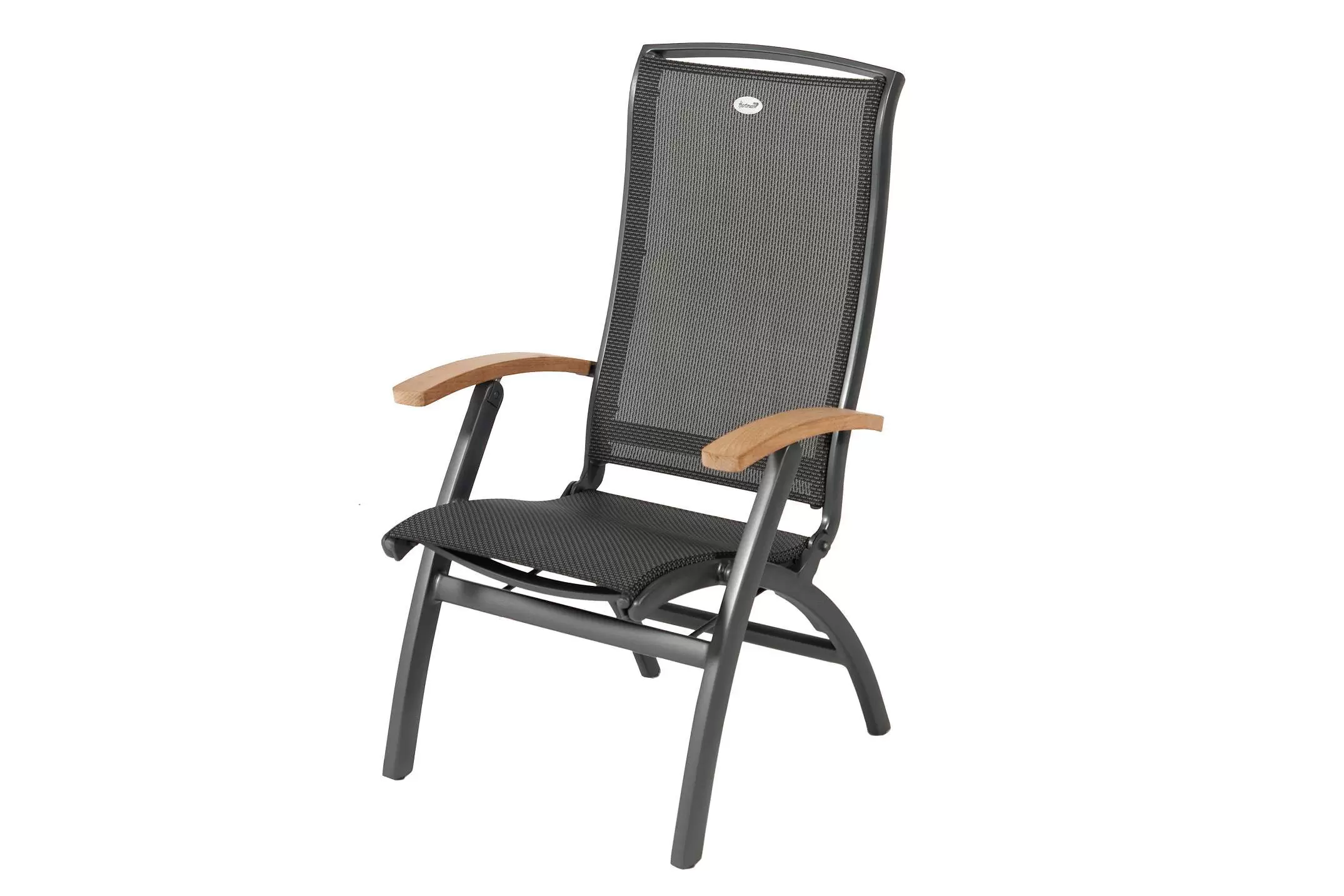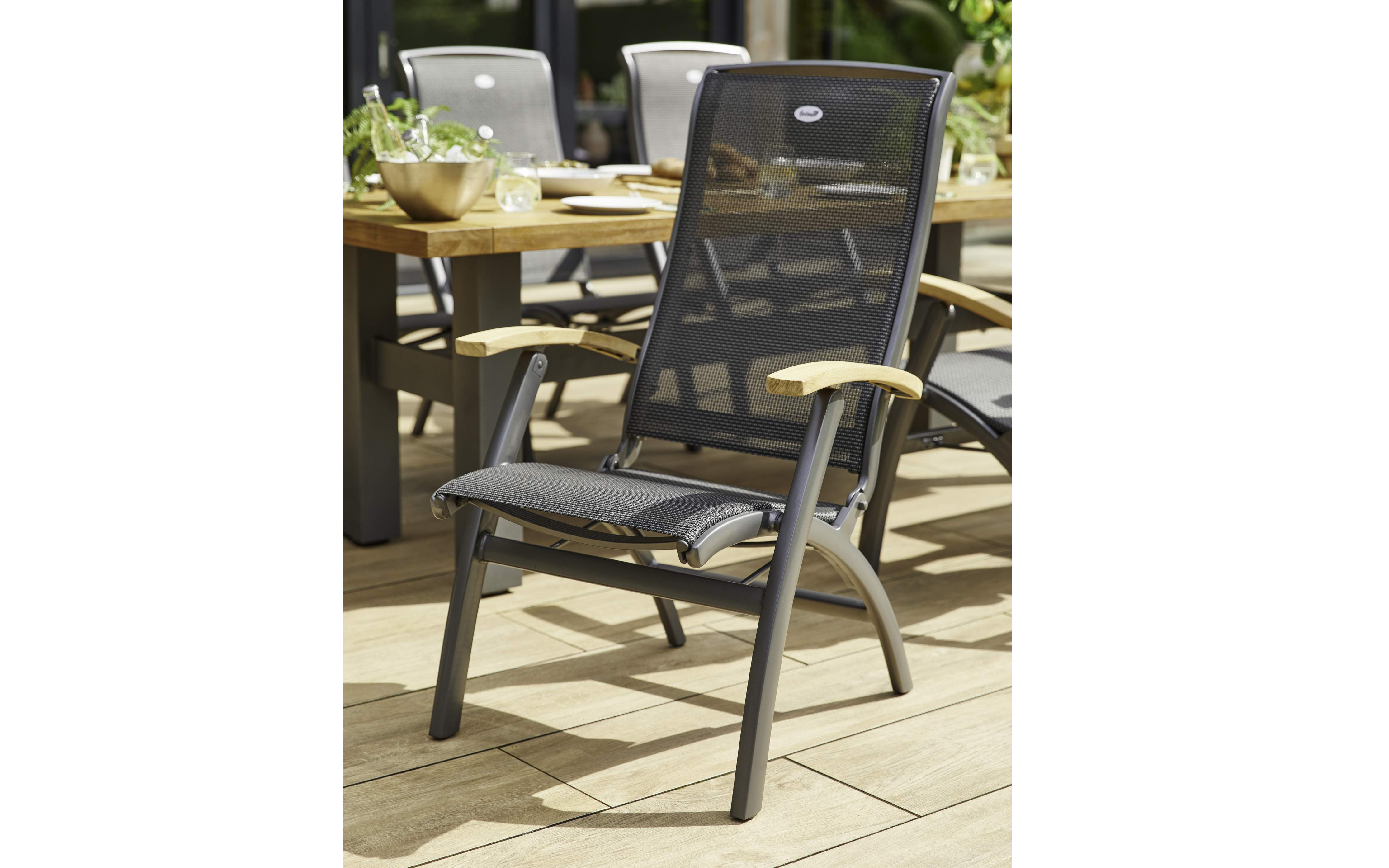 Fotel pozycyjny ogrodowy z wysokim oparciem teakowe podłokietniki DAVINCI
