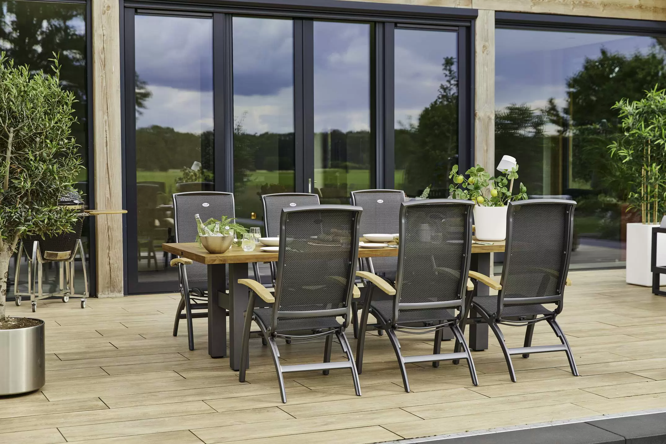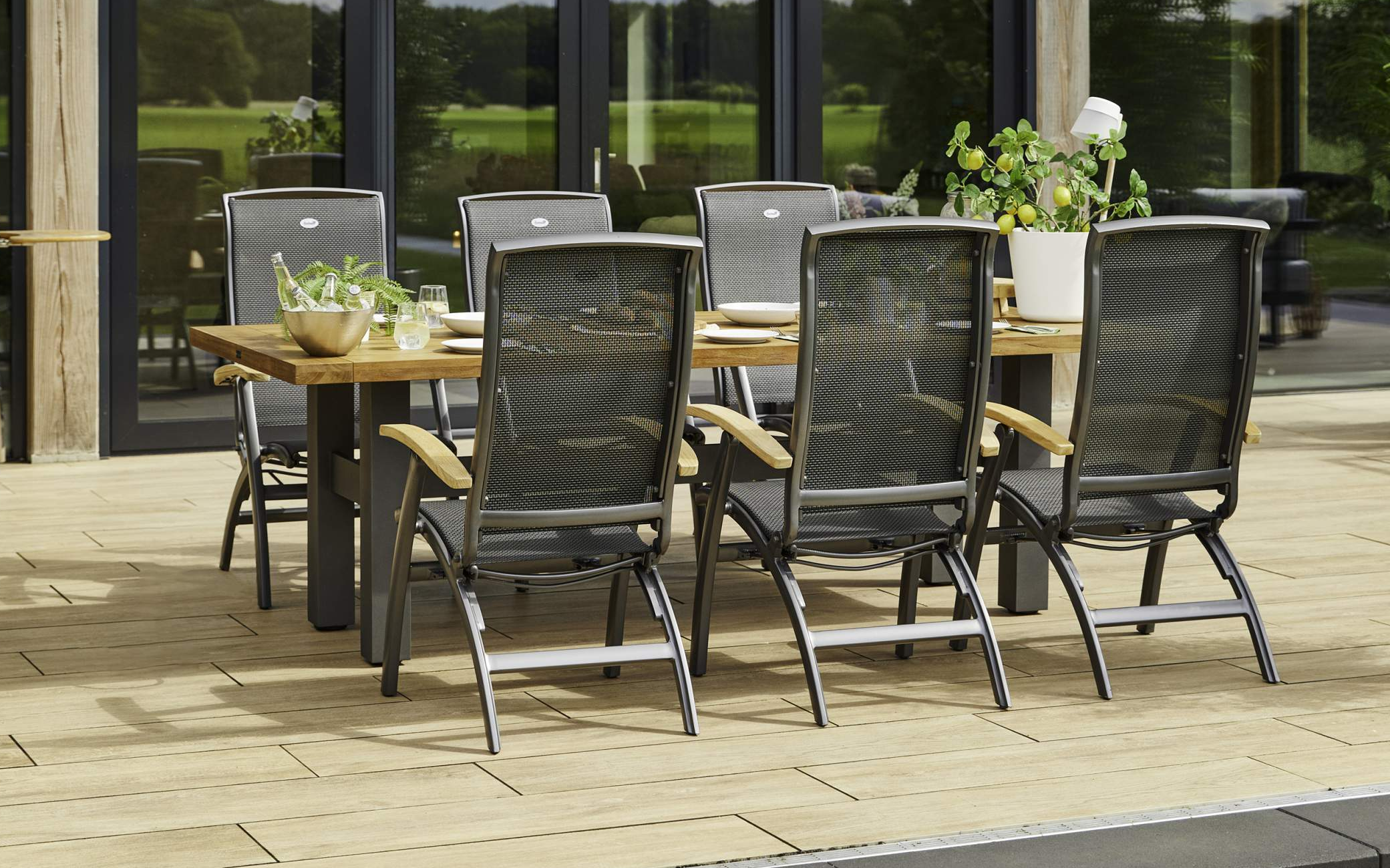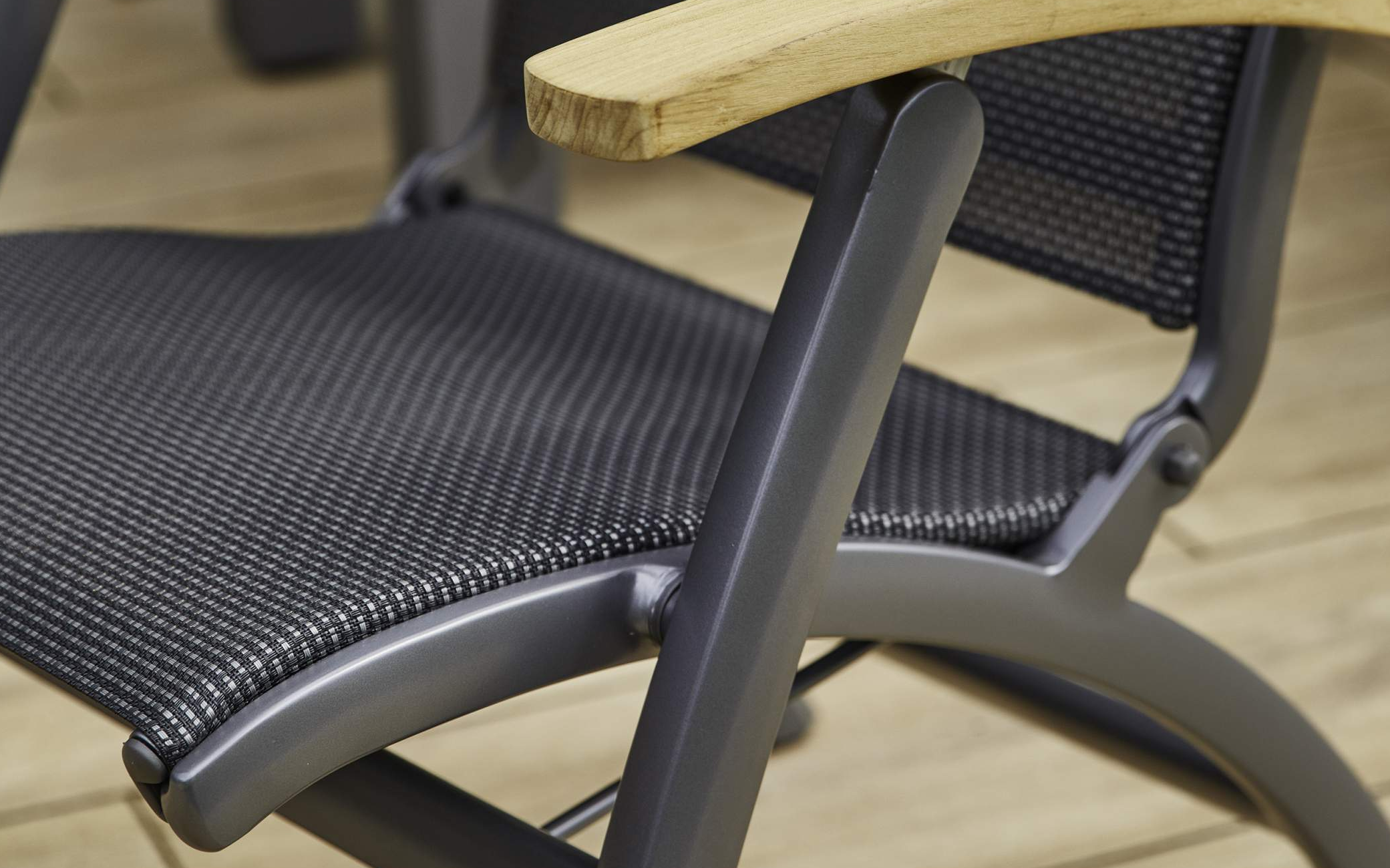 W tym krześle ogrodowym Hartman DaVinci tekstylina jest dopasowana kolorystycznie do ramy krzesła. Dzięki swojej ergonomii jest niesamowicie wygodny, praktycznie bezobsługowy, a nośność gwarantowana do 150 kg. Ze nowoczesnymi stołami z serii Hartman stworzy idealną całość, która posłuży do pełnego relaksu w Twoim ogrodzie i wnętrzu. Aluminiowe krzesło wyposażone jest w pięciostopniowy system pochylania oparcia - podłokietniki wykonano z drewna tekowego dla podkreślenia ekskluzywnego charakteru krzesła. Meble ogrodowe Hartman można łączyć z drewnem i aluminium.