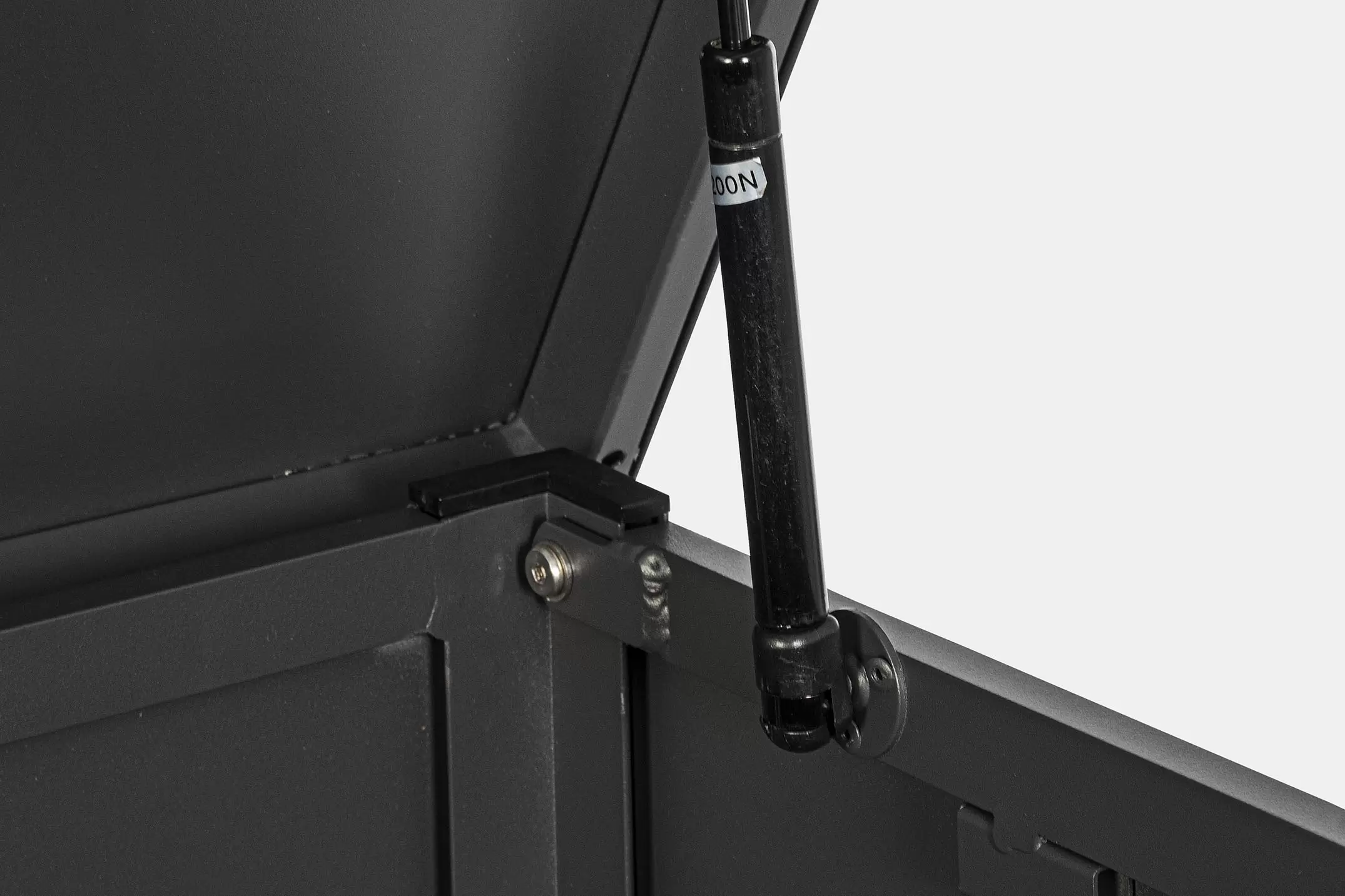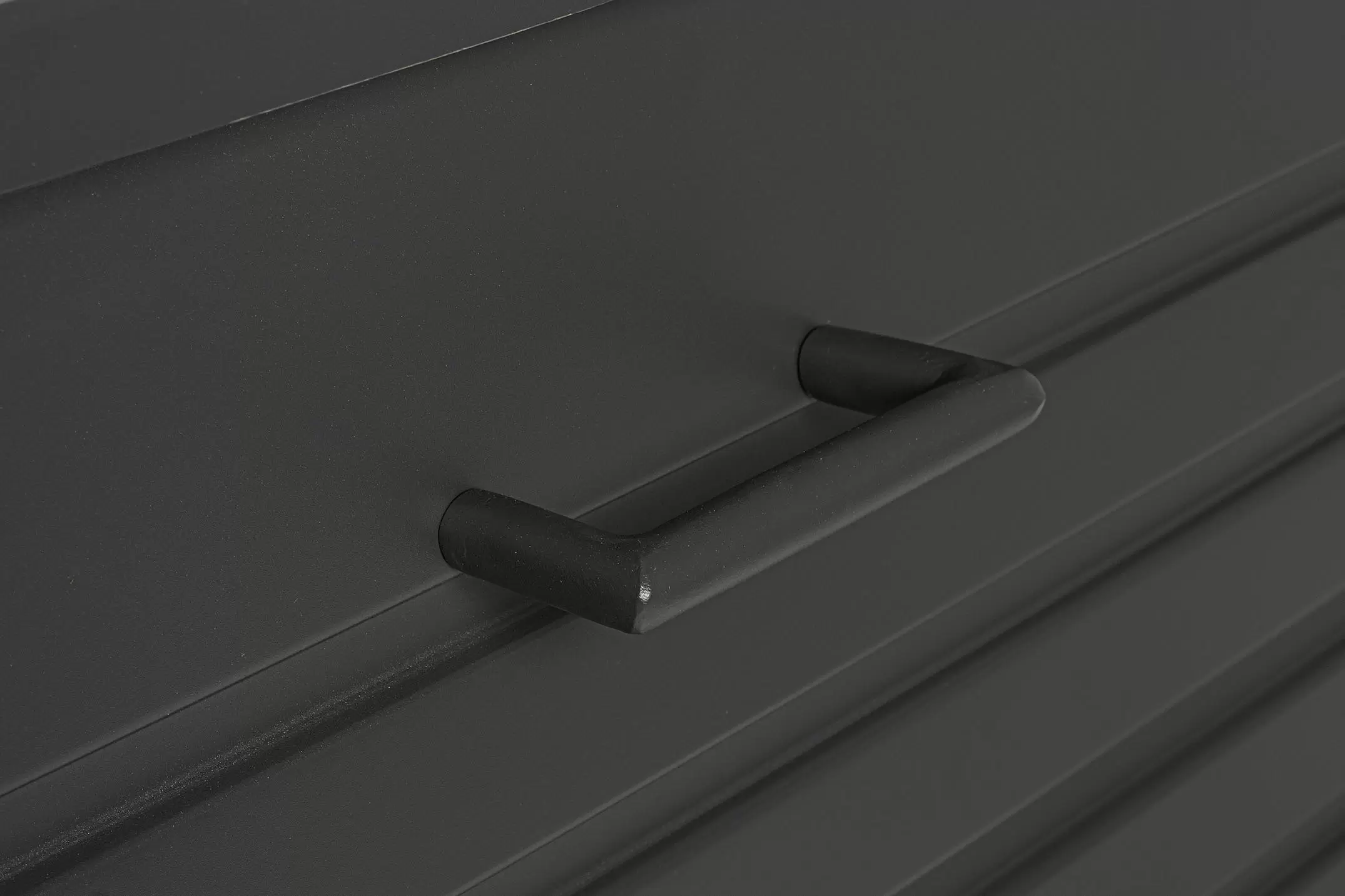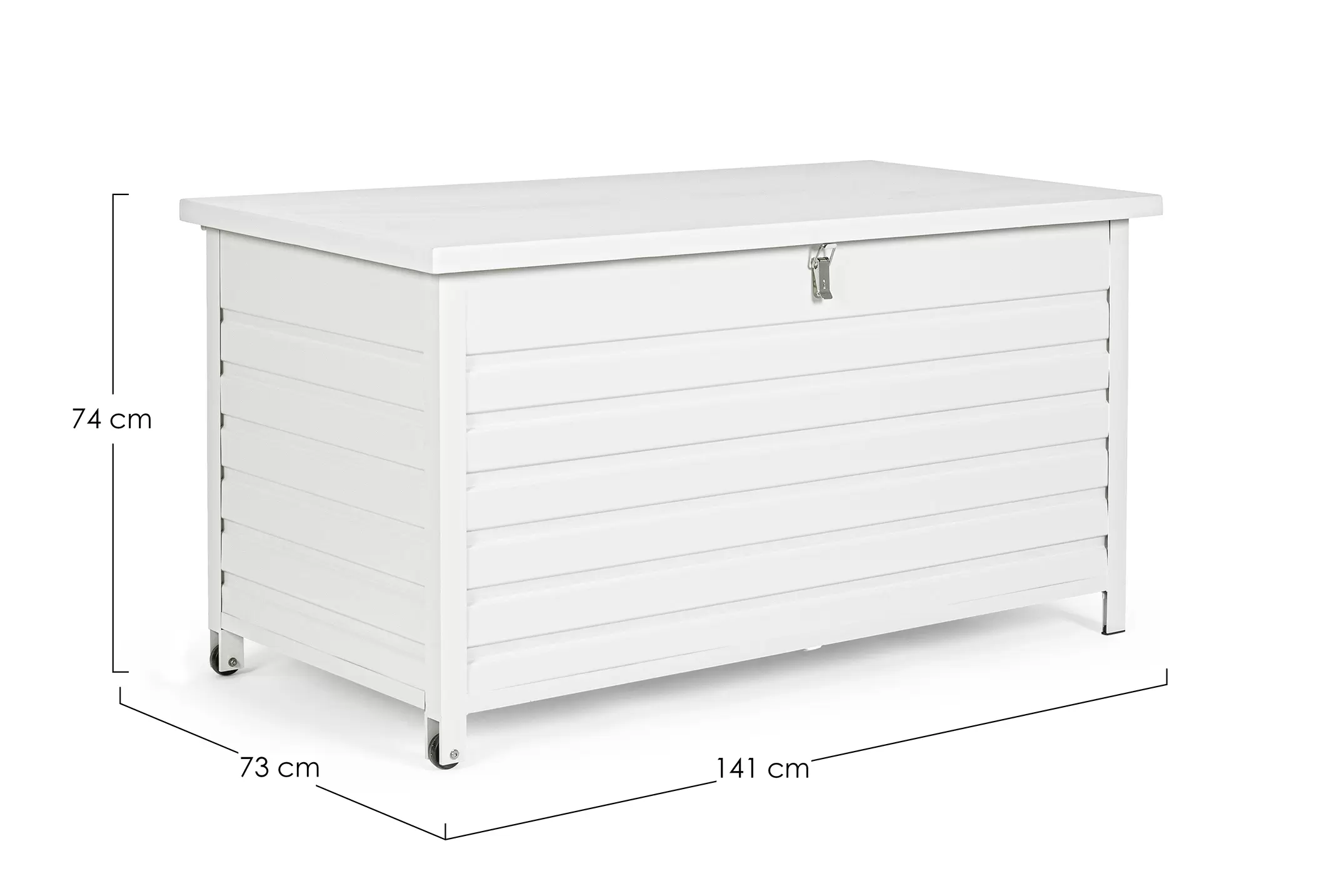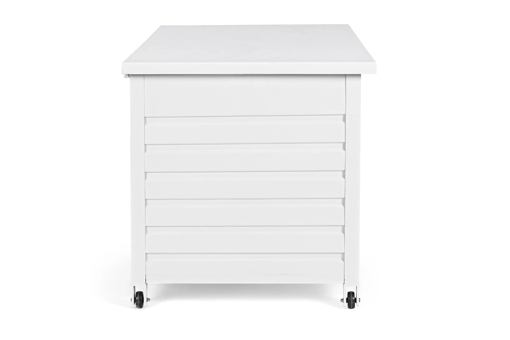 Aluminiowa skrzynia ogrodowa z kółkami pomieści wiele niezbędnych elementów wyposażenia mebli ogrodowych. Kółka pozwalają na przestawianie według potrzeb.