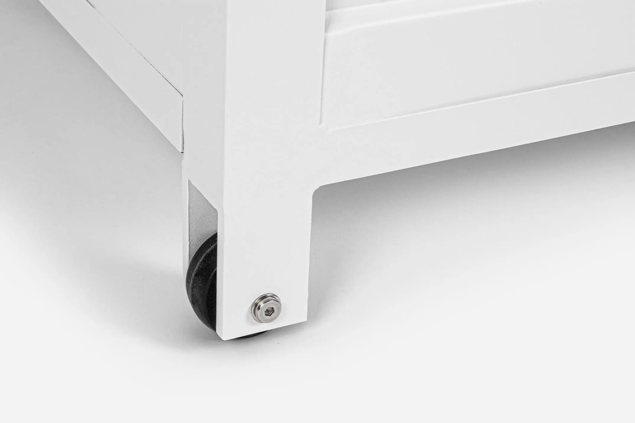 Konstrukcja aluminiowa malowana proszkowo. Podnośniki teleskopowe. Kółka z tworzywa sztucznego.