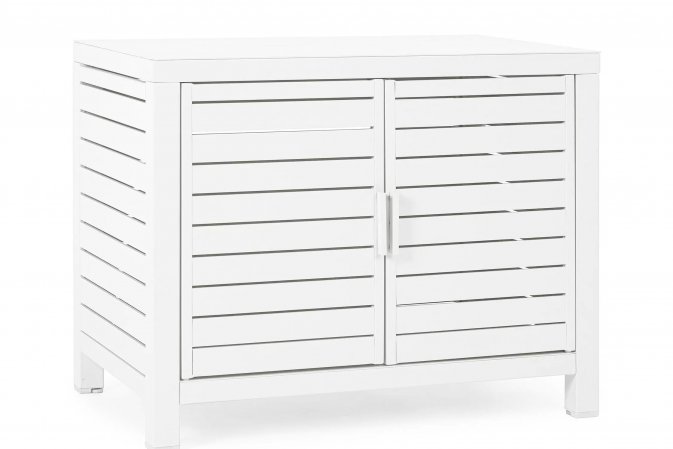 Aluminiowa szafka ogrodowa. Drzwiczki dwuskrzydłowe.
