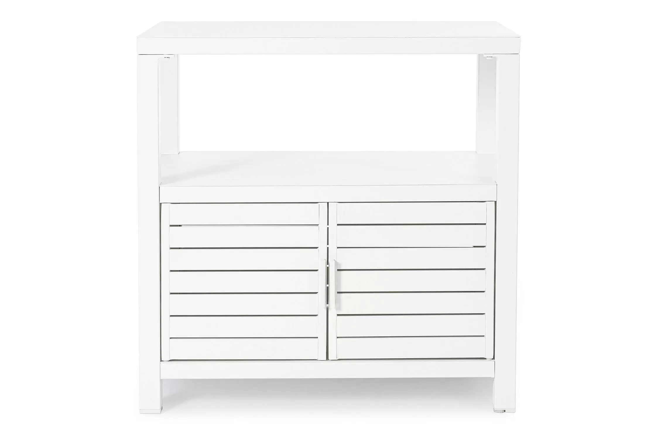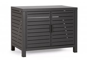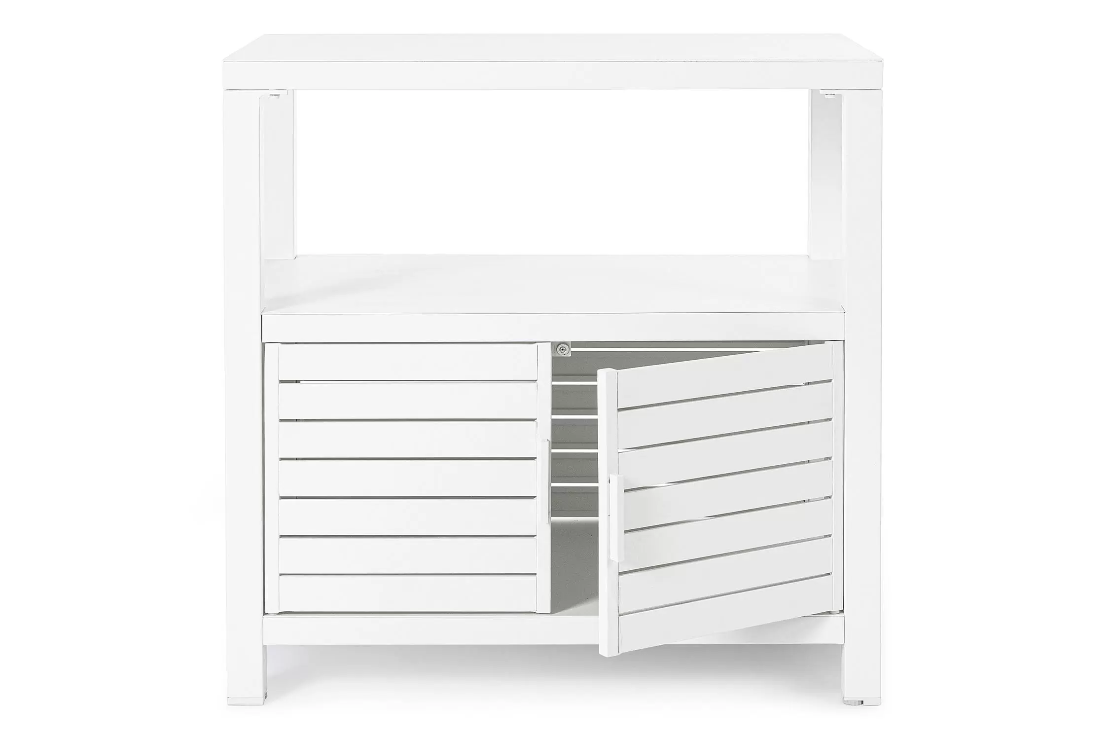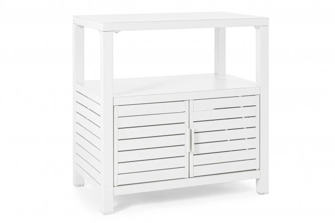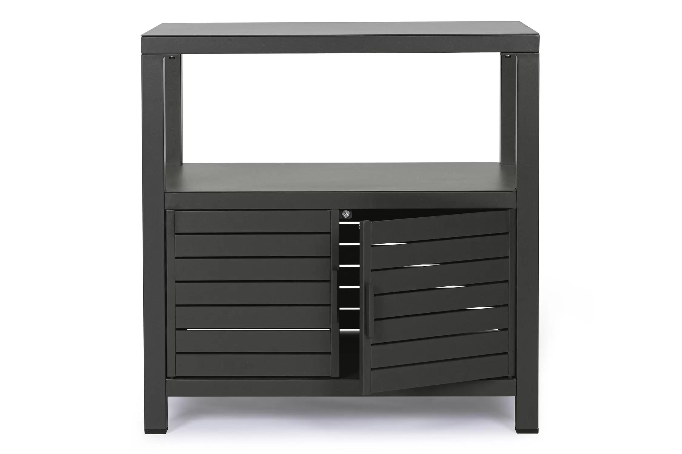 Aluminiowa szafka ogrodowa z dolną półką. Drzwiczki dwuskrzydłowe.