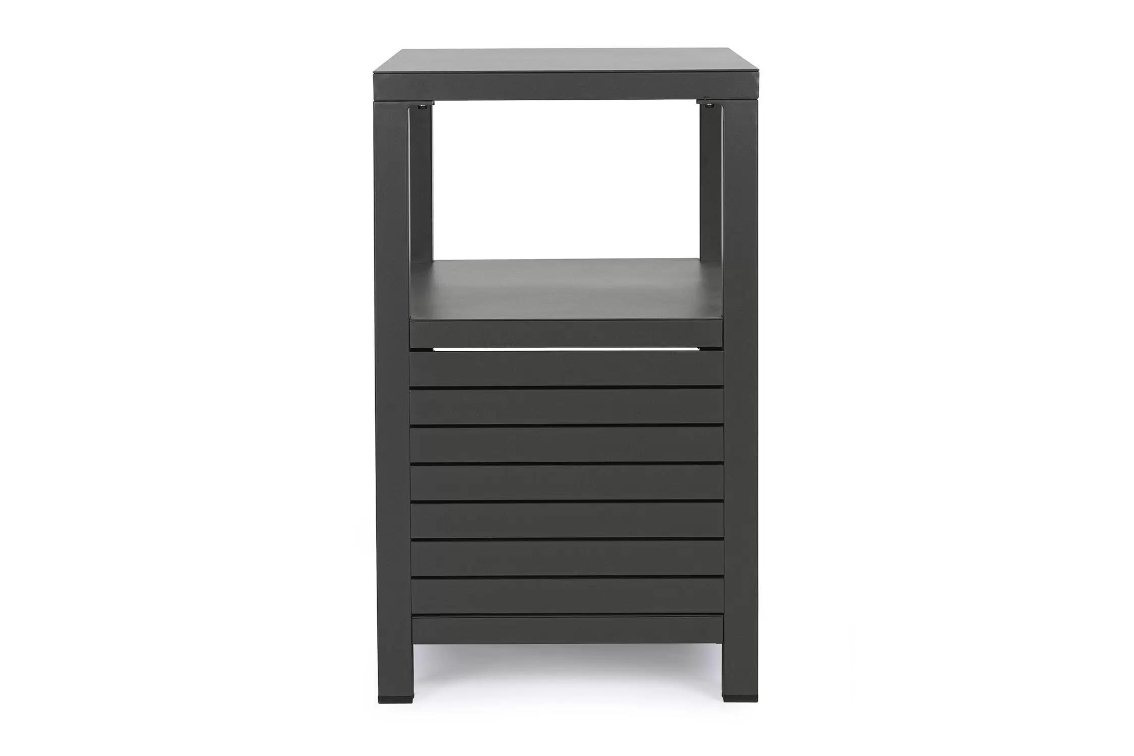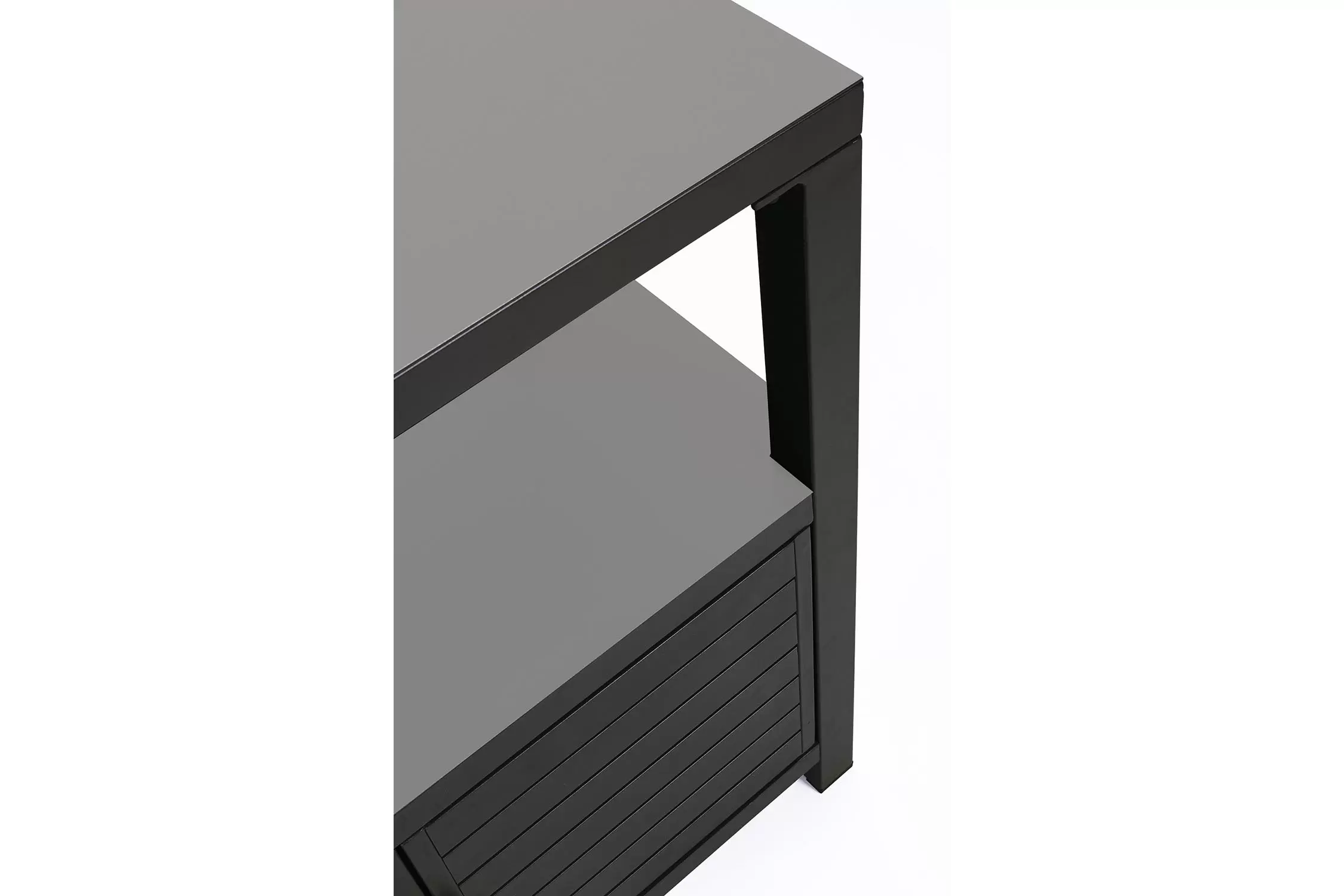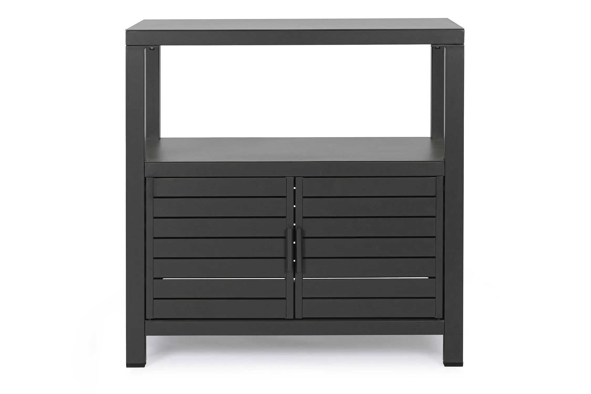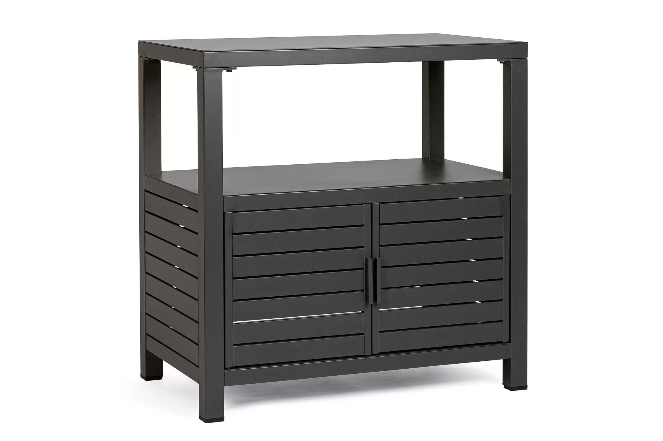 Aluminiowa szafka ogrodowa z dolną półką. Drzwiczki dwuskrzydłowe.
