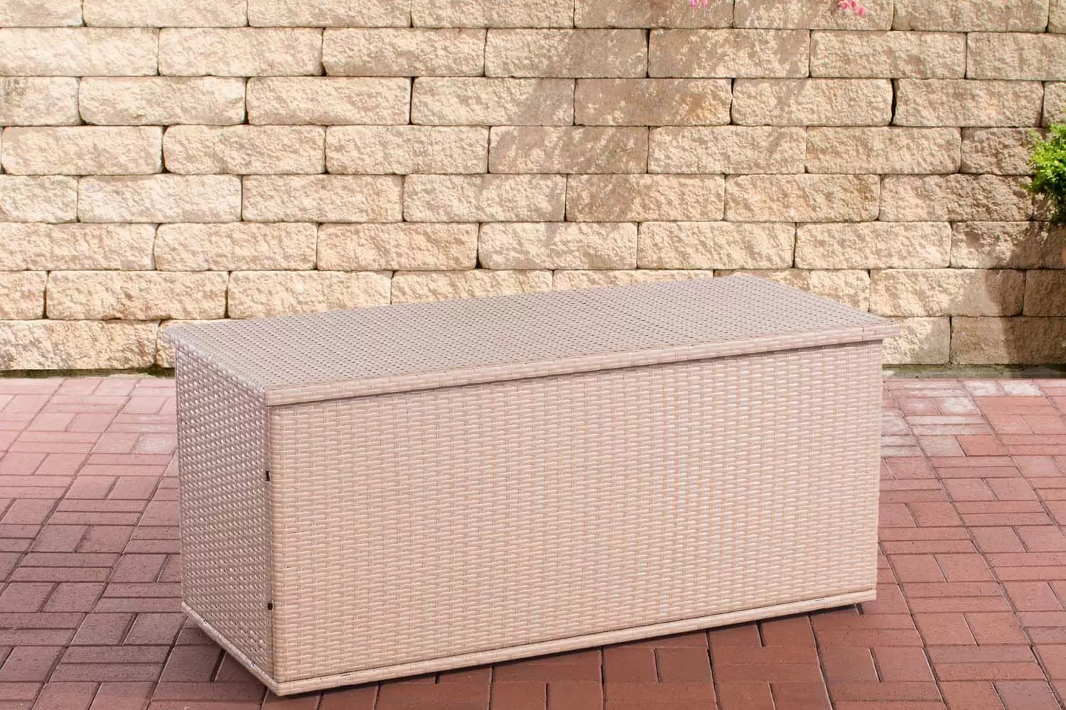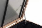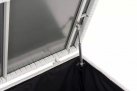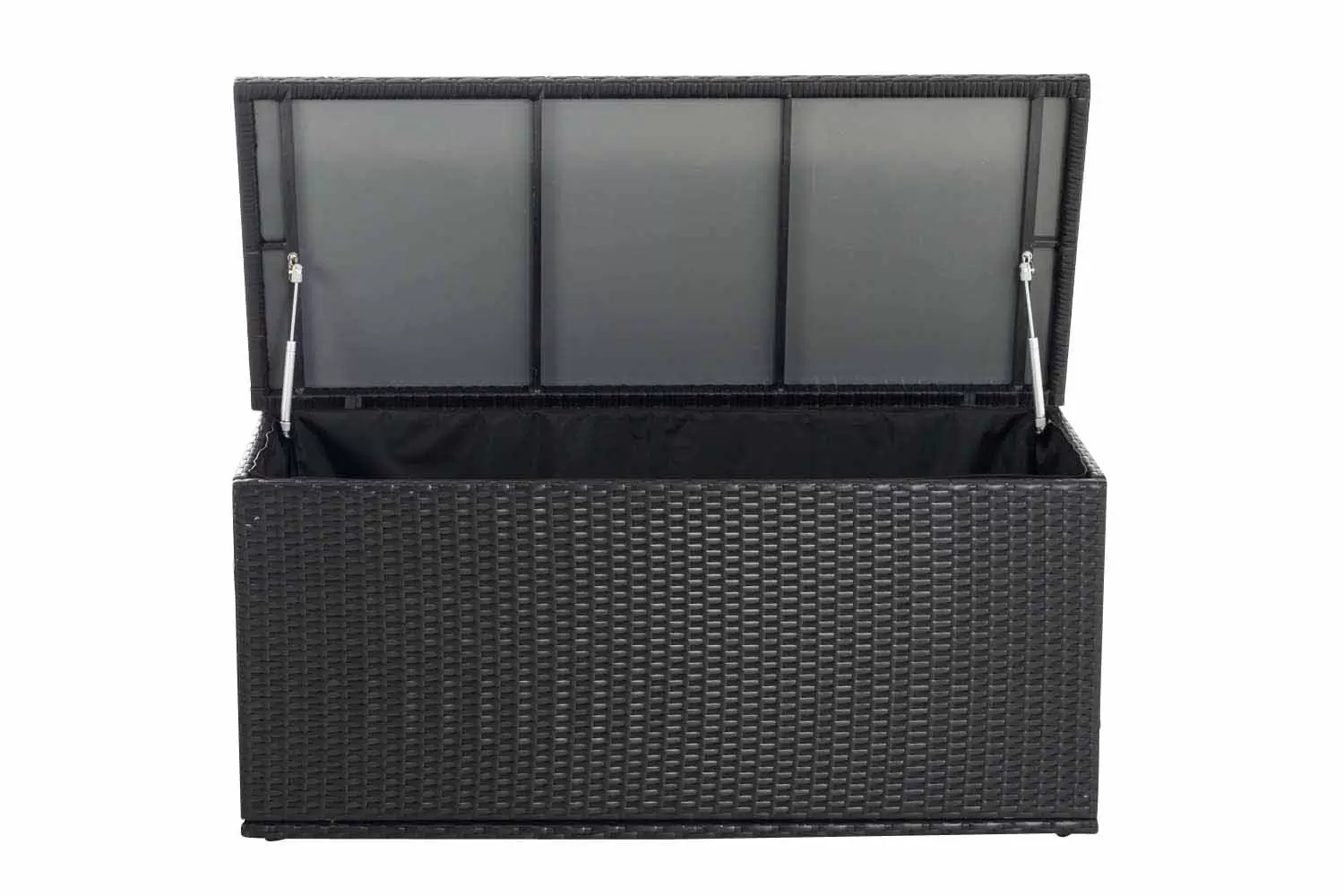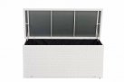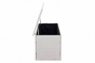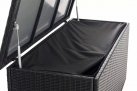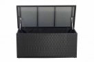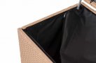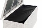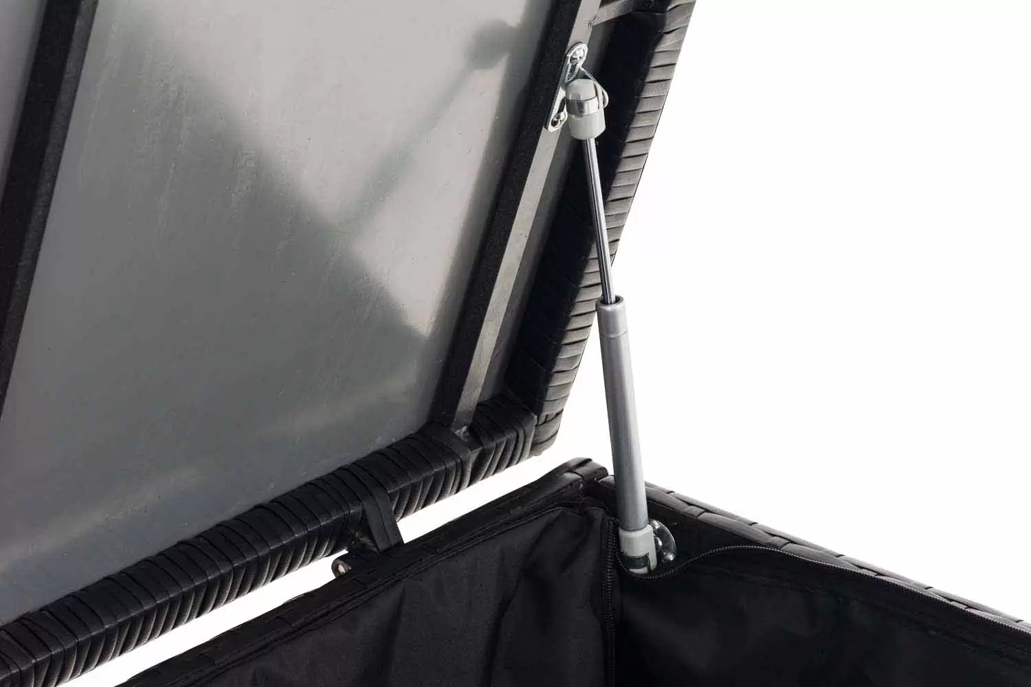 Skrzynia KOMFI to idealne miejsce do przechowywania poduszek mebli ogrodowych. W skrzyni znajduje się osłona przeciwdeszczowa z zamkiem błyskawicznym zapewniająca suchość poduszek ze wszystkich stron. Pokrowiec przeciwdeszczowy można łatwo przymocować i zdjąć za pomocą rzepu. Skrzynia otwierana jest od góry za pomocą pokrywy wyposażonej w 2 amortyzatory gazowe.