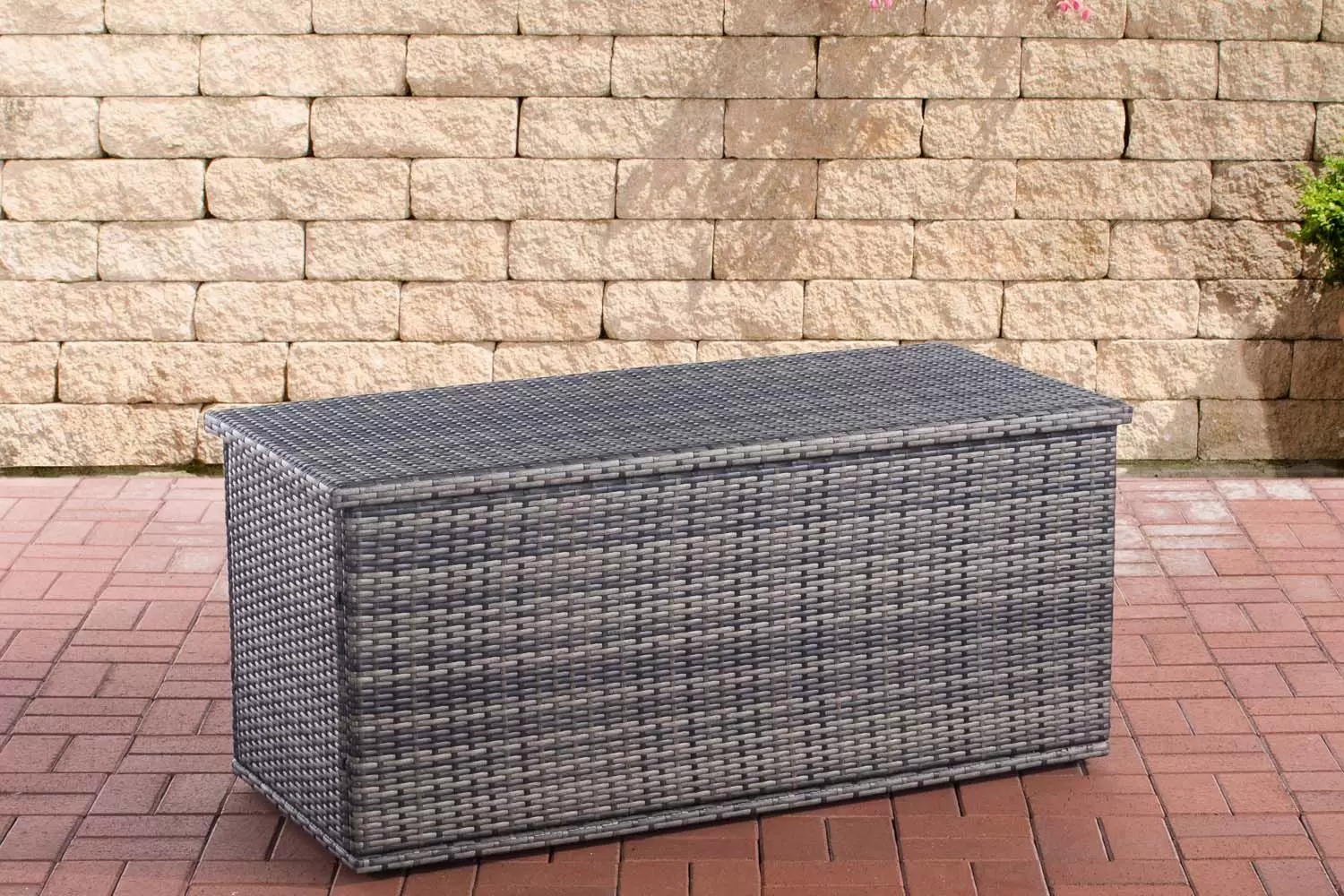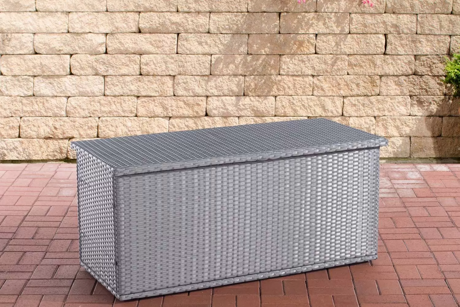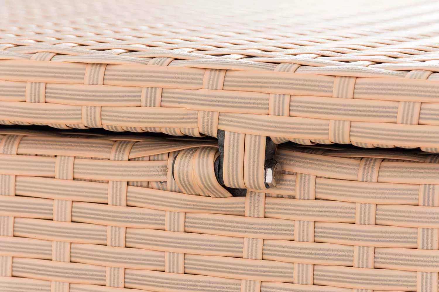 Skrzynia KOMFI to idealne miejsce do przechowywania poduszek mebli ogrodowych. W skrzyni znajduje się osłona przeciwdeszczowa z zamkiem błyskawicznym zapewniająca suchość poduszek ze wszystkich stron. Pokrowiec przeciwdeszczowy można łatwo przymocować i zdjąć za pomocą rzepu. Skrzynia otwierana jest od góry za pomocą pokrywy wyposażonej w 2 amortyzatory gazowe.