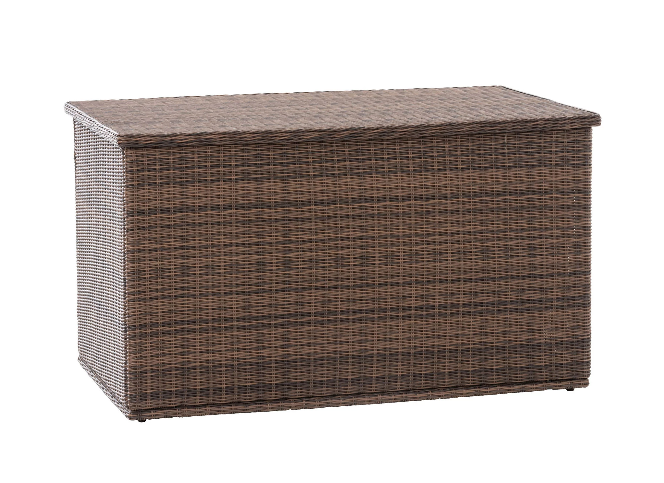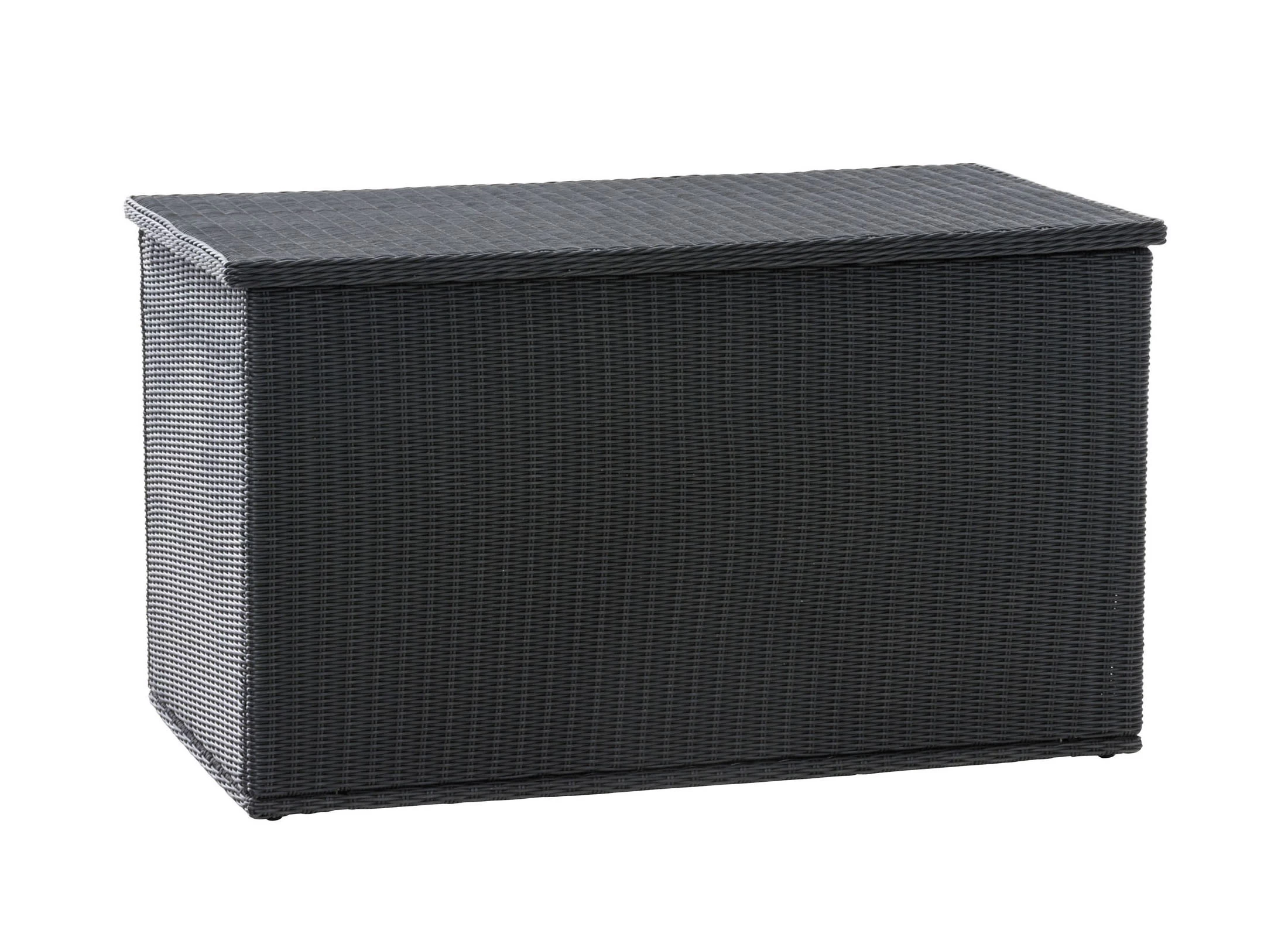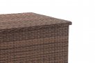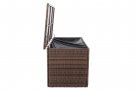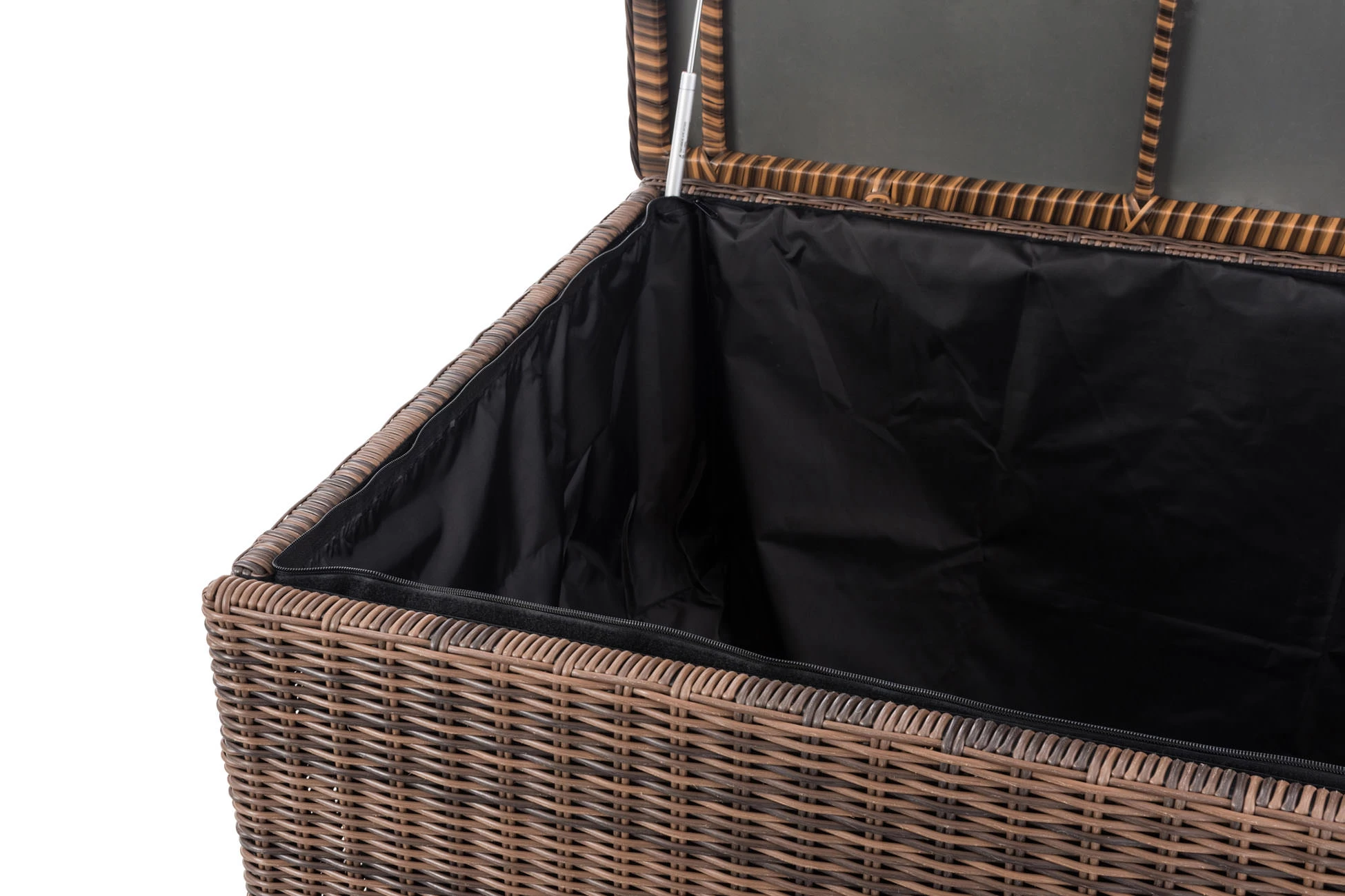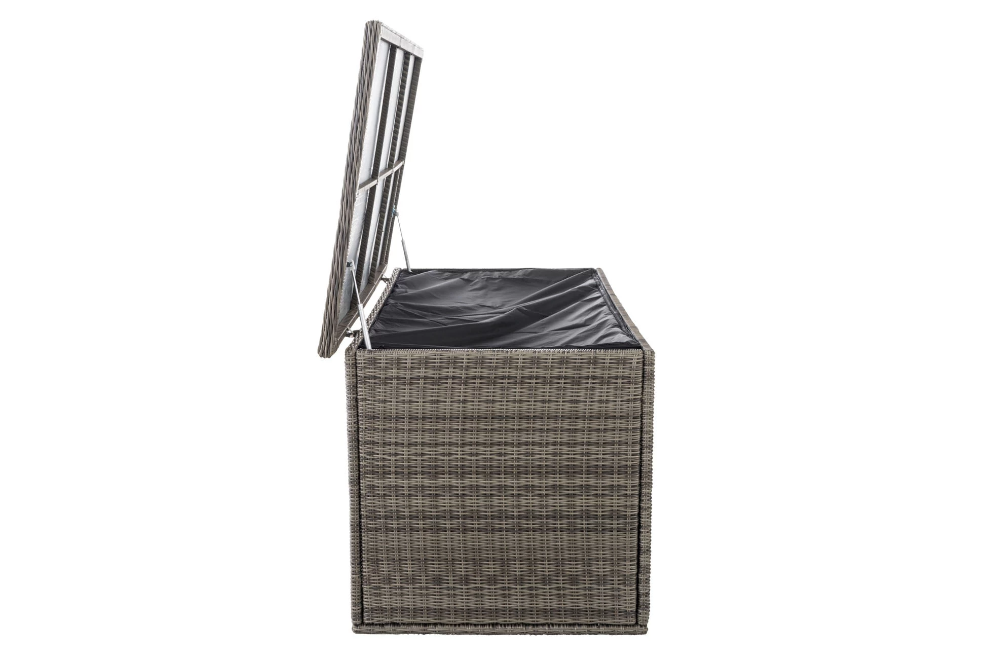 Skrzynie ogrodowa KOMFI to idealne miejsce do przechowywania poduszek mebli ogrodowych. W skrzyni znajduje się osłona przeciwdeszczowa z zamkiem błyskawicznym zapewniająca suchość poduszek ze wszystkich stron. Pokrowiec przeciwdeszczowy można łatwo przymocować i zdjąć za pomocą rzepu. Skrzynia otwierana jest od góry za pomocą pokrywy wyposażonej w 2 amortyzatory gazowe.