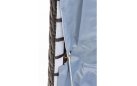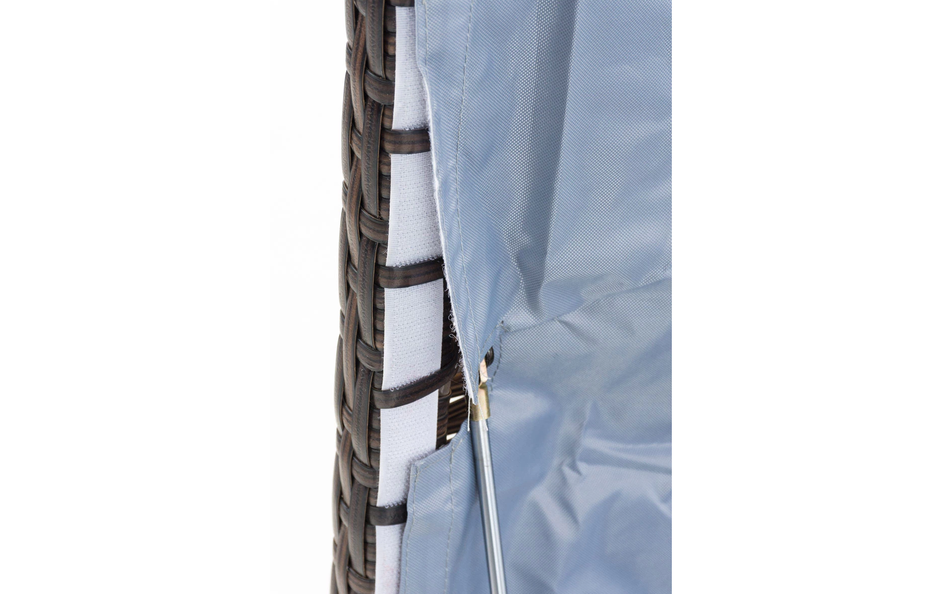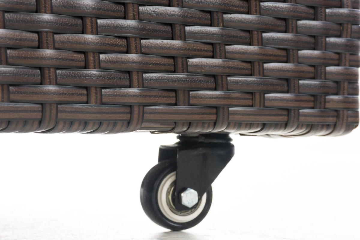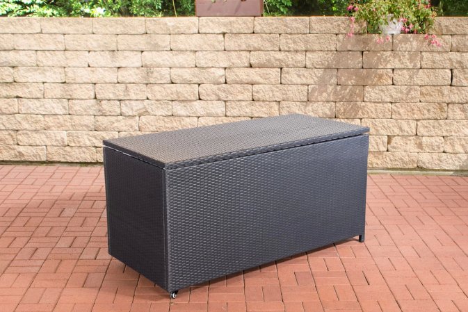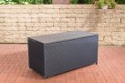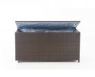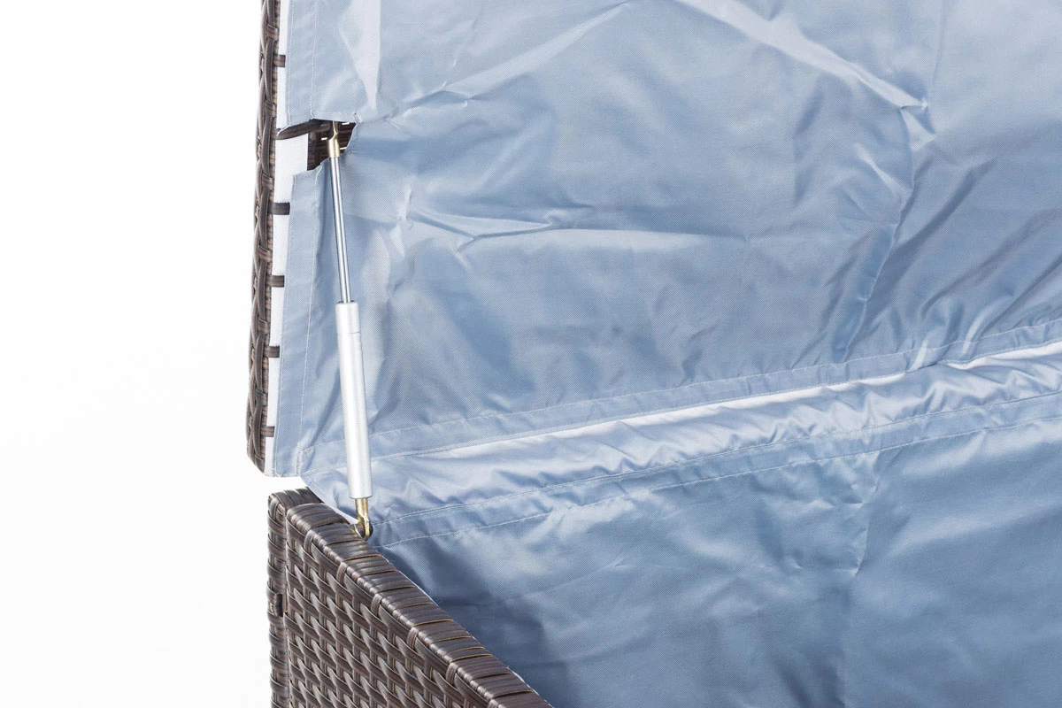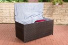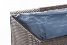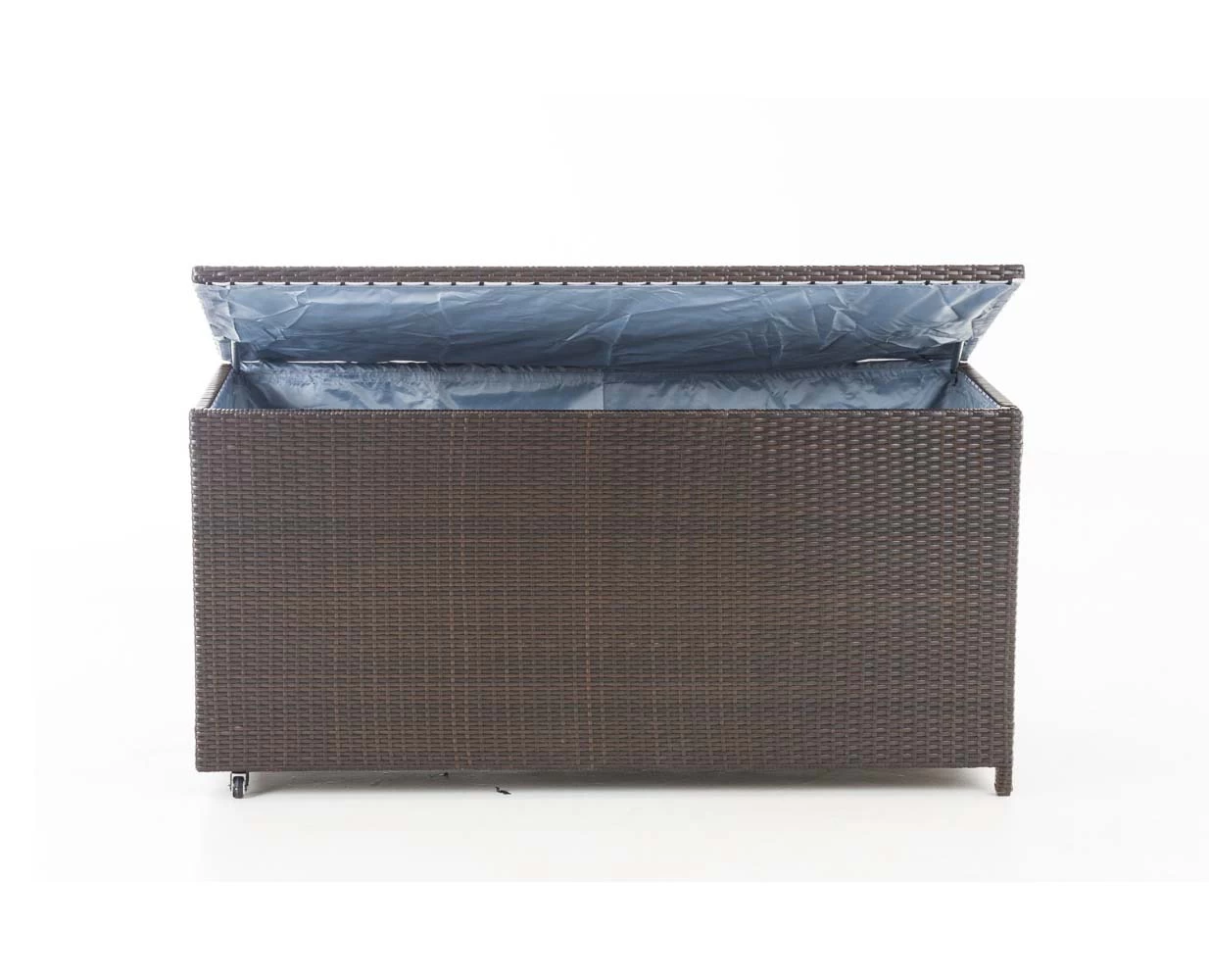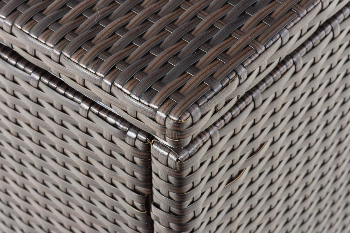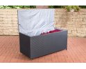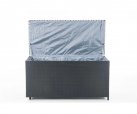 Skrzynia zapewnia ochronę dla poduszek z mebli ogrodowych gdy nie są używane. Wykonana z technorattanu płaskiego. Rama wykonana z aluminium malowanego proszkowo jest nierdzewna. Dwa siłowniki pneumatyczne zapewniają utrzymanie klapy w pozycji pionowej. Górna klapa i wnętrze skrzyni wyścielone szarym materiałem poliestrowym wodoodpornym. Przemieszczanie skrzyni ułatwiają dwa obrotowe kółka.