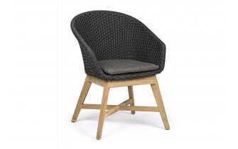 2x hoker stołowy ogrodowy nowoczesny z podstawą z drewna teak i siedziskami wyplatanymi lina polipropylenową.
