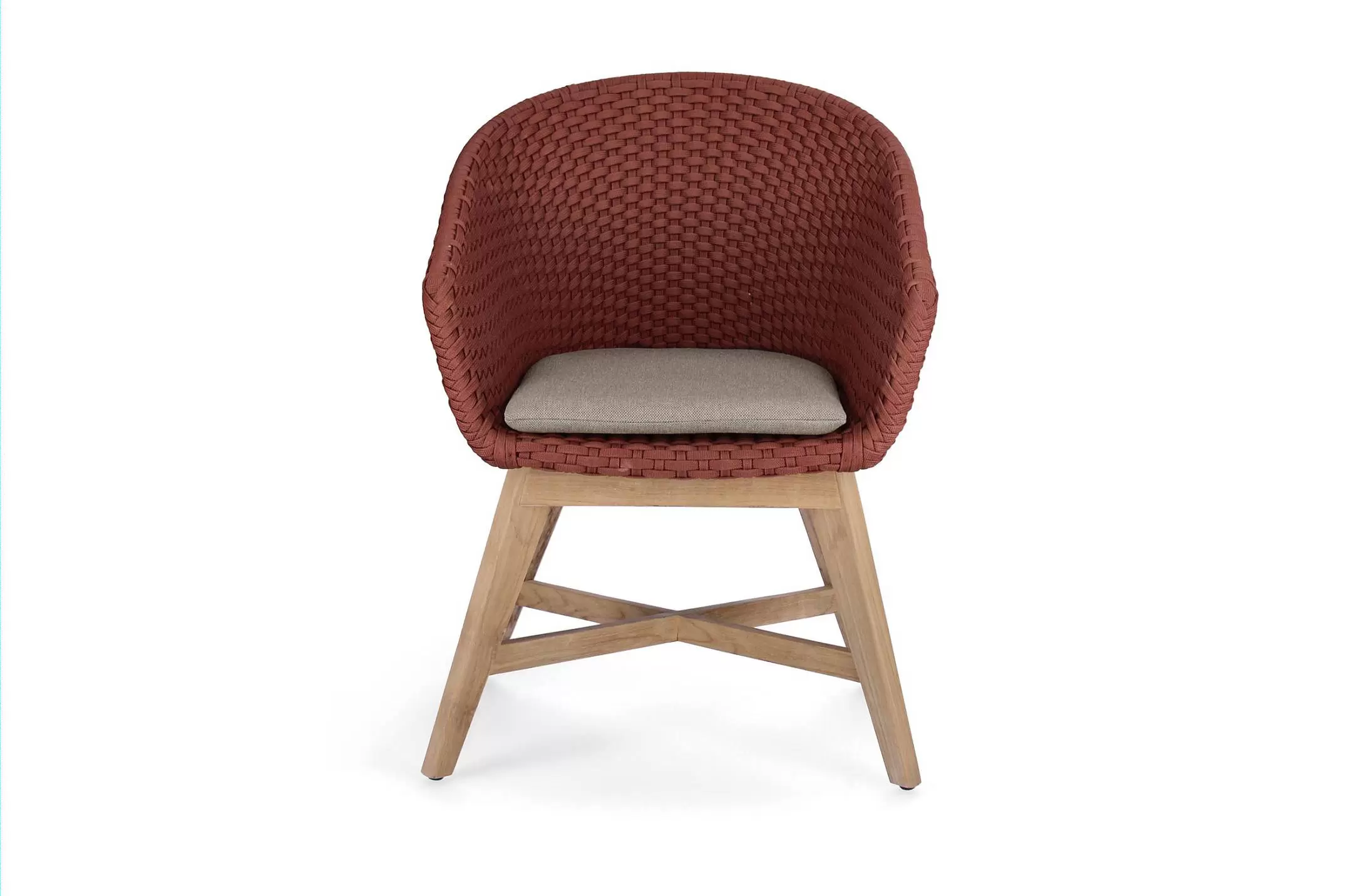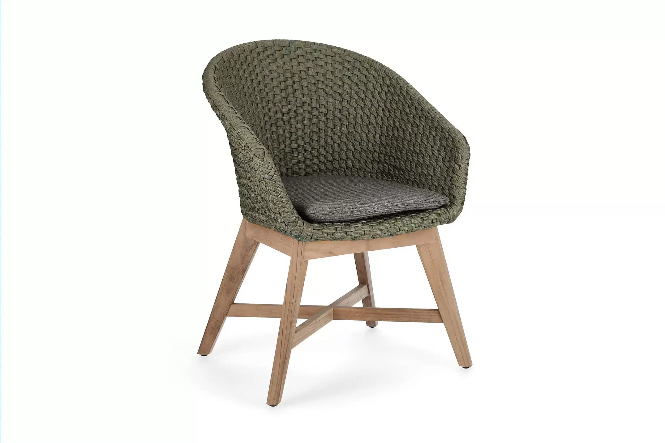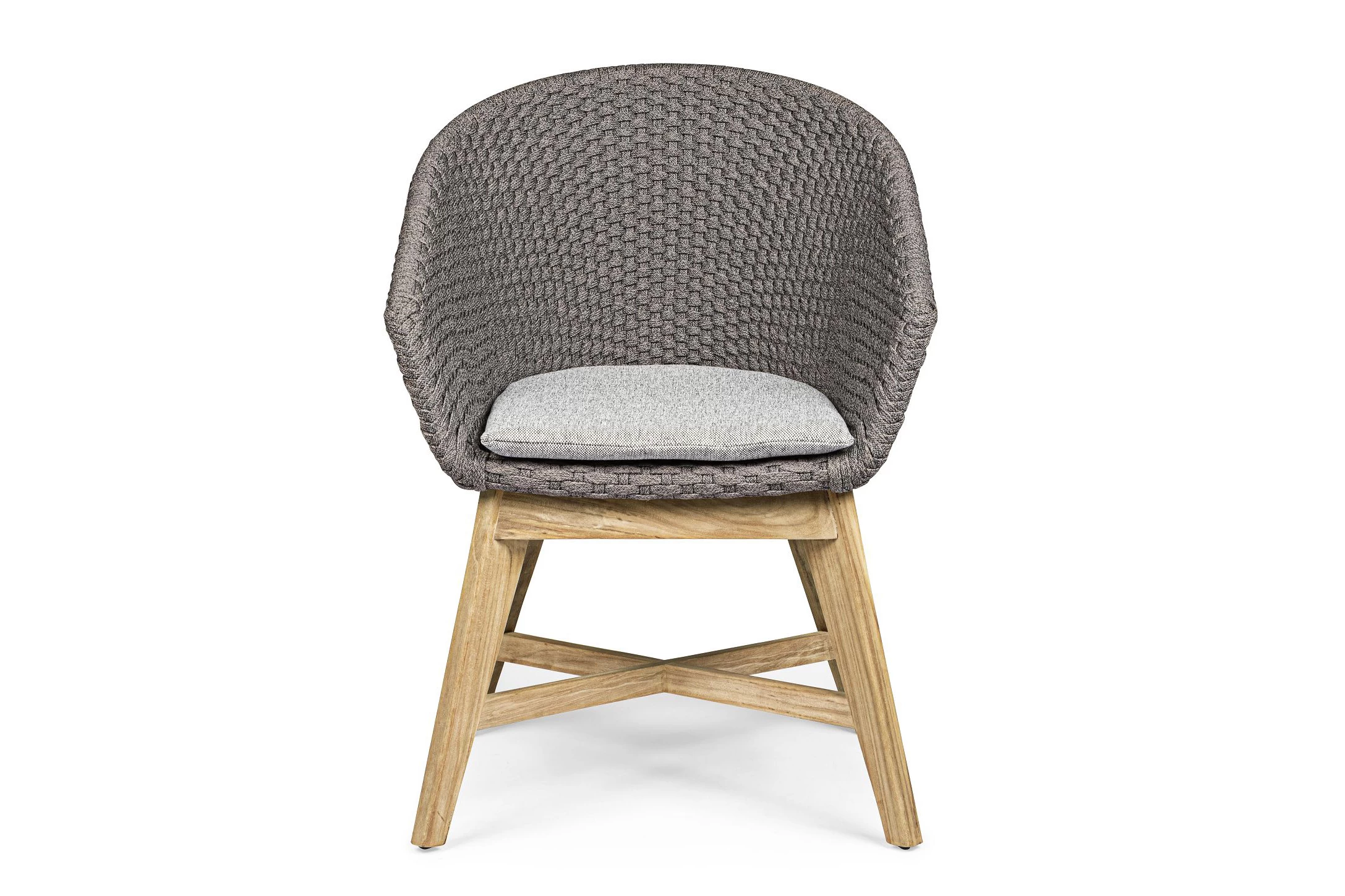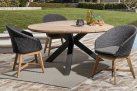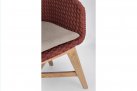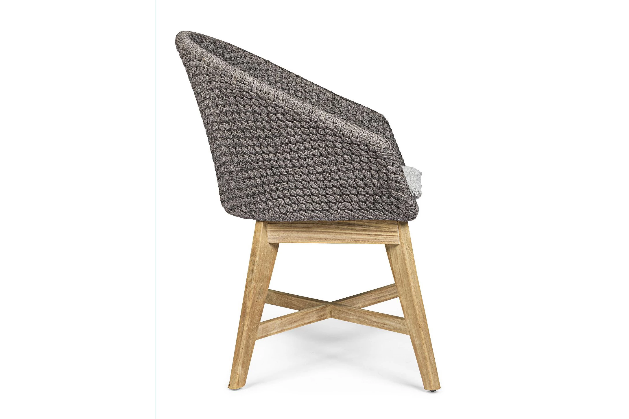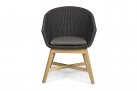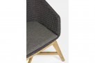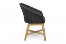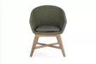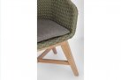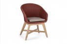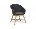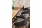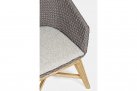 Krzesło stołowe ogrodowe nowoczesne z podstawą z drewna teak i siedziskami wyplatanymi lina polipropylenową. W komplecie poduszka.