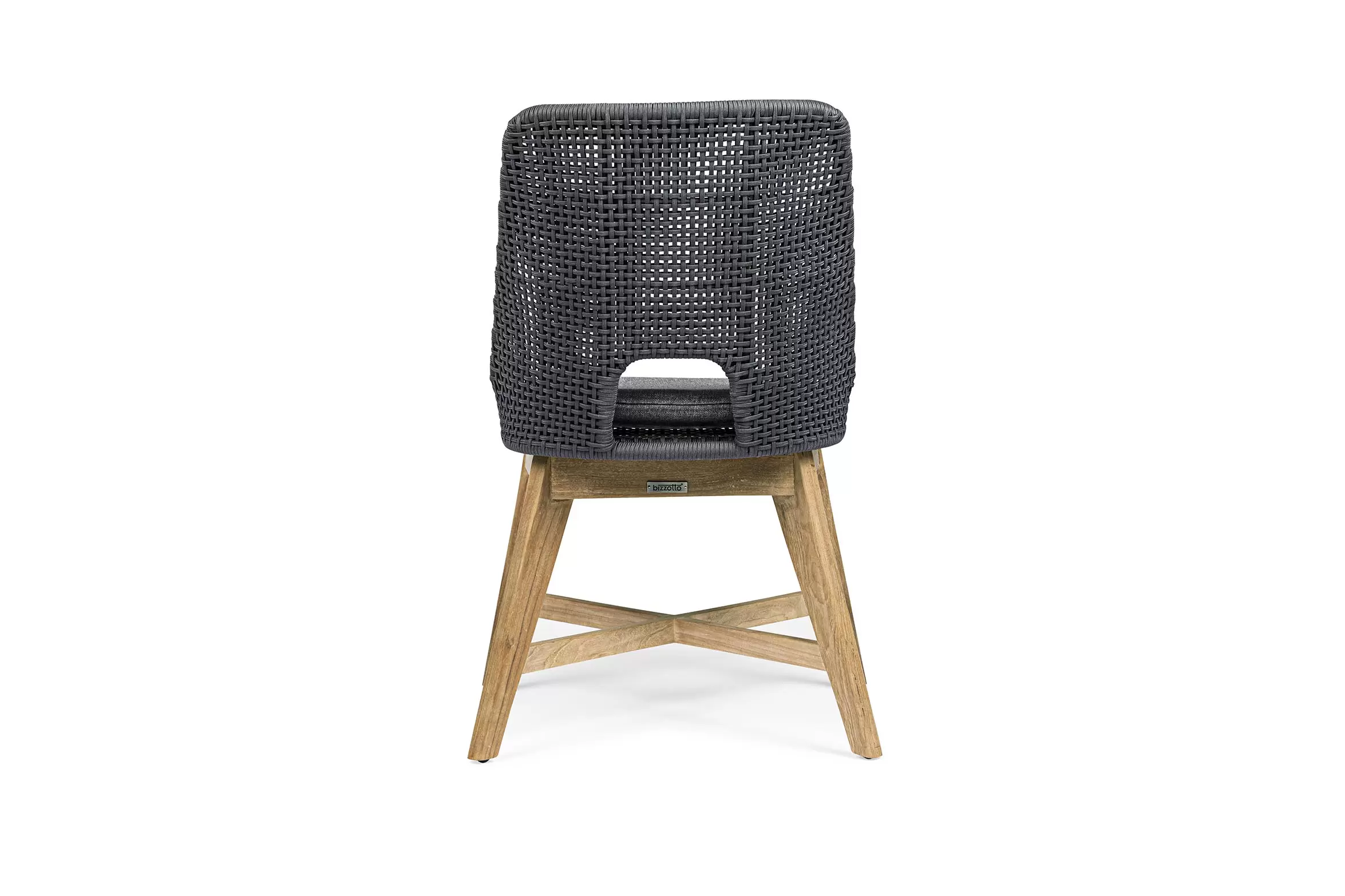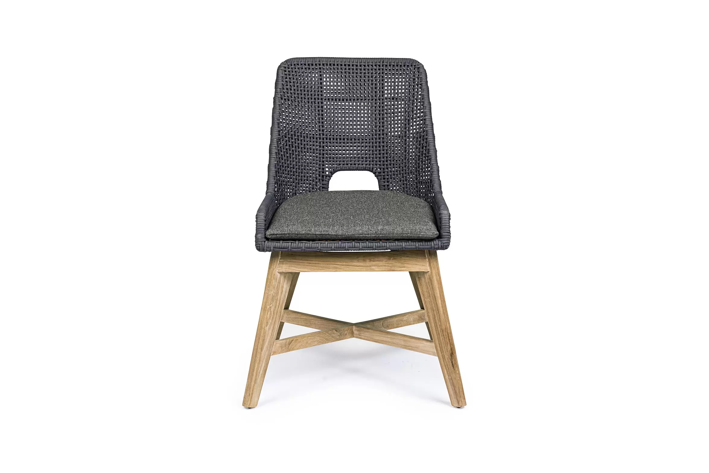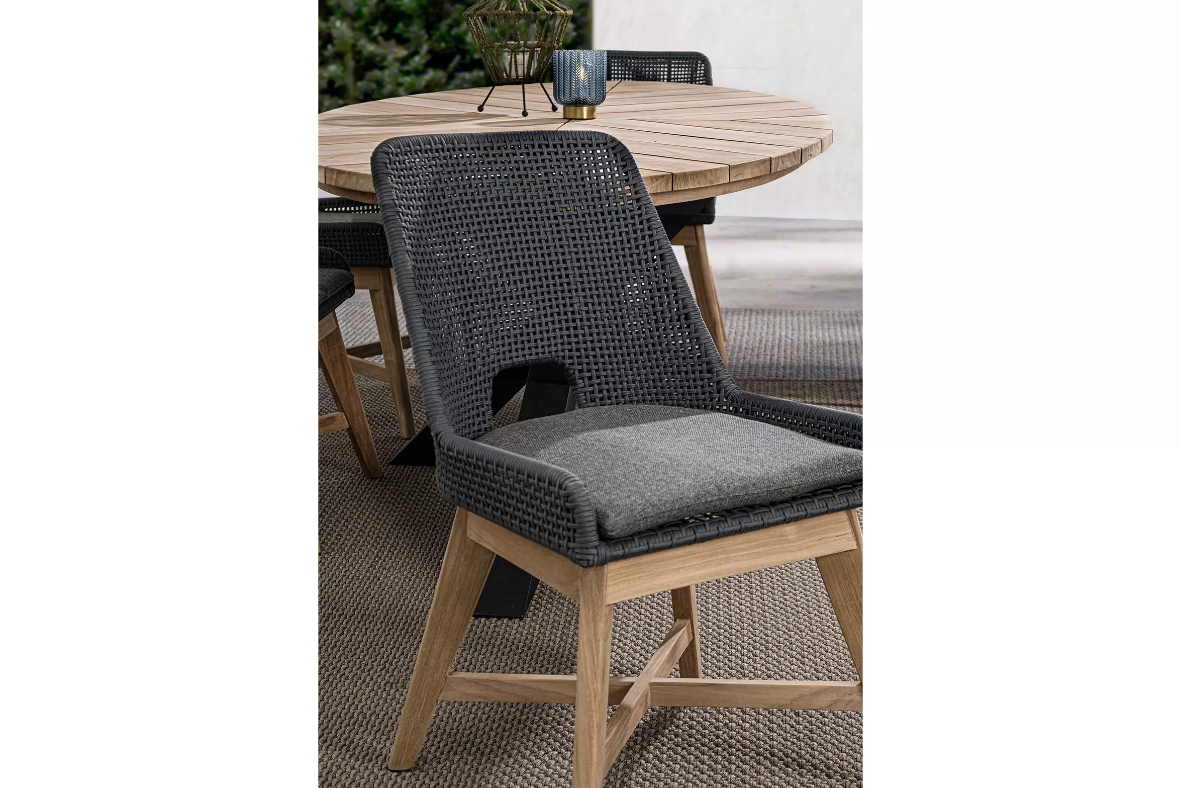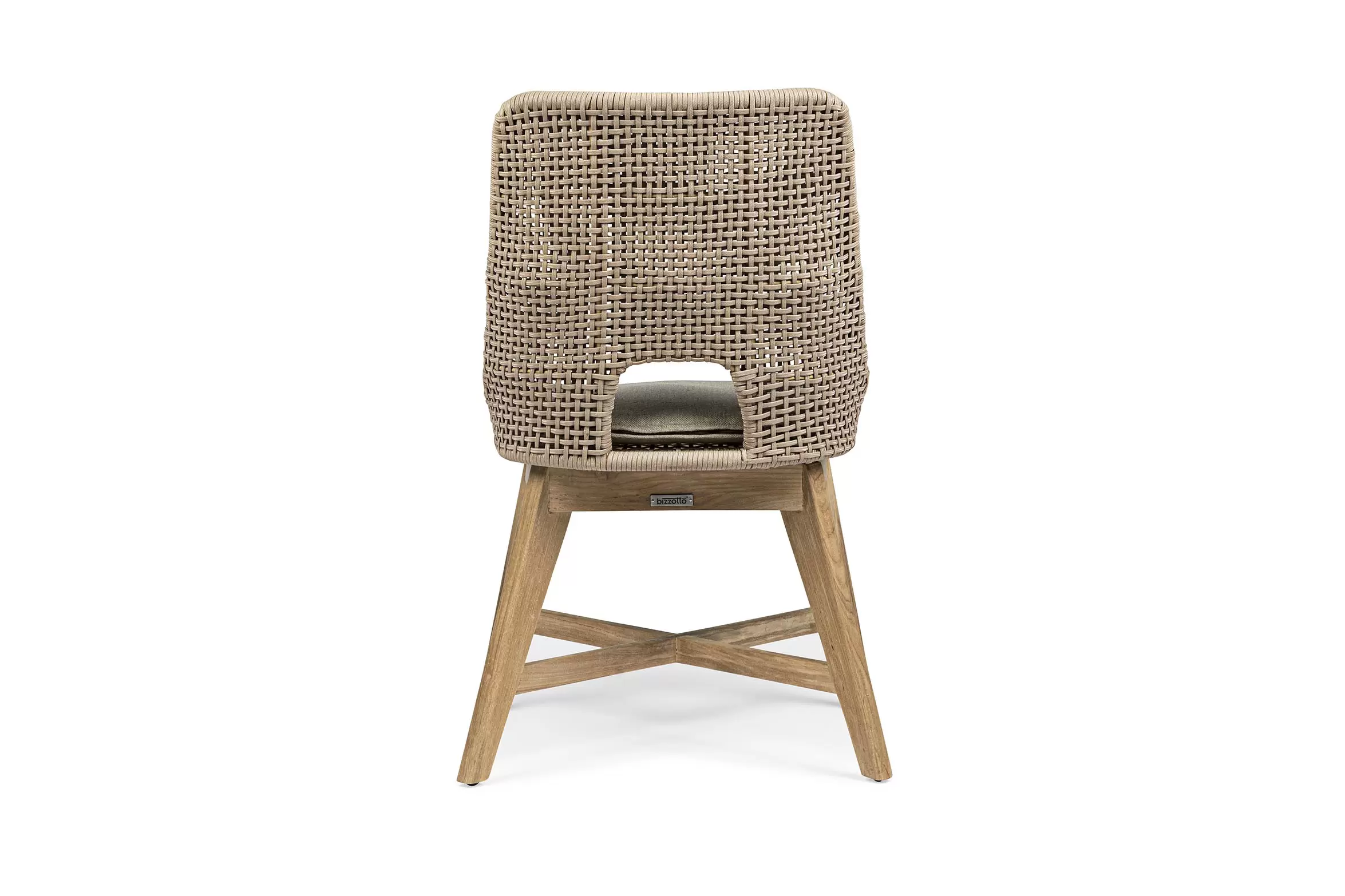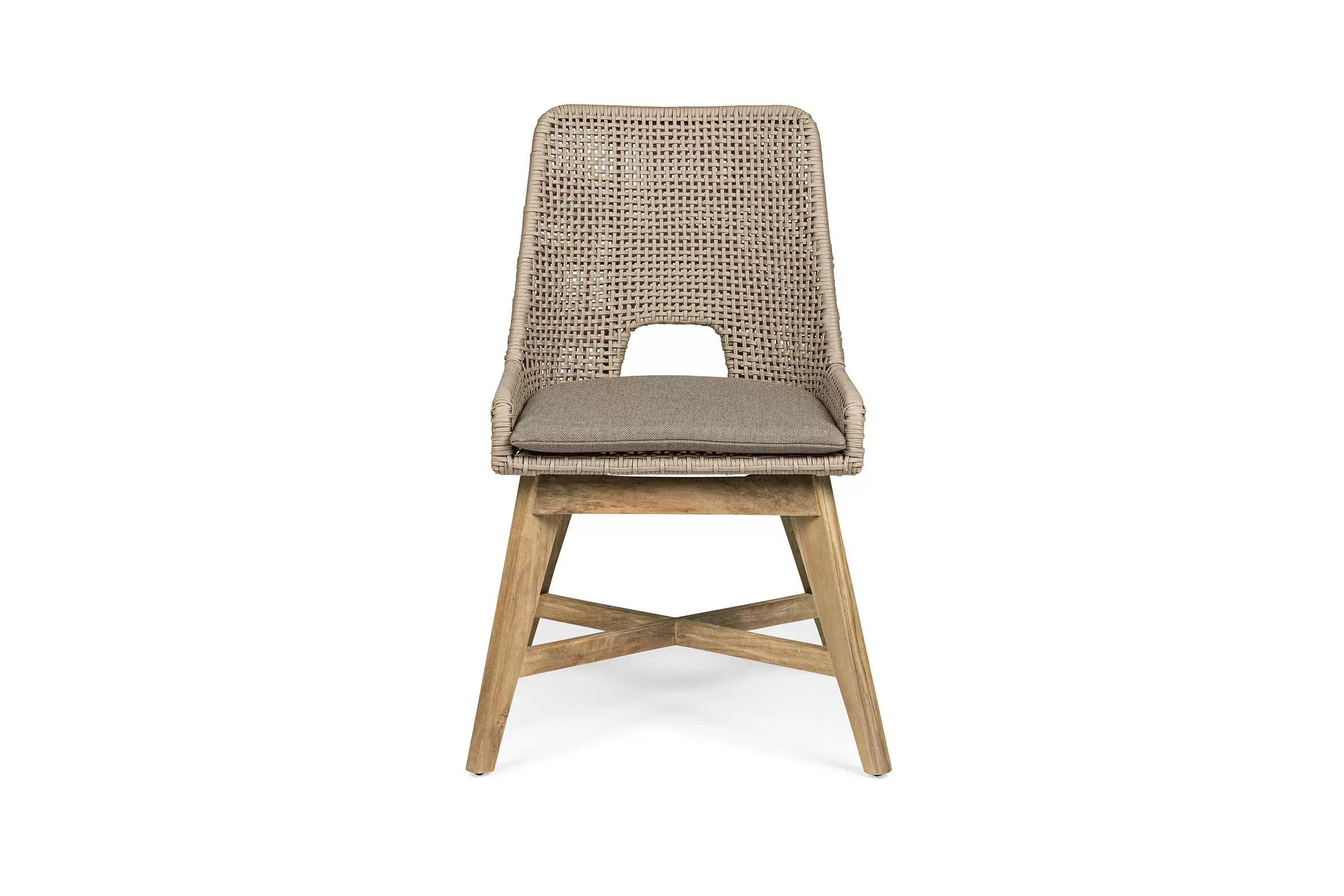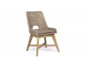 2x krzesło stołowe ogrodowe nowoczesne z podstawą z drewna teak i siedziskami wyplatanymi liną olefinową.
