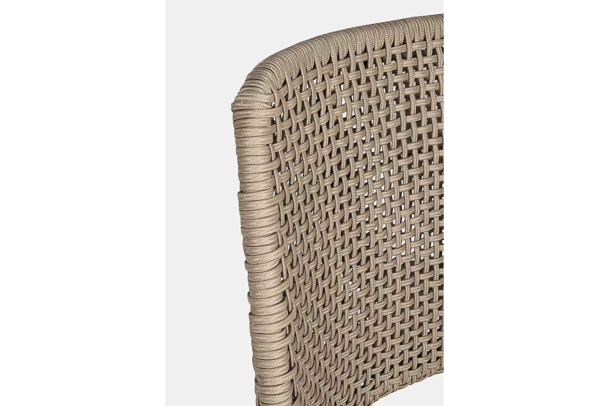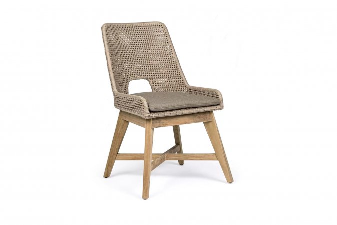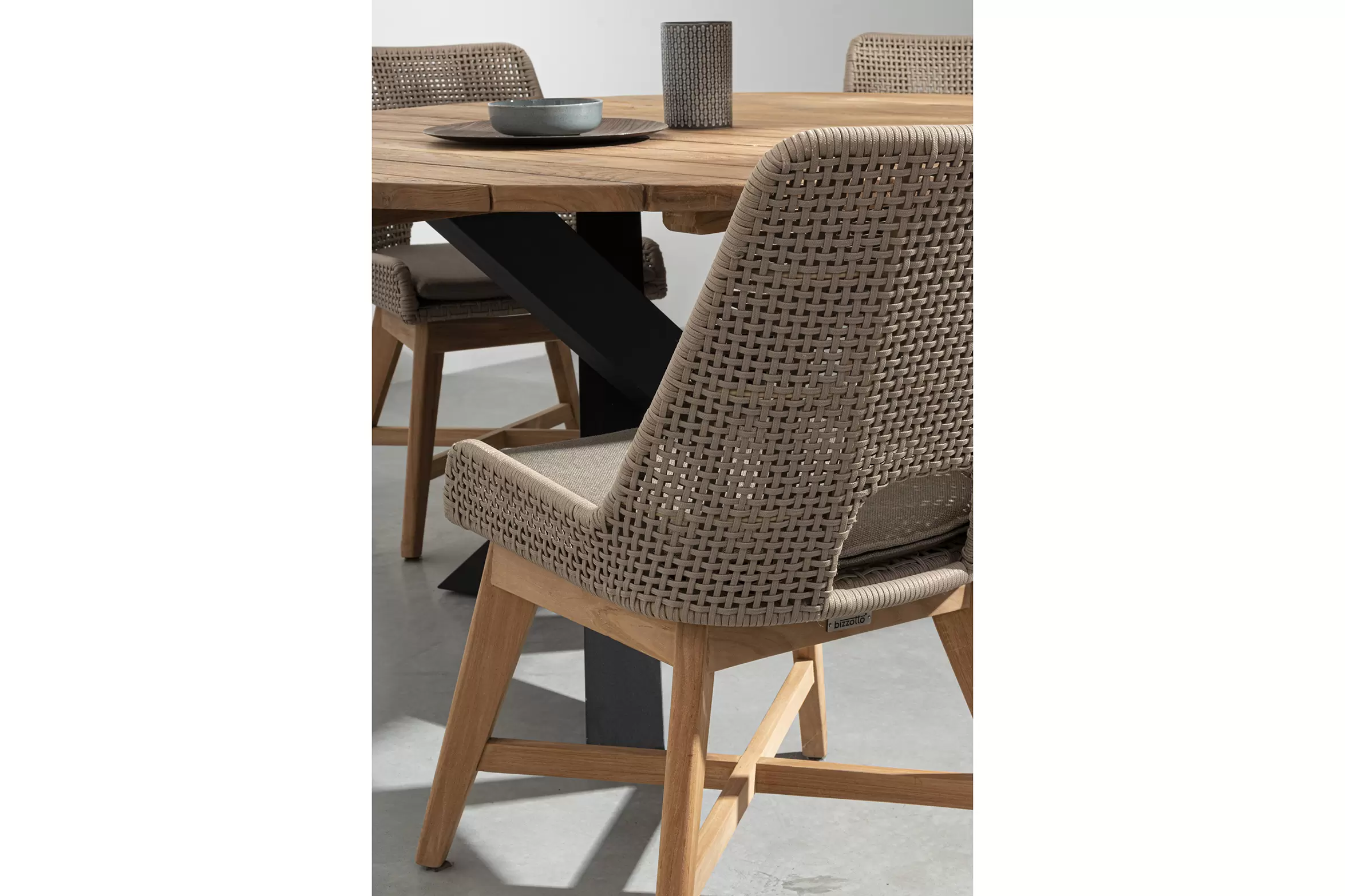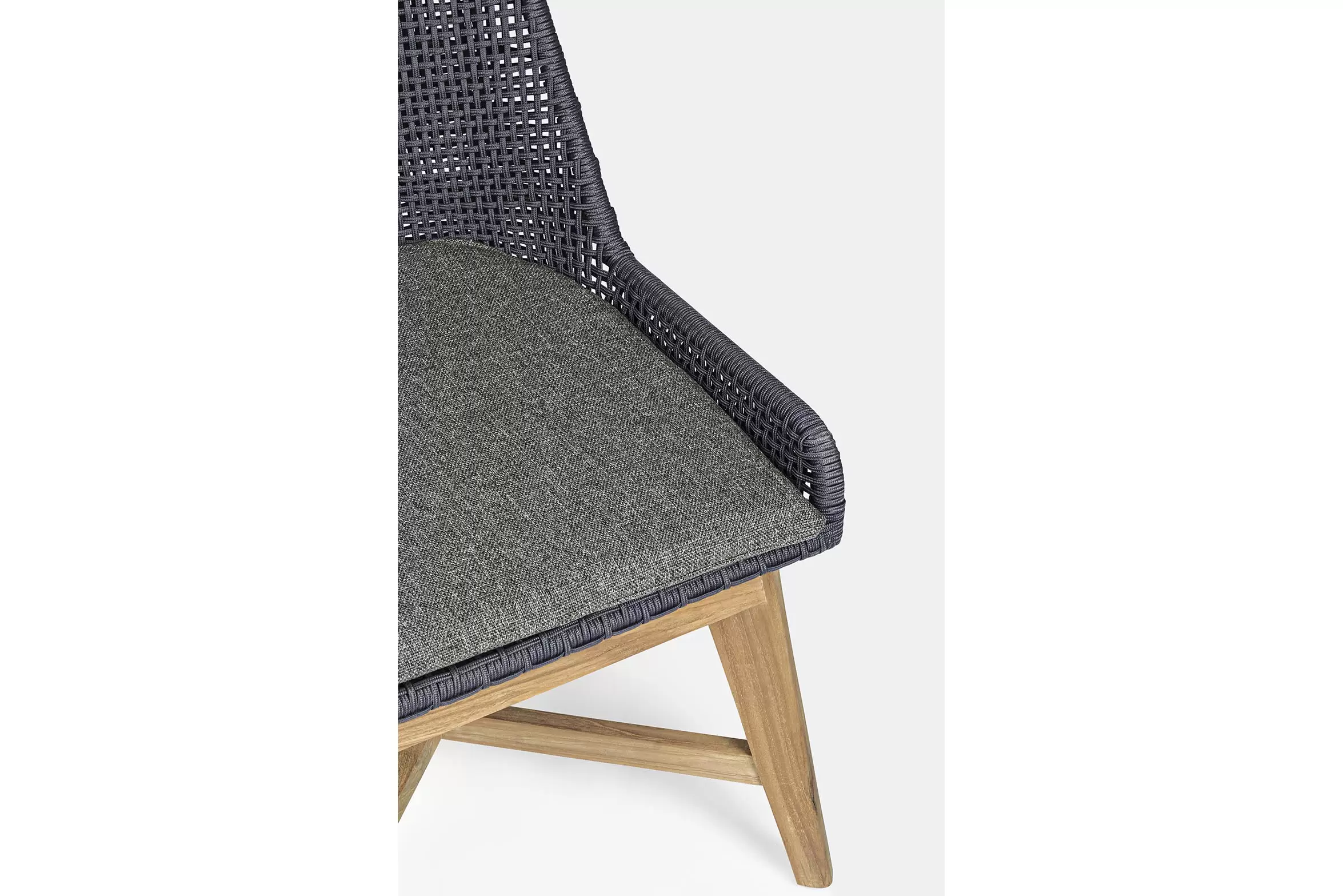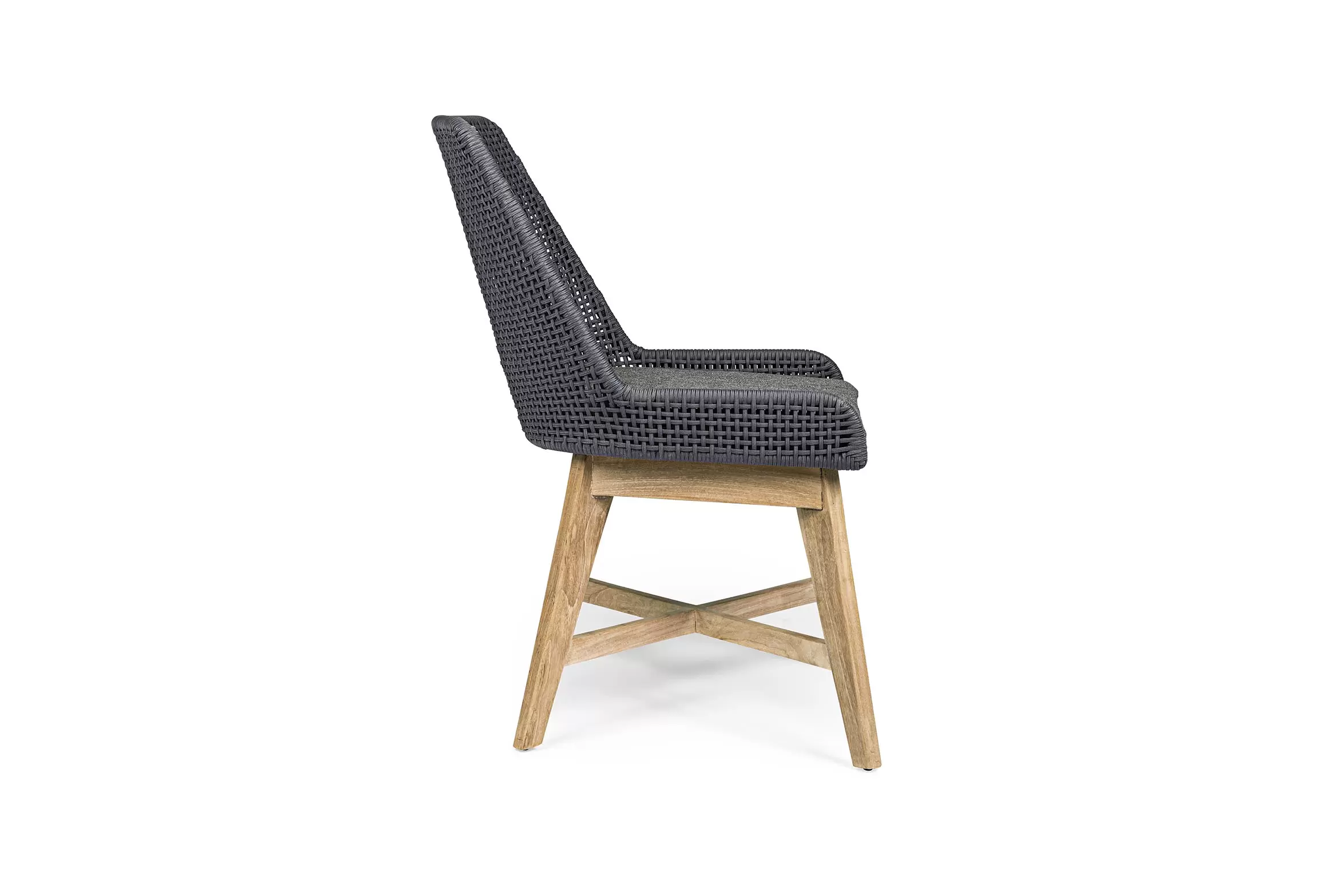 2x krzesło stołowe ogrodowe nowoczesne z podstawą z drewna teak i siedziskami wyplatanymi liną olefinową.