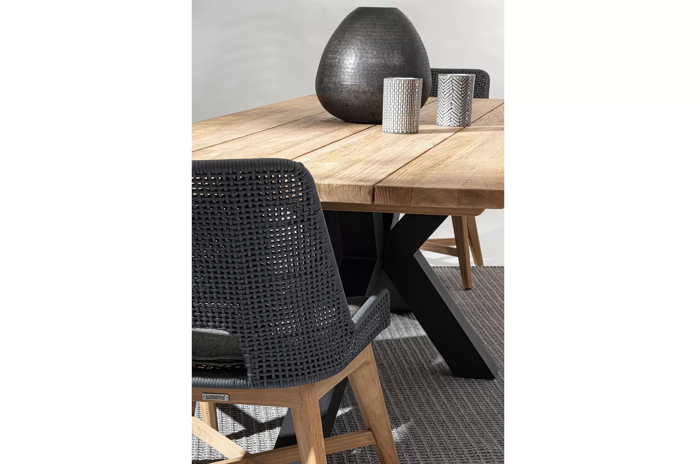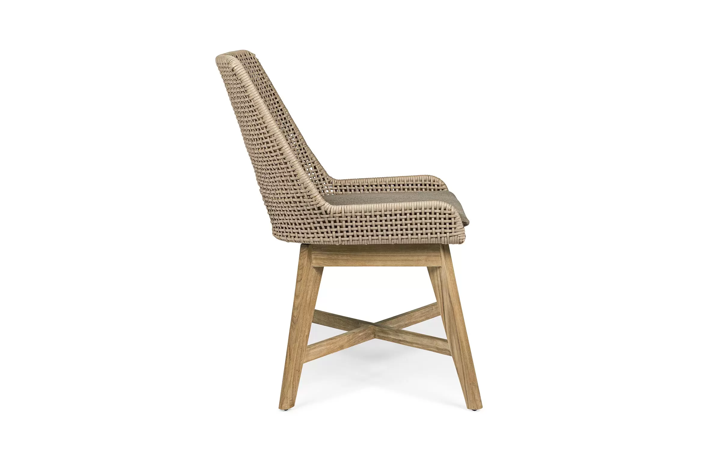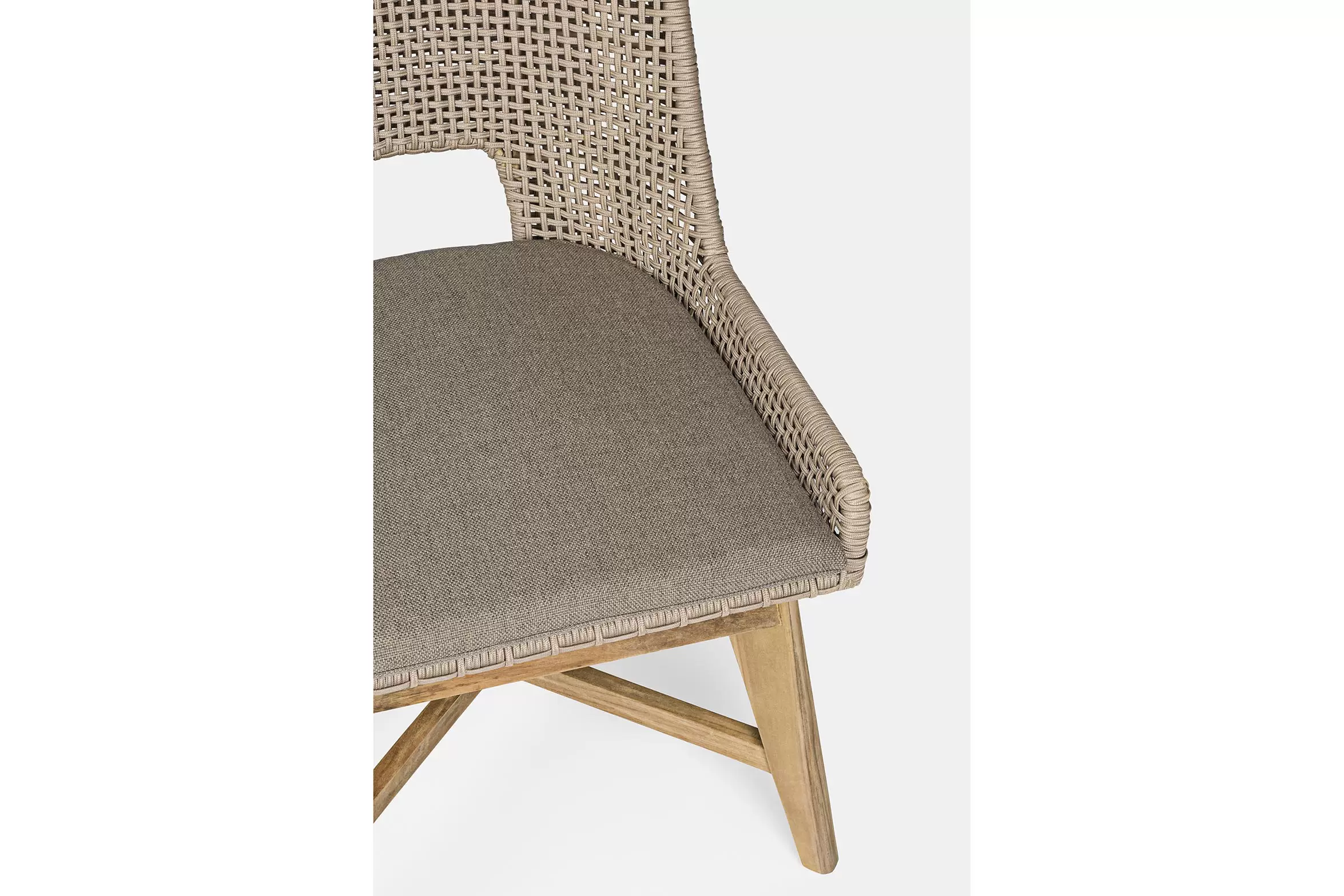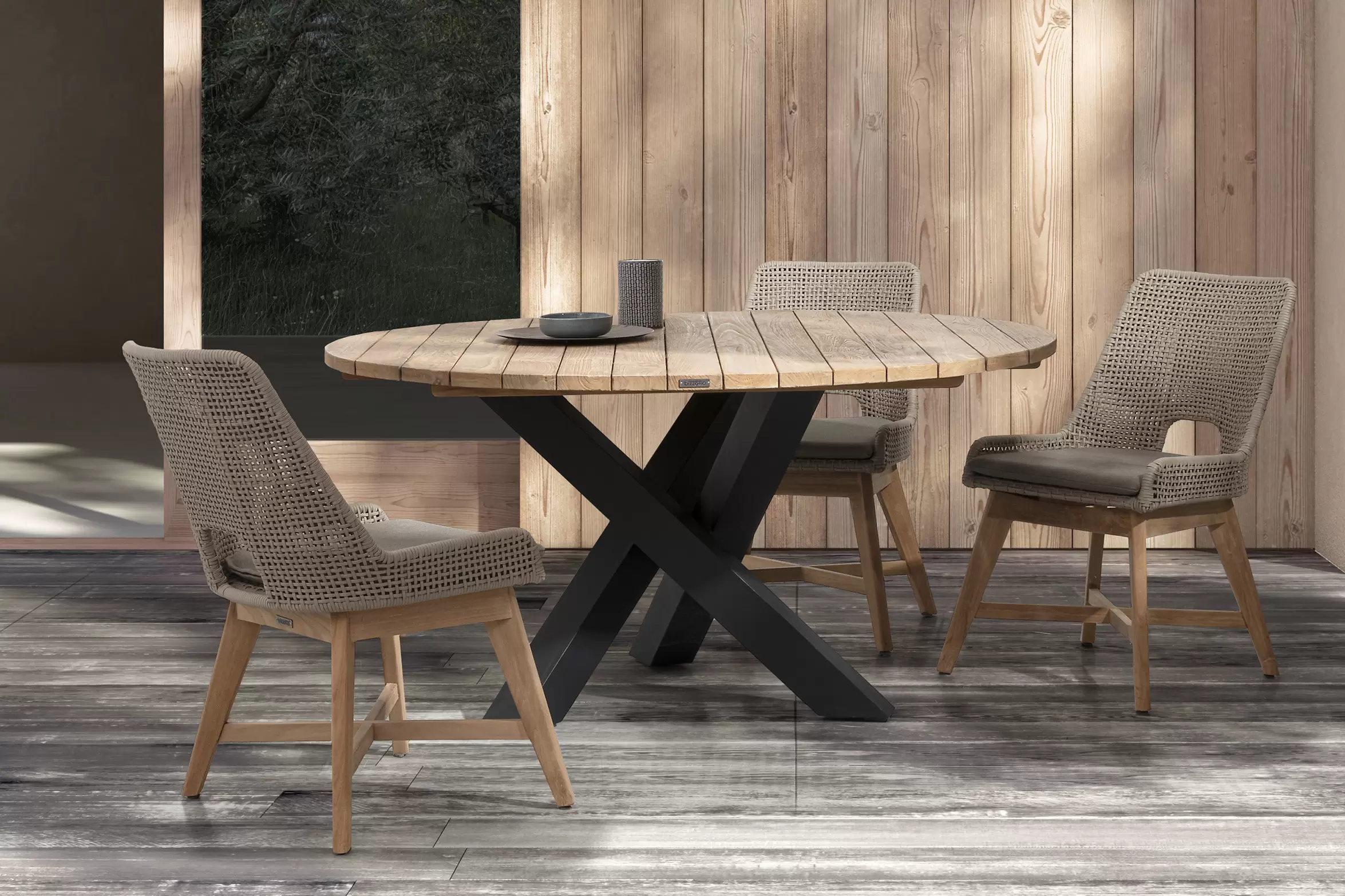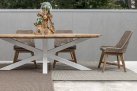2x krzesło stołowe ogrodowe nowoczesne z podstawą z drewna teak i siedziskami wyplatanymi liną olefinową.