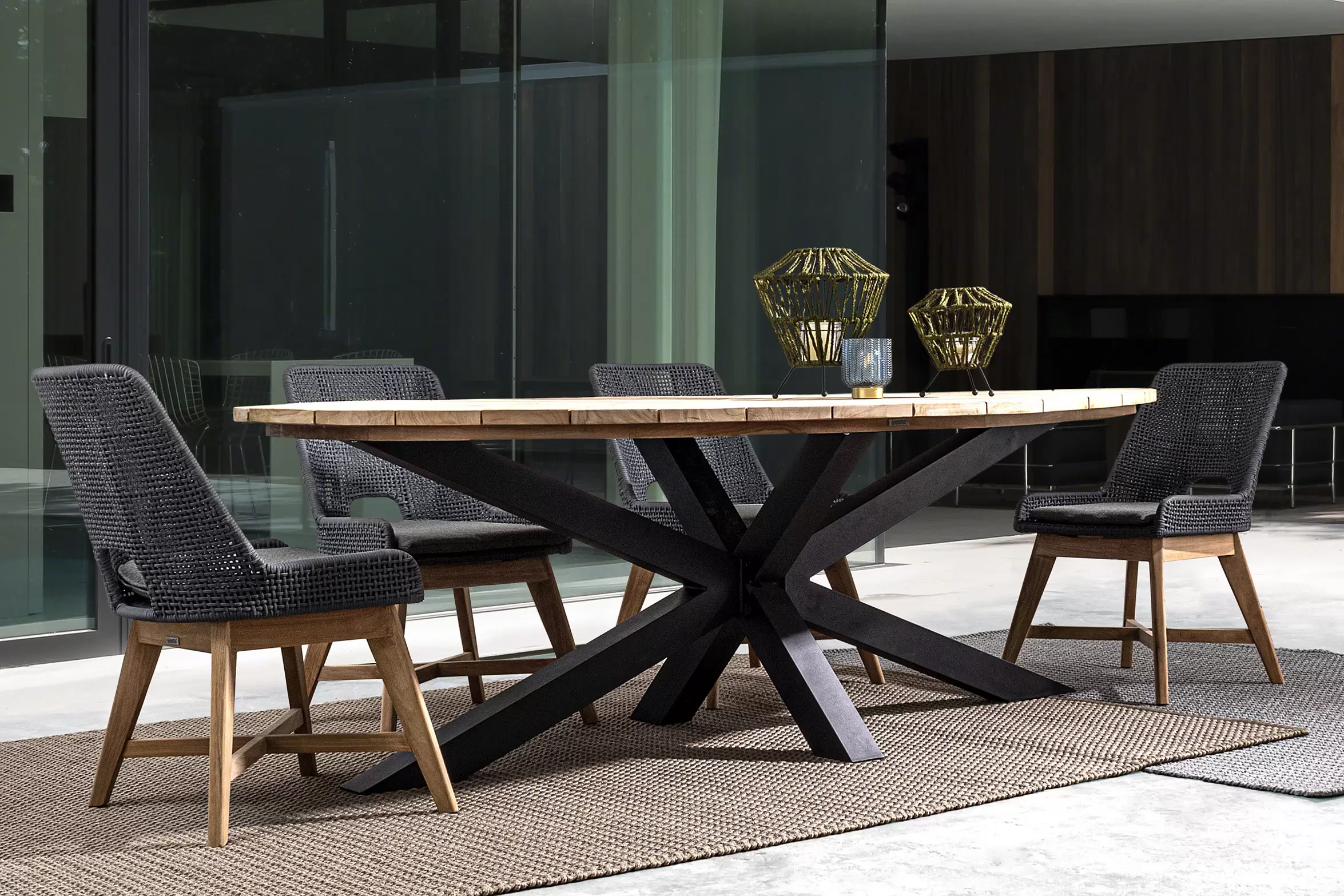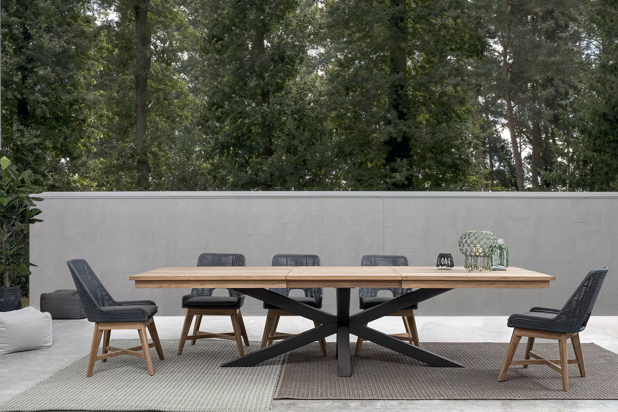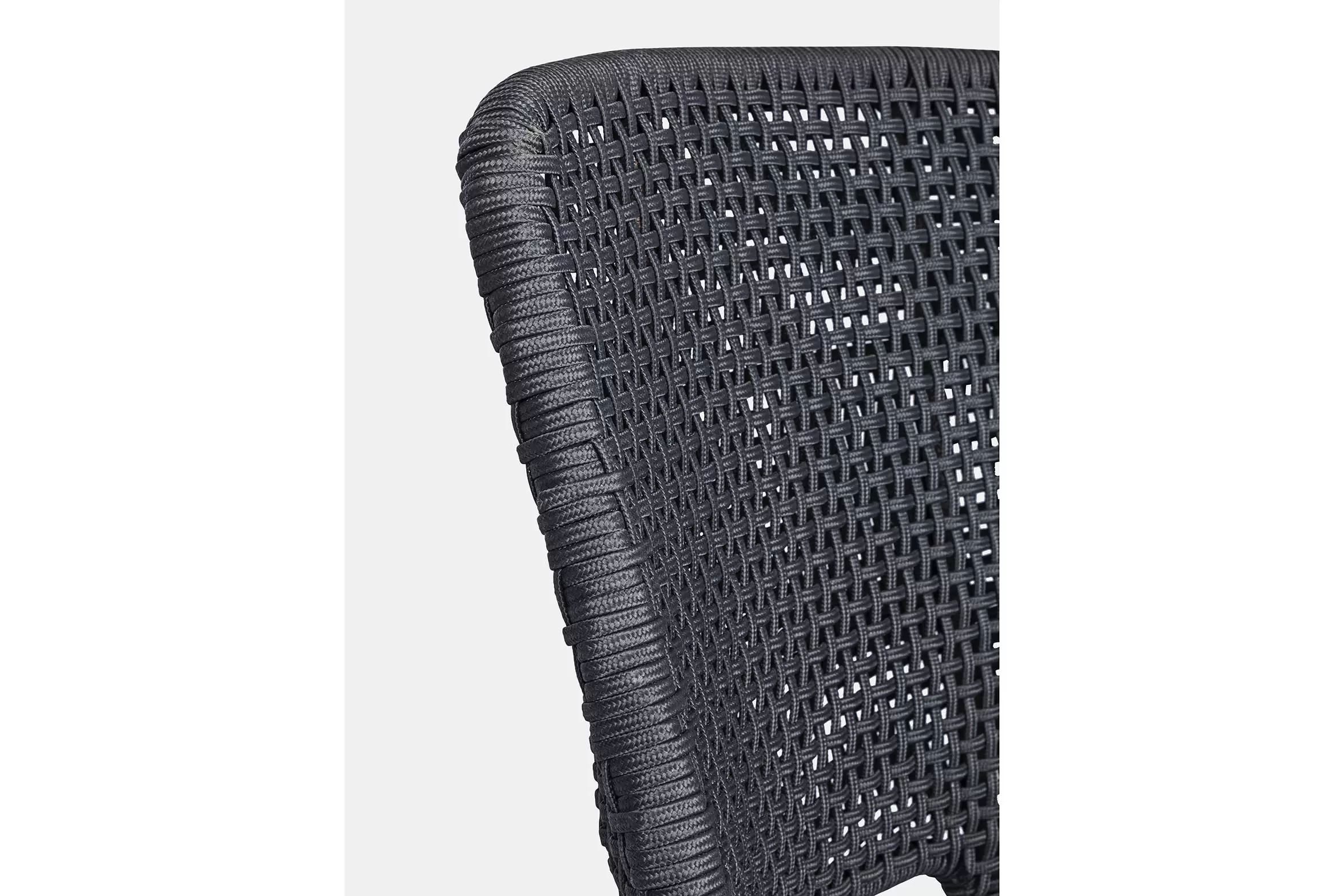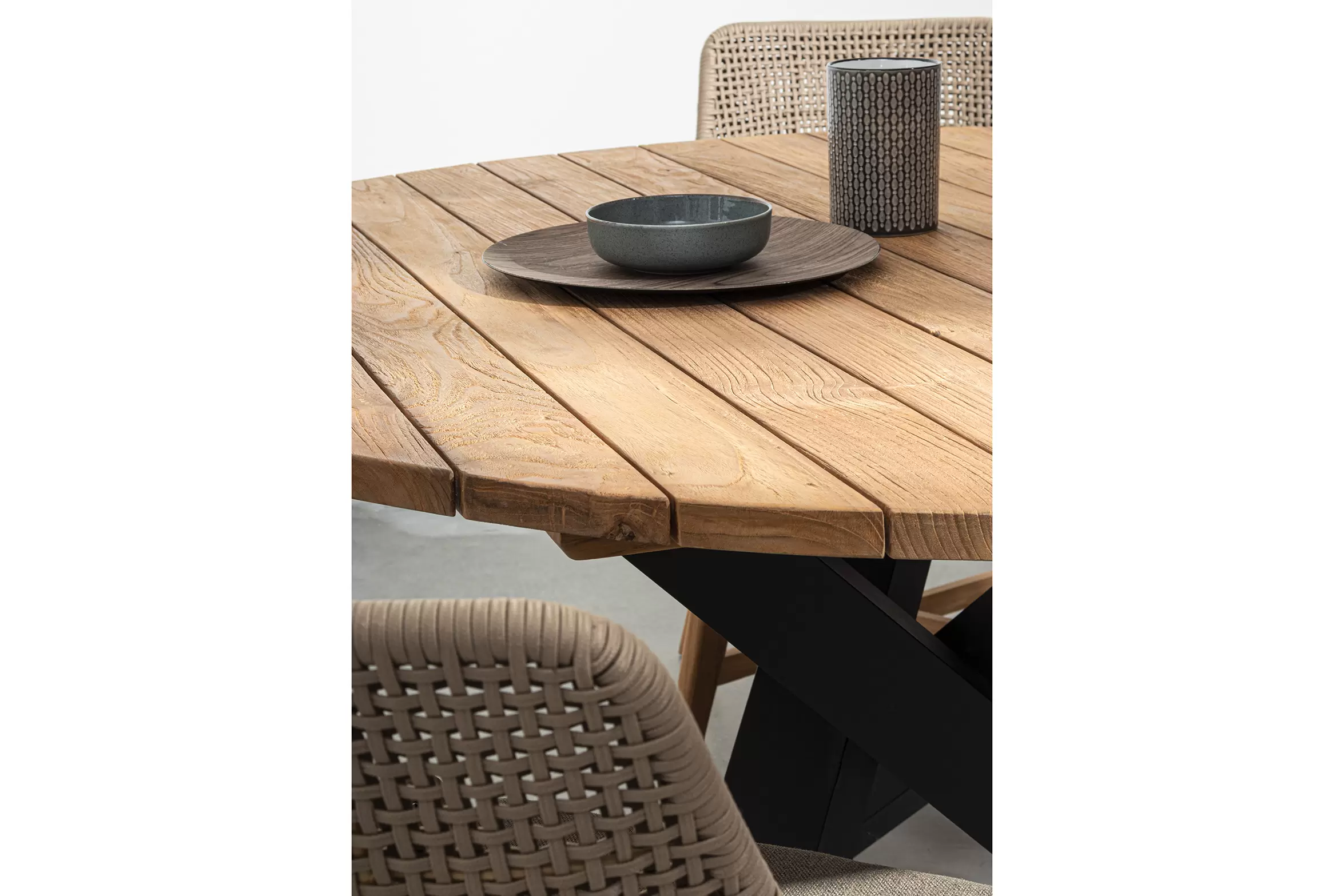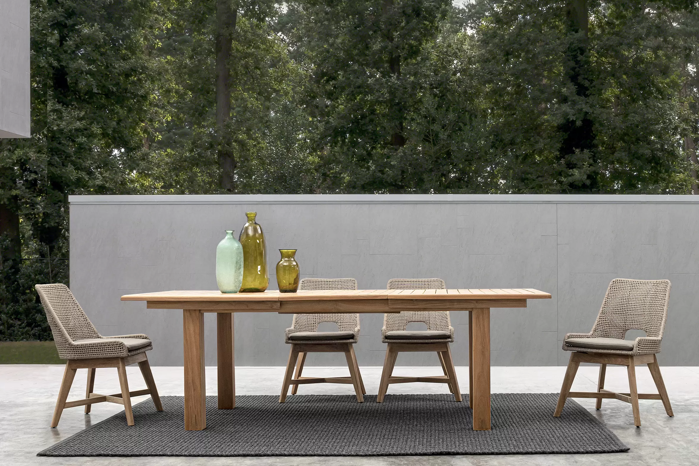 2x krzesło stołowe ogrodowe nowoczesne z podstawą z drewna teak i siedziskami wyplatanymi liną olefinową.