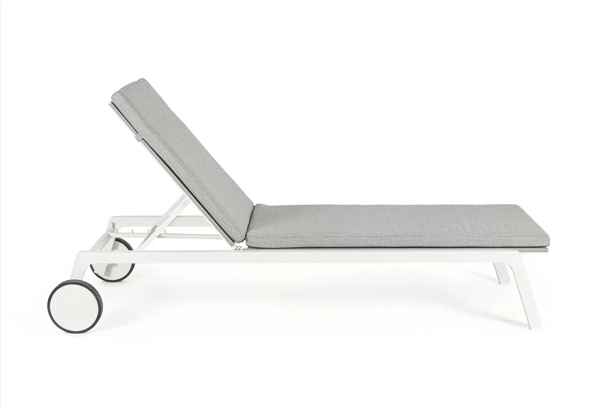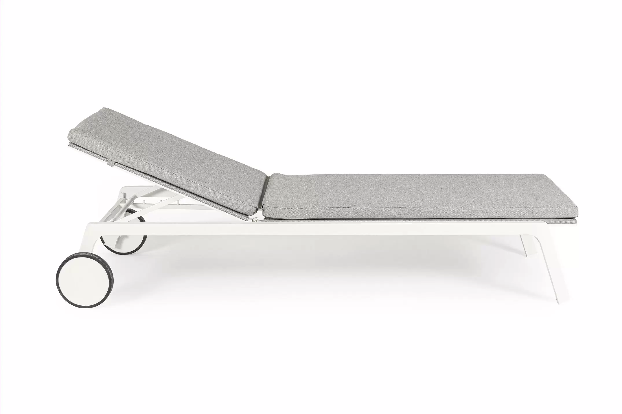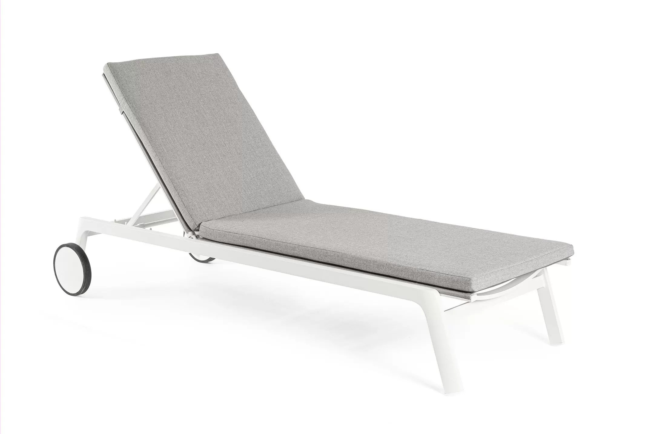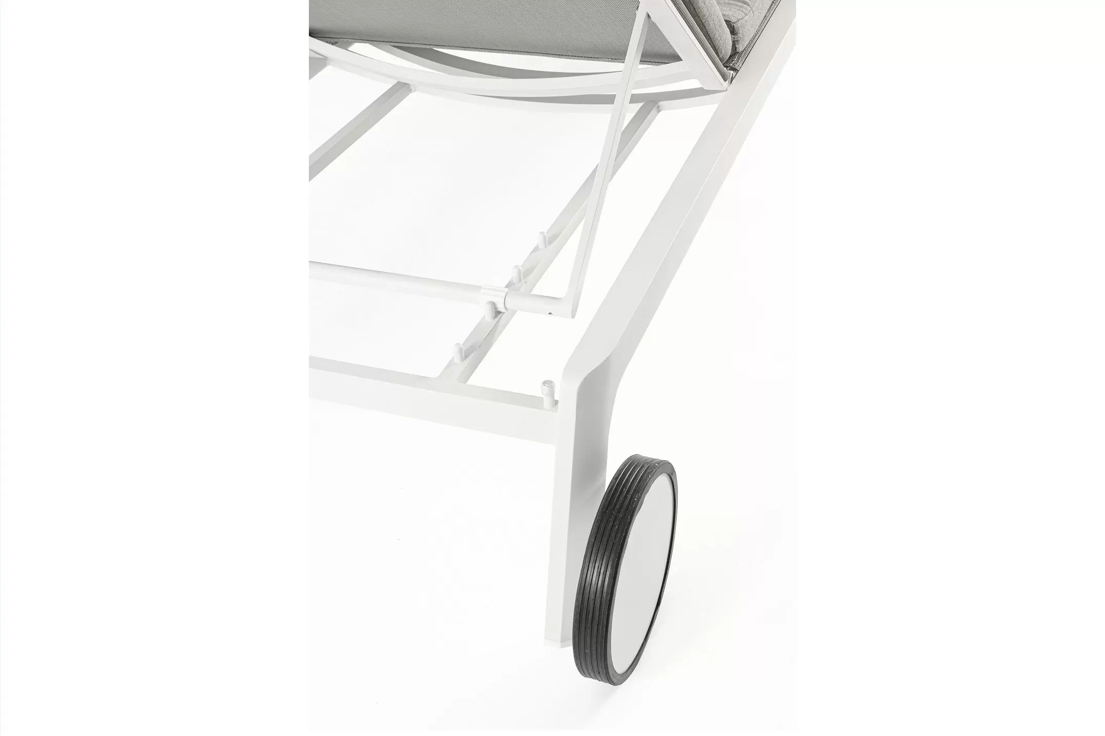 Aluminiowy leżak na taras z materacem z przeznaczeniem do użytku na zewnątrz lub w patio. Lekka konstrukcja, kółka dla łatwiejszego przemieszczania oraz wysokie siedzisko to zalety tego modelu.