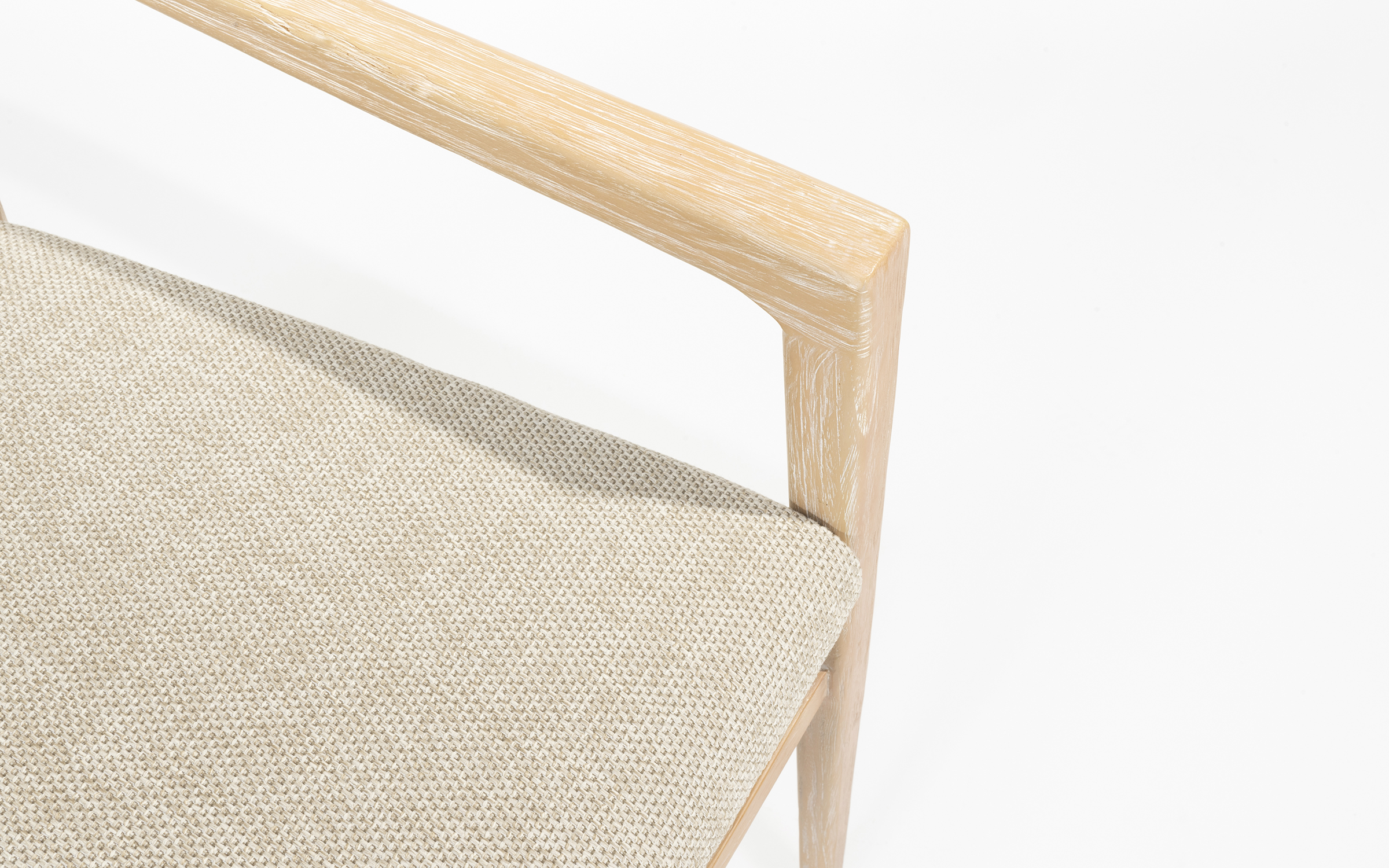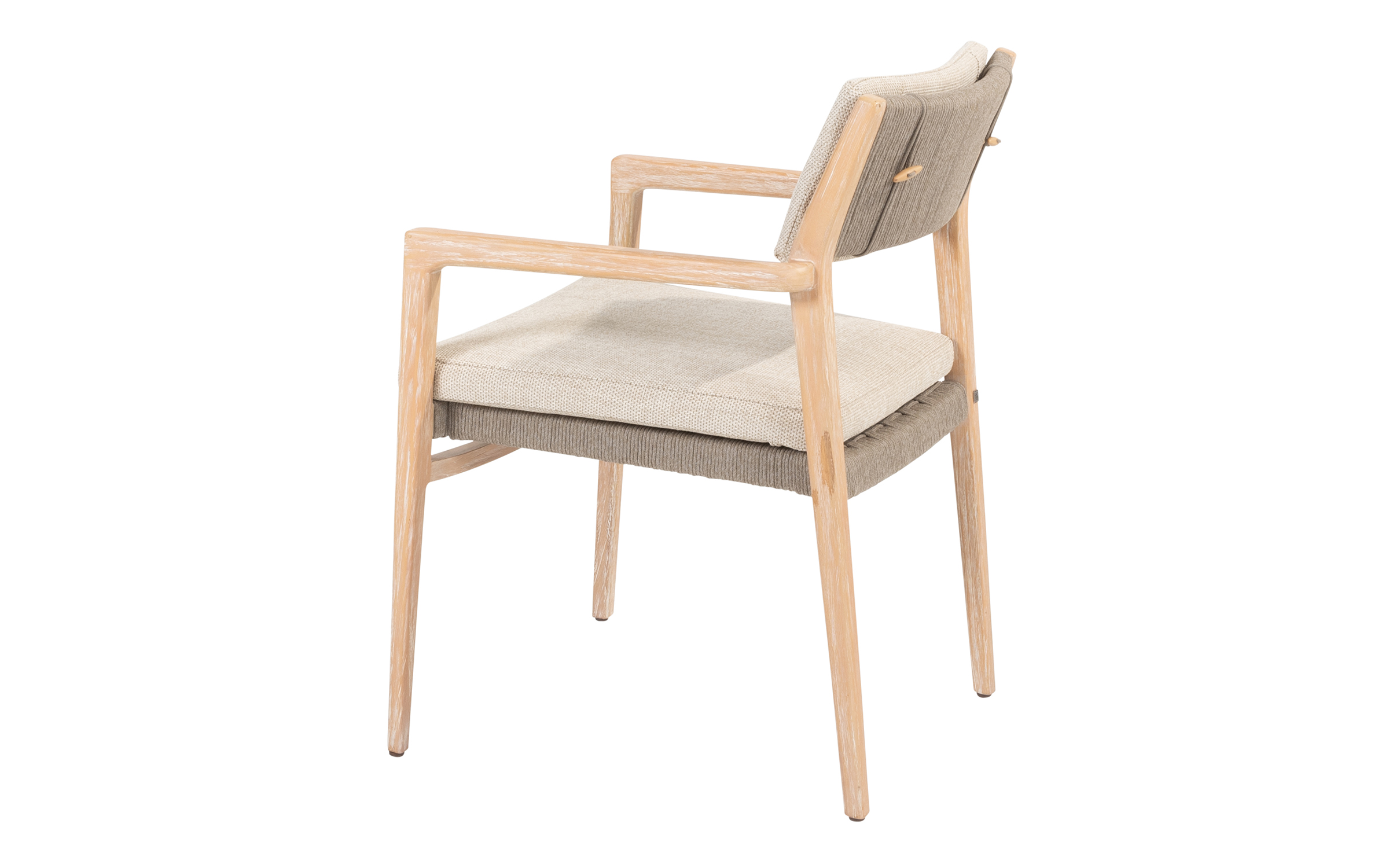 Krzesło jest wyposażone w wygodne poduszki w kolorze taupe, które zapewniają dodatkowy komfort i styl.