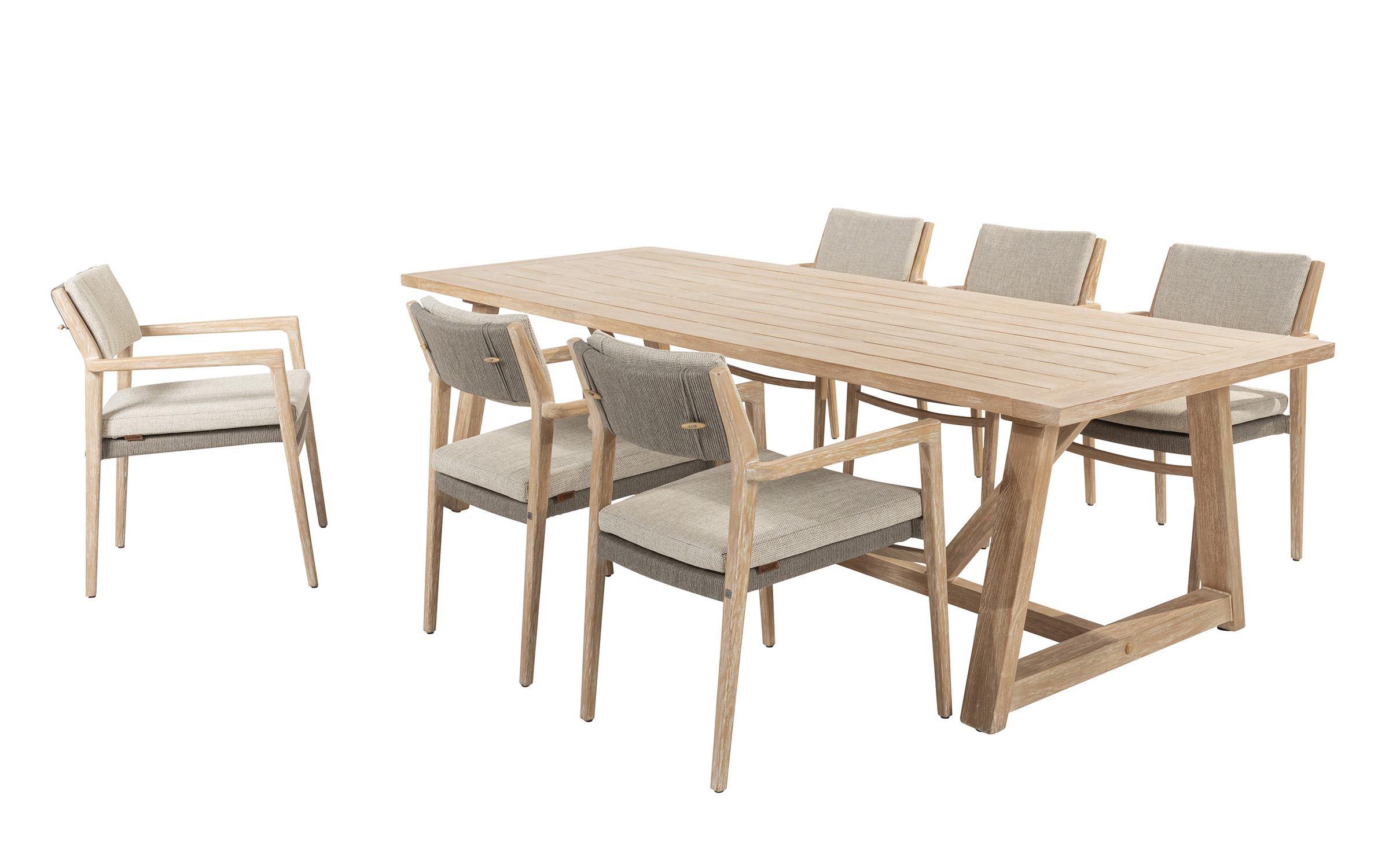 Rama z drewna tekowego gwarantuje trwałość i ciepły, naturalny wygląd, który pasuje do każdego środowiska zewnętrznego.