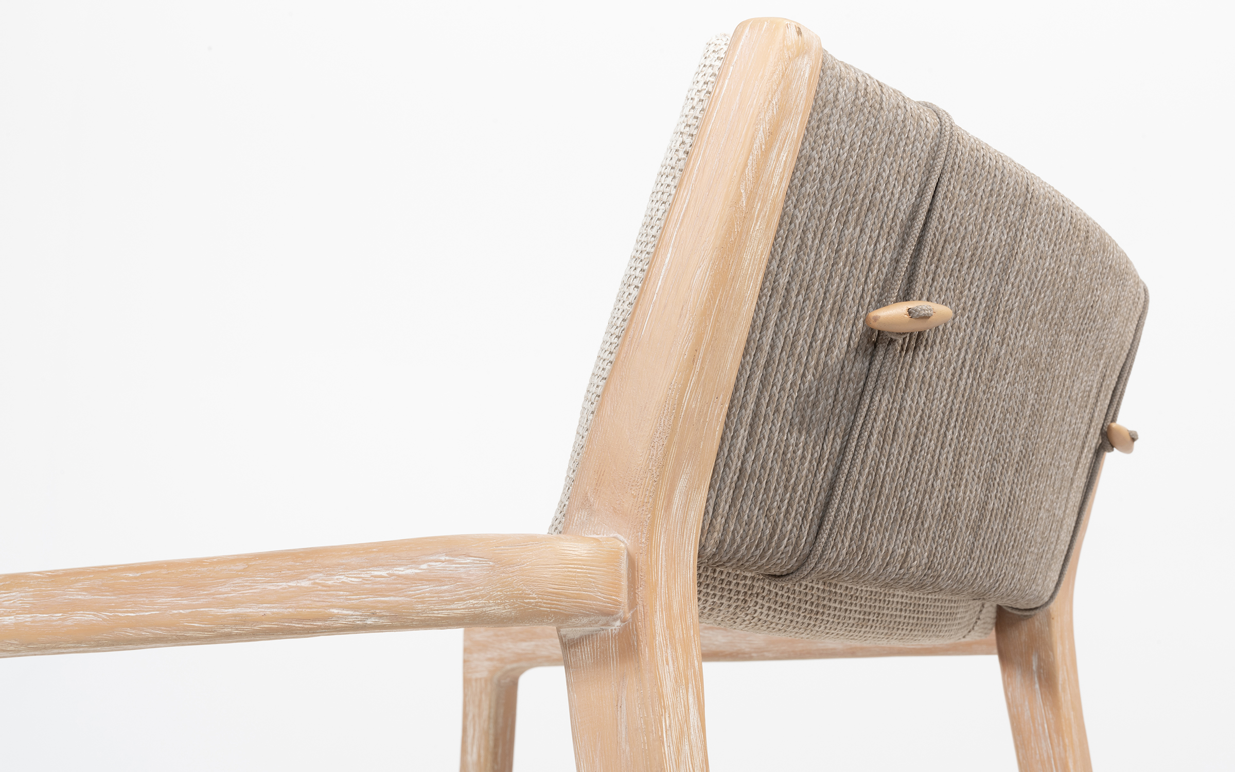Siedzisko i oparcie oplecione plecionką ze sznurka polipropylenowego odpornego na UV i warunki atmosferyczne..