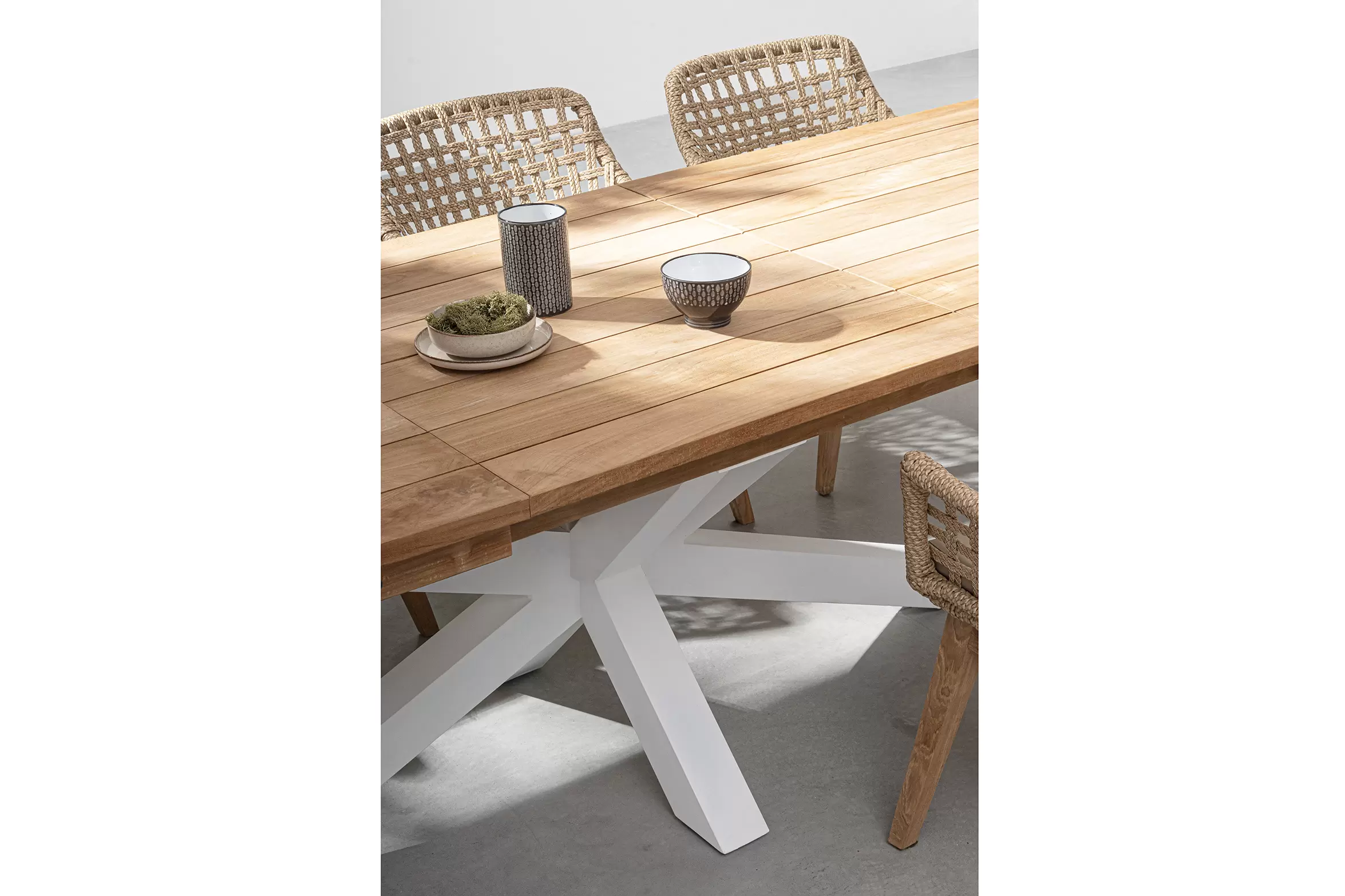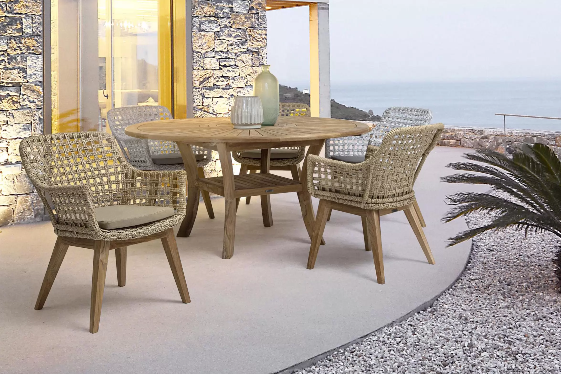 2x Nowoczesne krzesło stołowe z teaku i liny polipropylenowej na taras MADISON