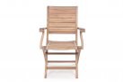Krzesło ogrodowe składane z drewna teakowego z ładnie profilowanym oparciem.