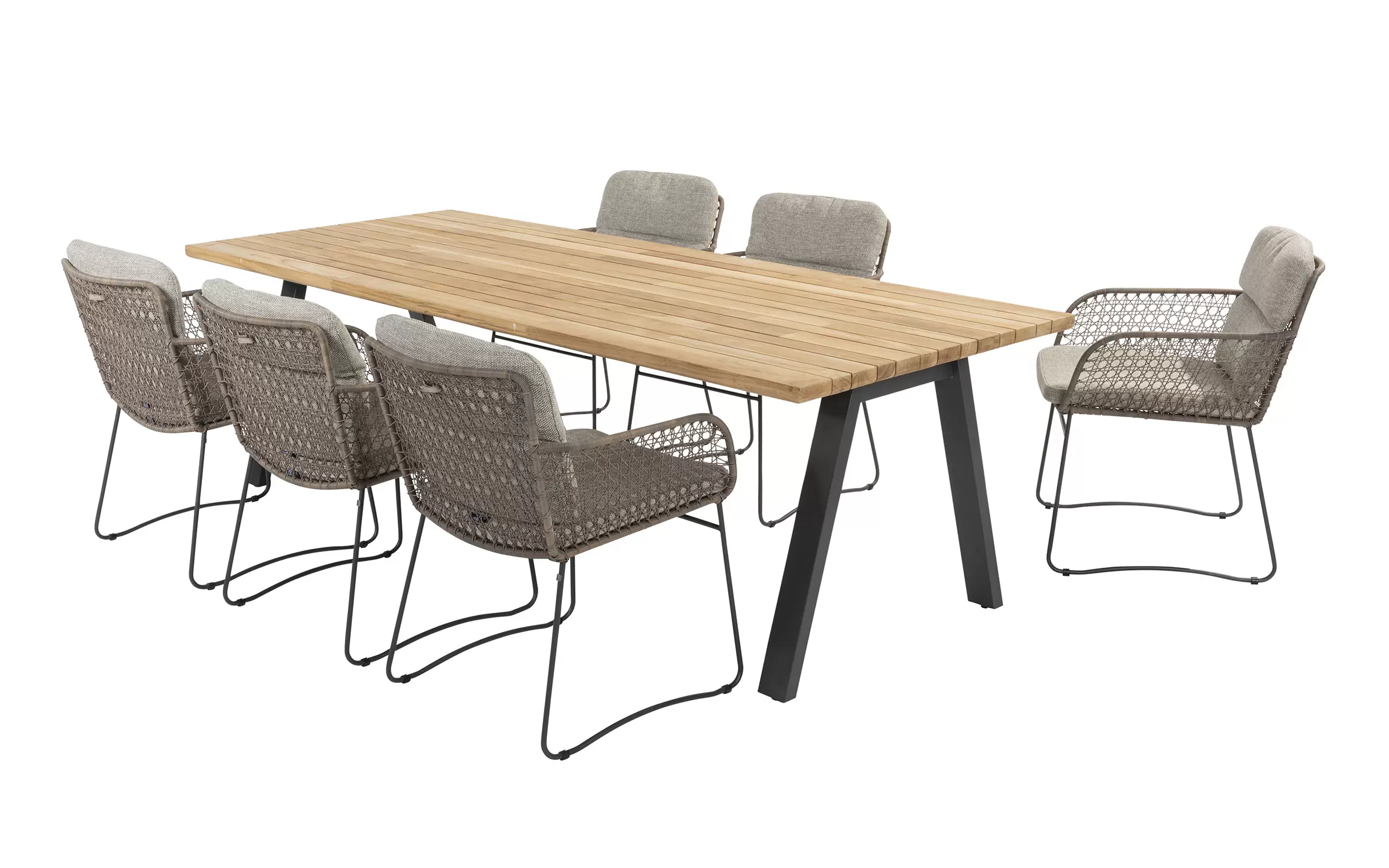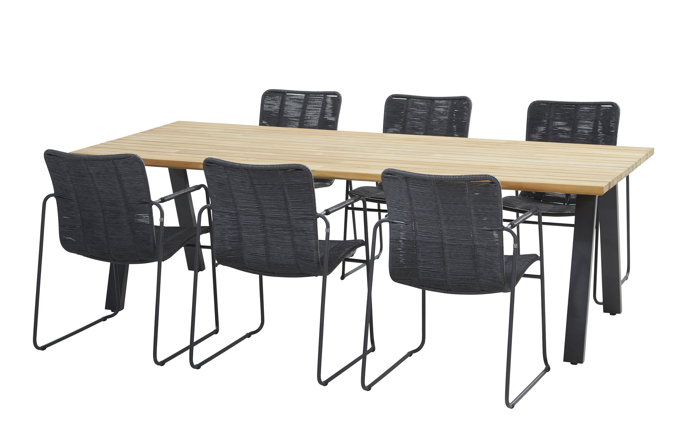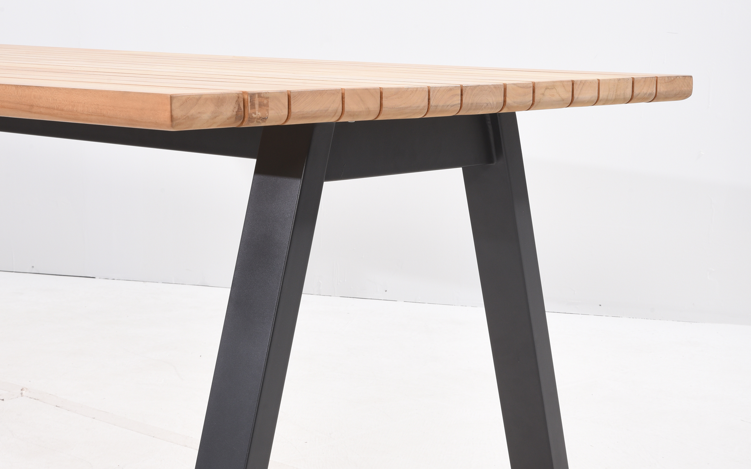 Aluminiowa rama jest o wiele grubsza niż ramy innych mebli ogrodowych, co daje meblom dużą stabilność i odporność na uderzenia. Aluminium jest również materiałem, który nie rdzewieje, co zapobiega powstawaniu plam na oplatającej ramę plecionce technorattanowej (w przeciwieństwie do konstrukcji stalowych). Aluminium to bezobsługowy materiał o nowoczesnym, ponadczasowym wyglądzie.