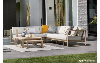 Komplet stołowy Applebee Antigua wykonany jest z drewna tekowego z wykończeniem robust i plecionki z pasów polipropylenowych. Grube poduszki w kolorze beżu zapewniają pełny relaks, a dzięki technologii Bee-Wett są odporne na wodę i warunki pogodowe. W kolekcji Antiqua dostępny jest także fotel, narożnik, krzesła obiadowe i stół.