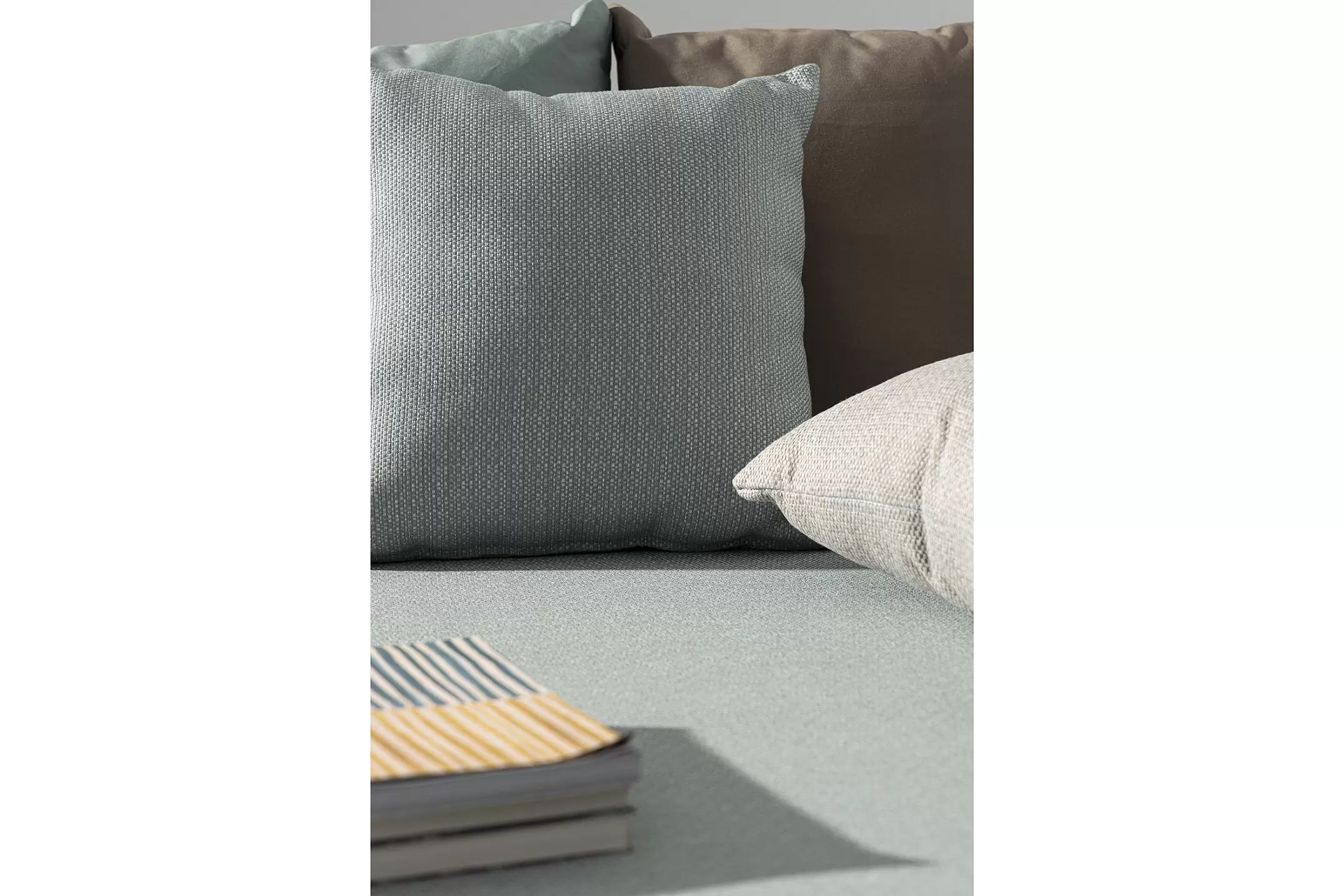 W komplecie poduszki szybkoschnące z obiciem z materiału Olefin na siedzisku oraz oparciu (6 sztuk: 2 w kolorze materaca, 4 w lekko innym odcieniu).