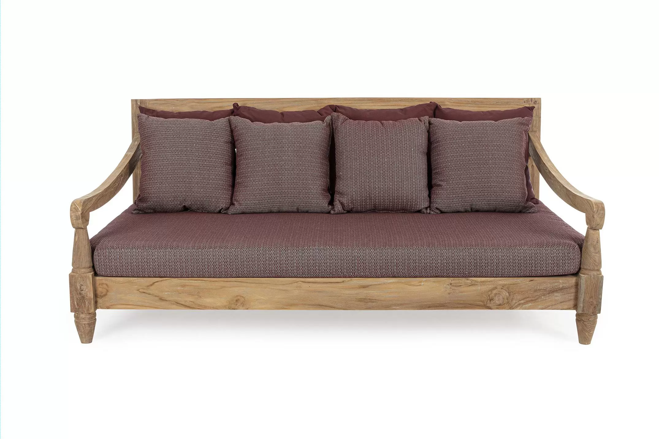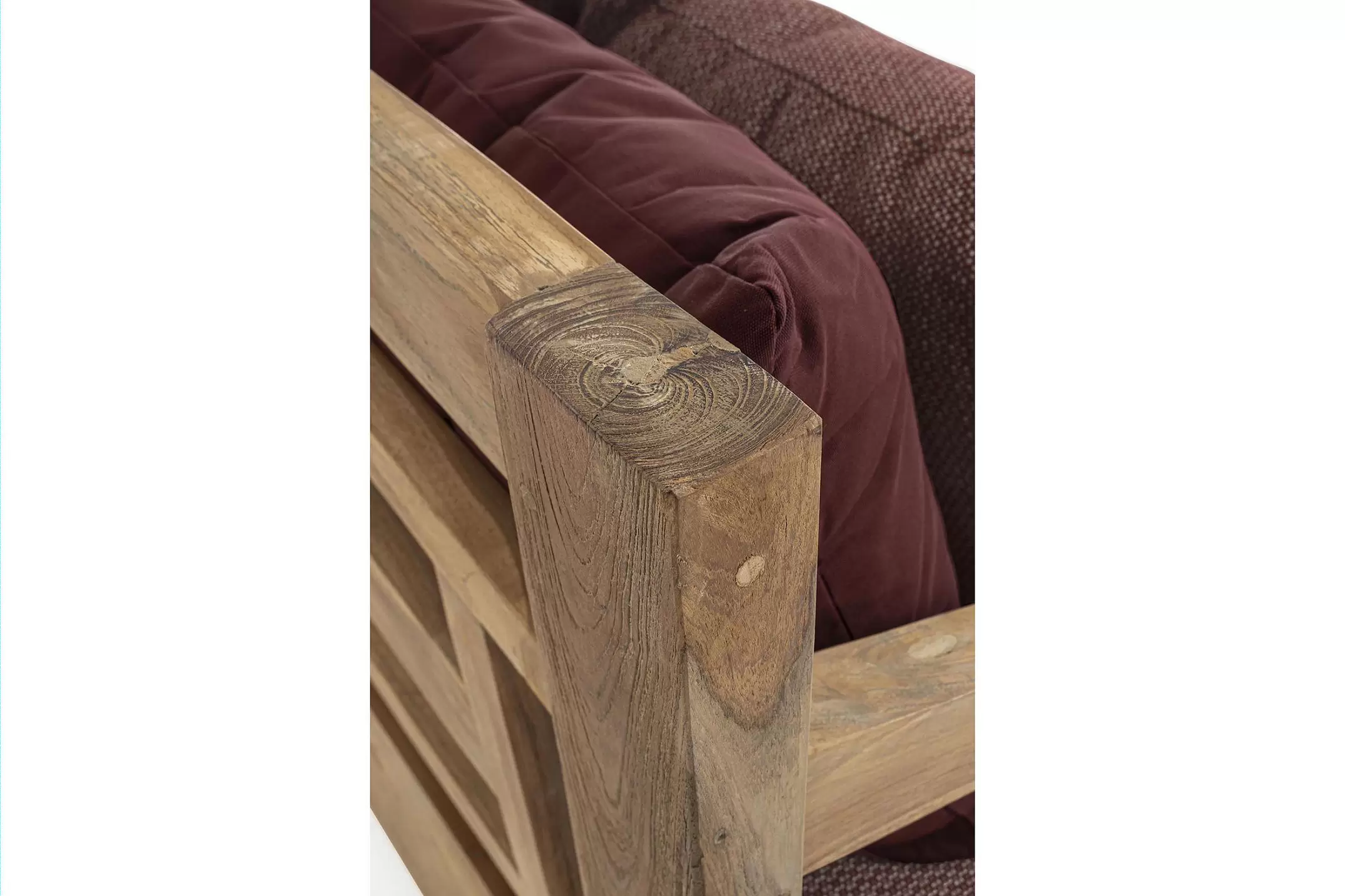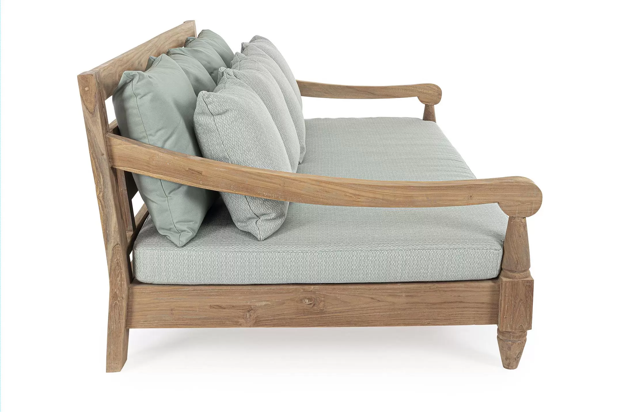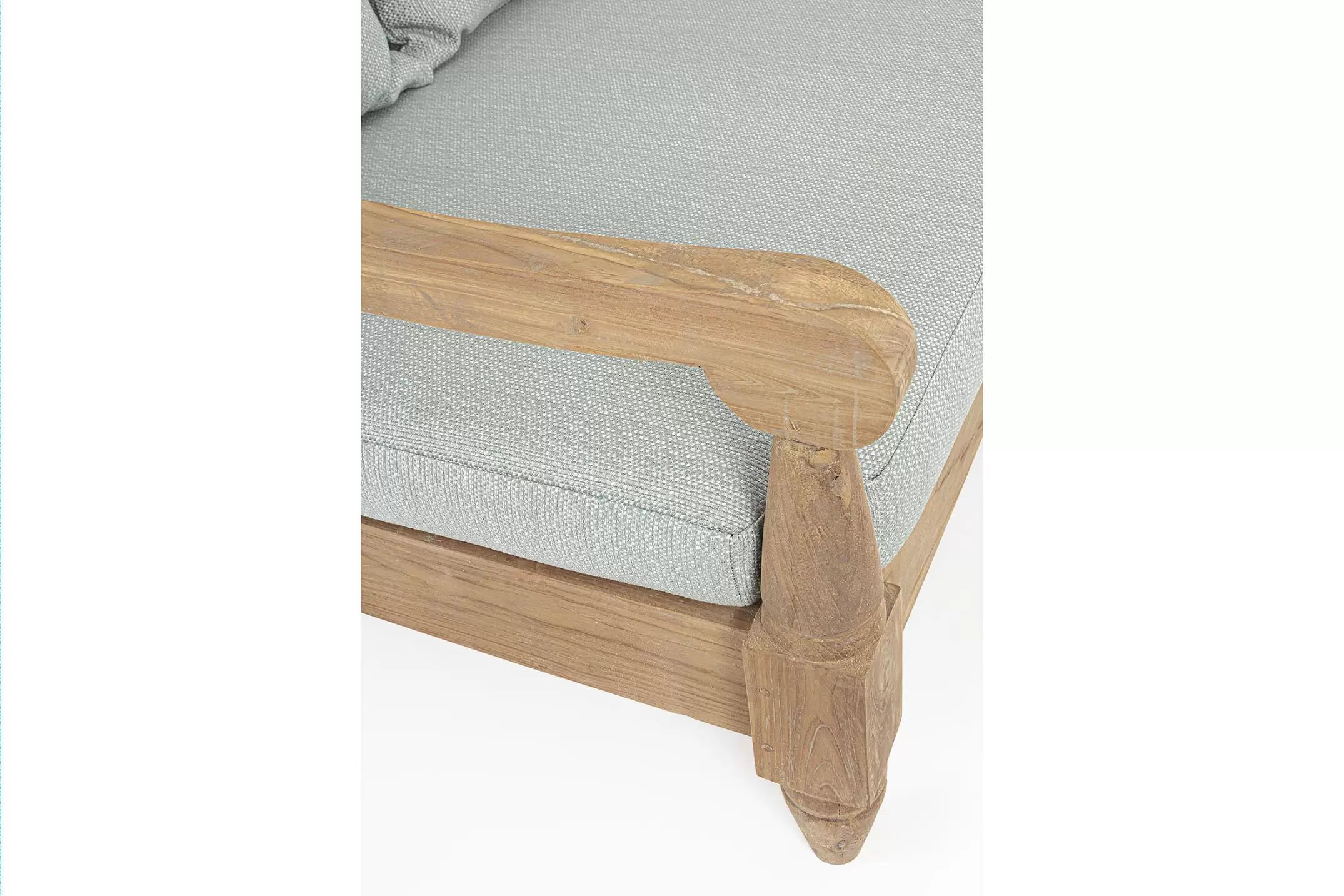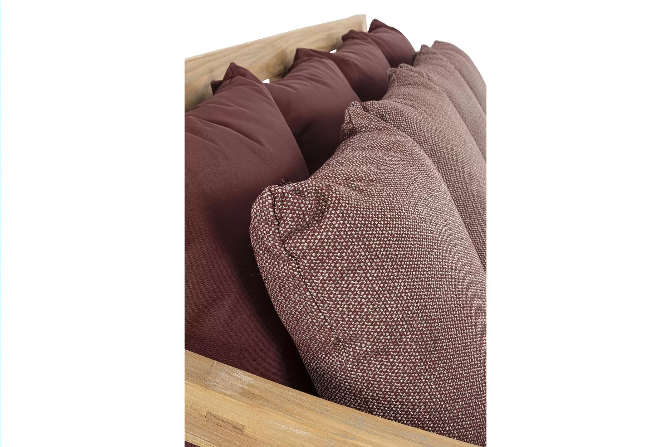 Sofa do ogrodowego patio wypoczynkowa z drewna teakowego w naturalnym kolorze z poduszkami w kilku kolorach do wyboru.