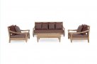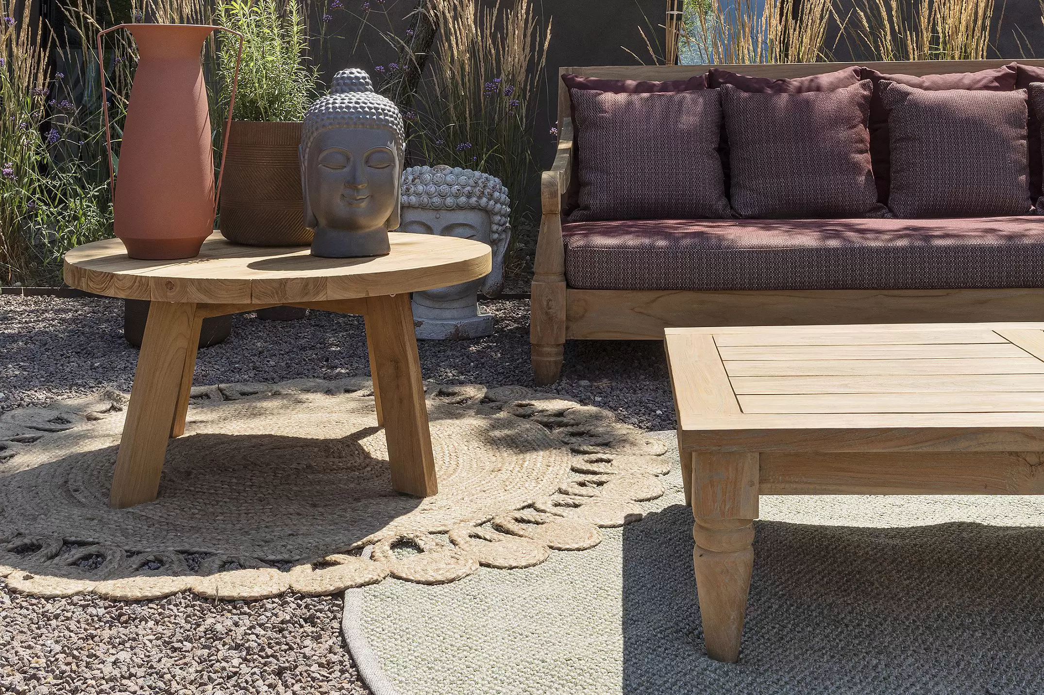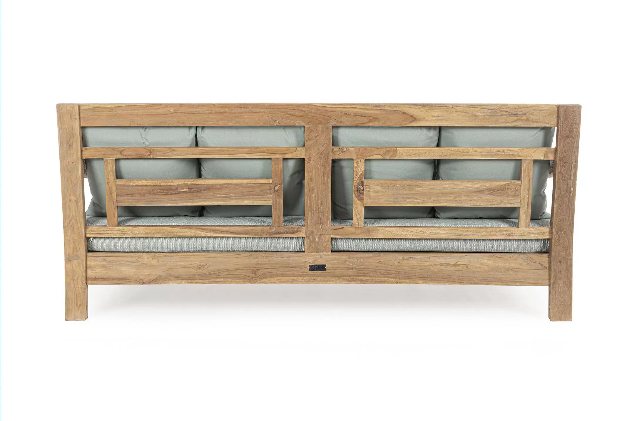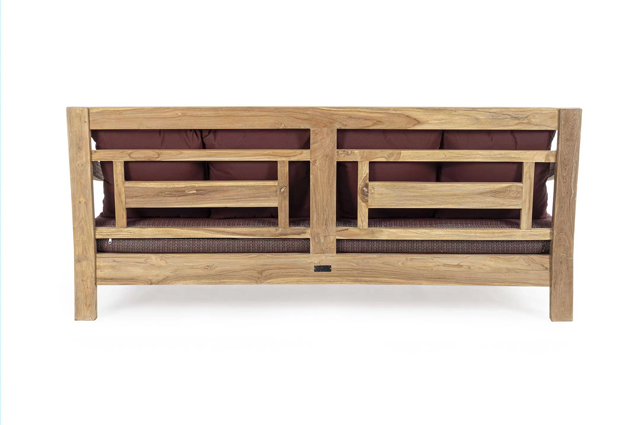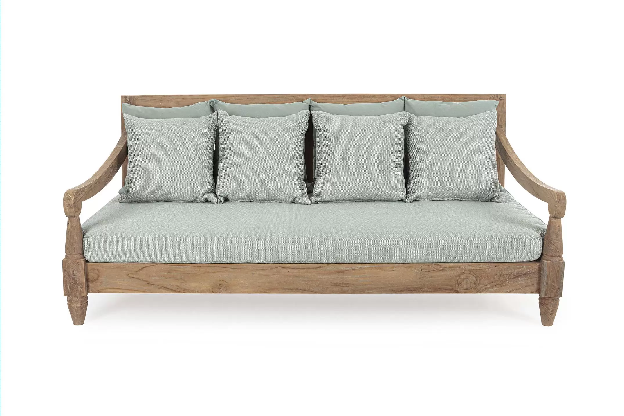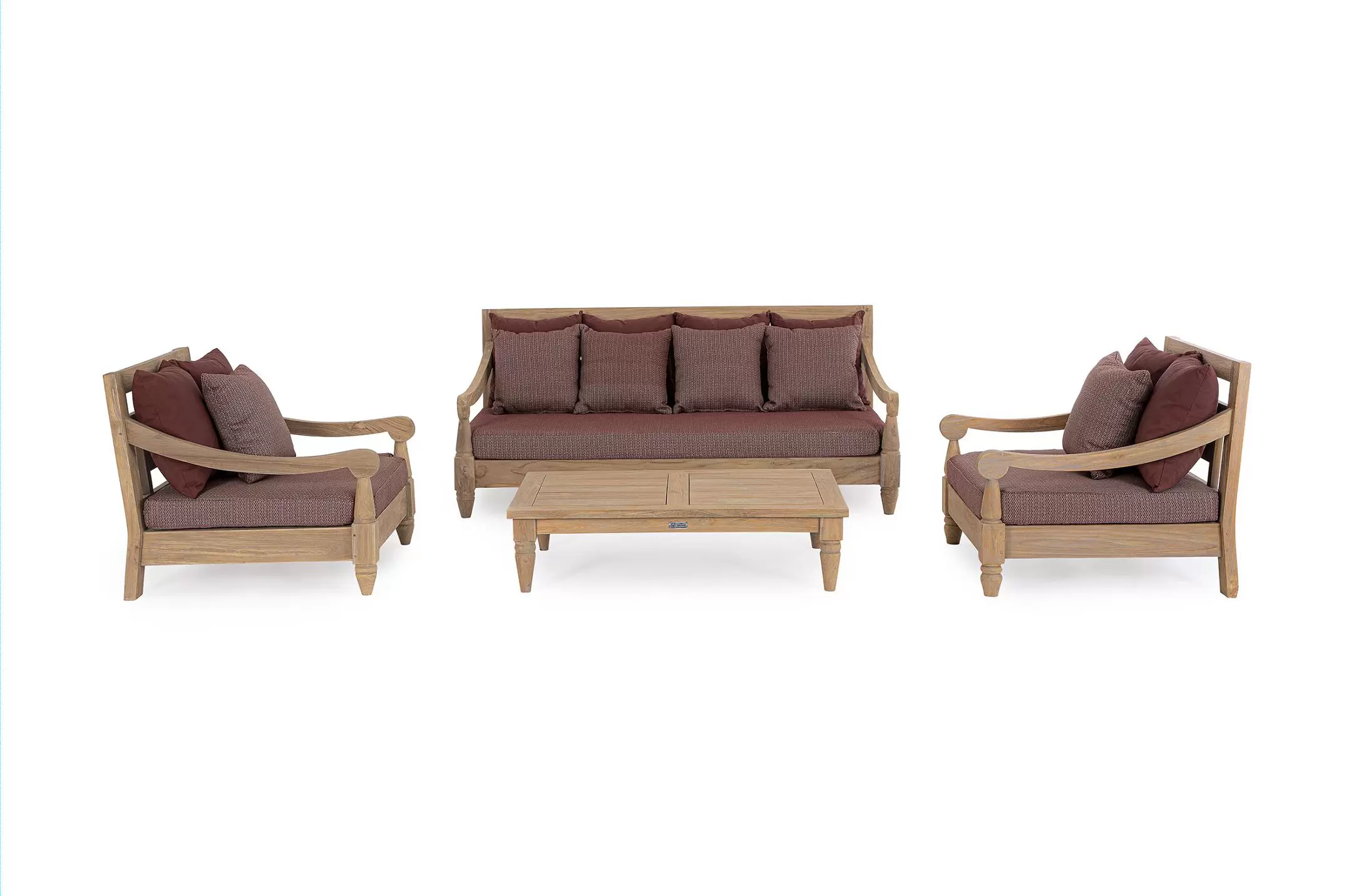 Sofa do ogrodowego patio wypoczynkowa z drewna teakowego w naturalnym kolorze z poduszkami w kilku kolorach do wyboru.