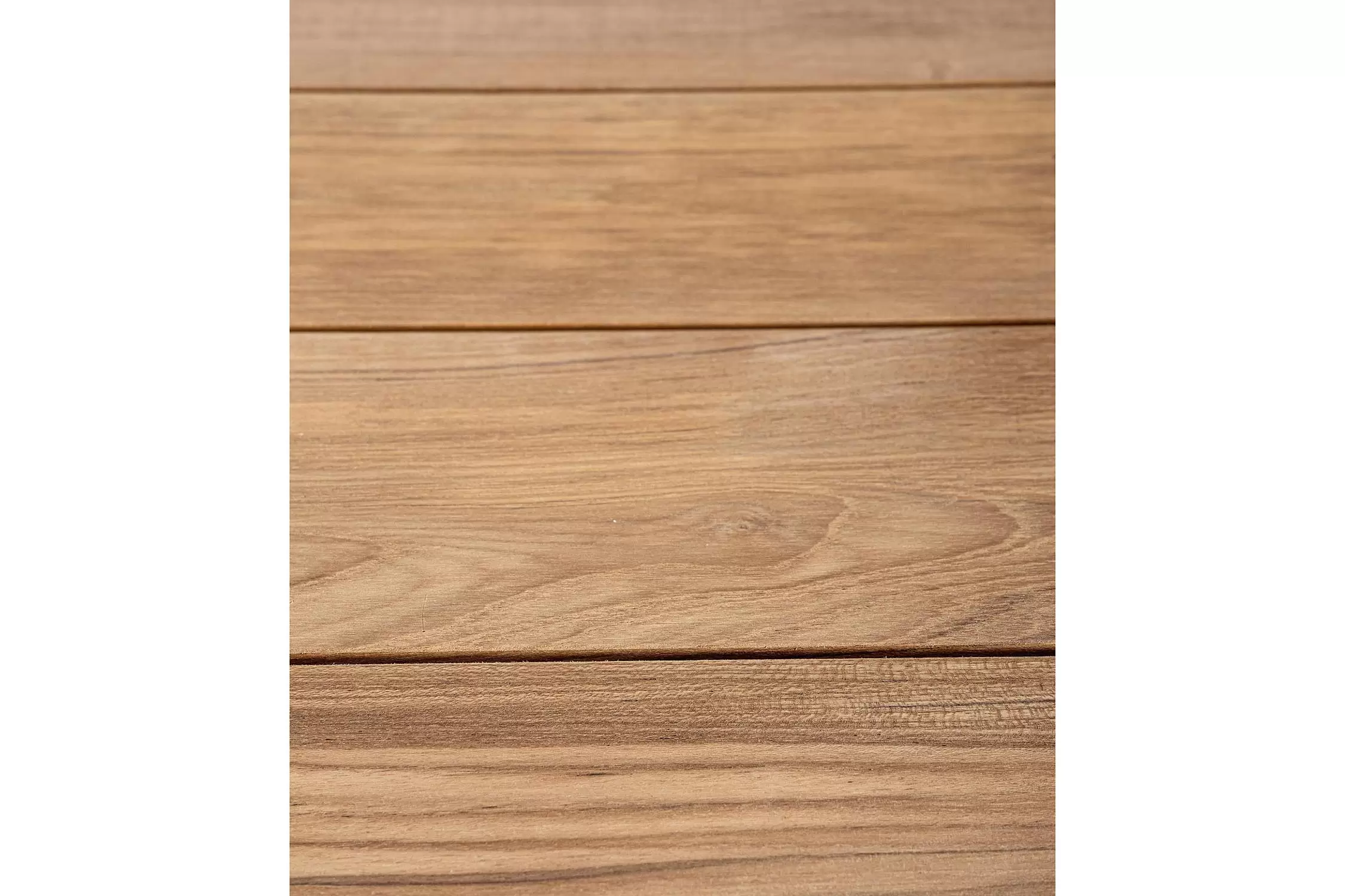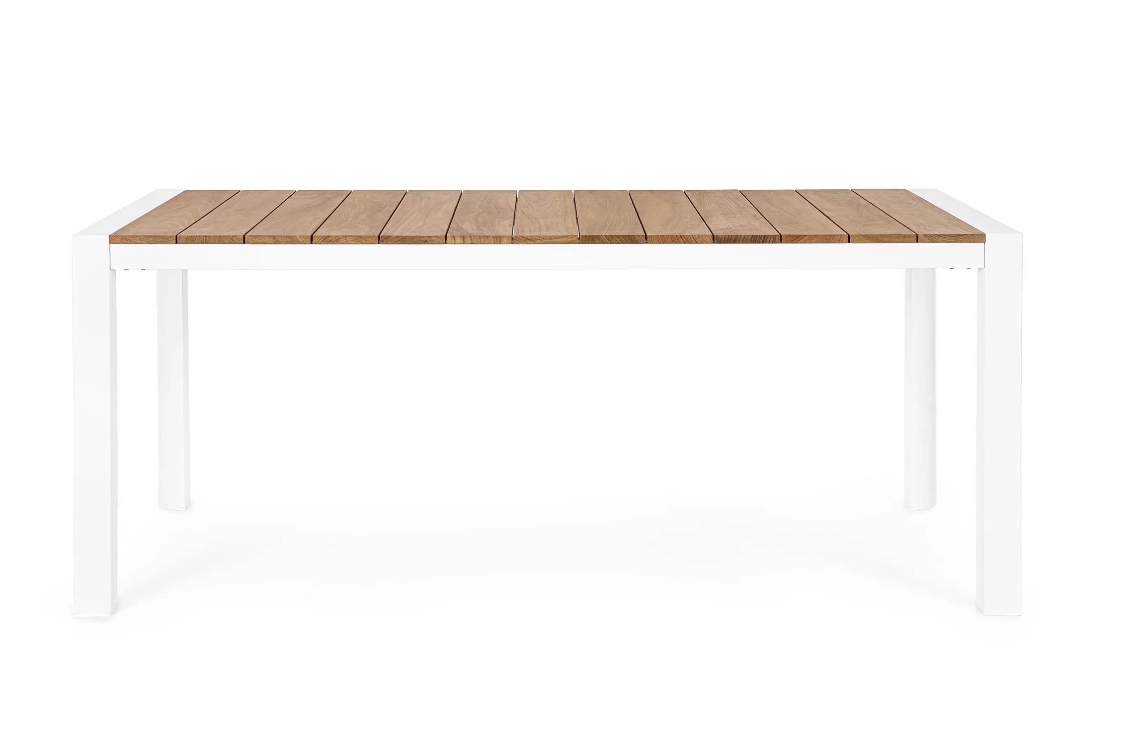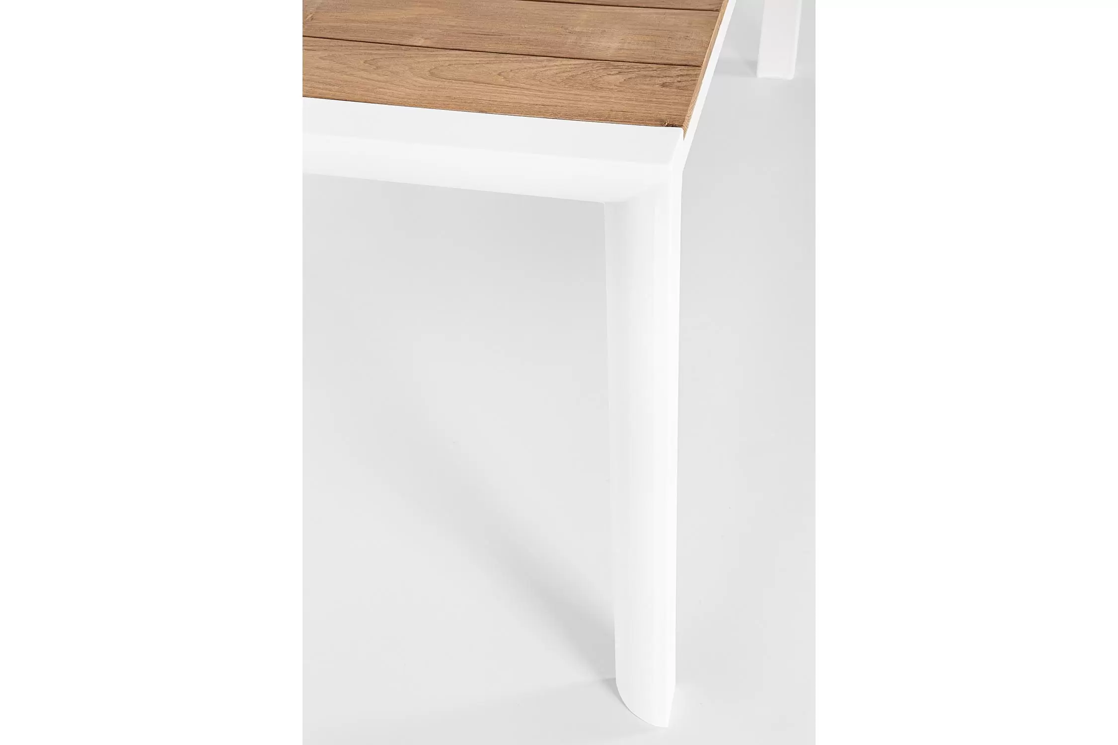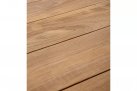 Blat stołu z desek teak. Elementy montażowe ze stali nierdzewnej.