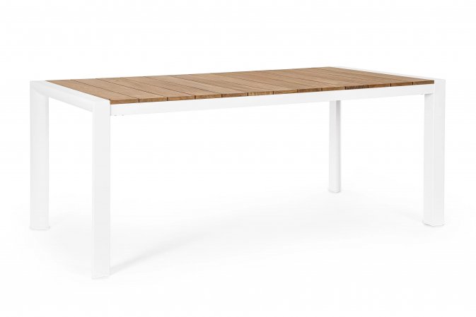 Stół do ogrodowej jadalni 180x90 cm. Aluminiowa konstrukcja z blatem z drewna teakowego.