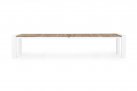 Stół do ogrodowej jadalni rozkładany. Mechanizm rozkładania teleskopowy. Elementy poszerzające blatu chowane pod blatem.