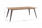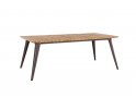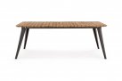 Stół z industrialnymi nogami aluminiowymi ciemnoszarymi i blatem z drewna teak z poprzecznych deseczek teak..