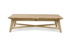 Stolik kawowy należący do kolekcji Coachella Bizzotto. Prostokątny blat z gwiaĹşdziście ułożonymi deskami z drewna teakowego premium.