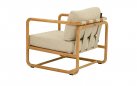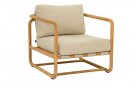 Fotel ogrodowy DOLCE to elegancki mebel wypoczynkowy z naturalnego drewna teak, inspirowany estetyką lat 70. Zaokrąglone profile, widoczne pasy podtrzymujące poduszkę i miękkie linie konstrukcji tworzą harmonijną całość. Poduszka All Weather Bee Wett w kolorze jasny beż (Cotton Flower) zapewnia wysoki komfort i odporność na warunki atmosferyczne. Fotel doskonale sprawdzi się jako samodzielny element lub część zestawu wypoczynkowego.