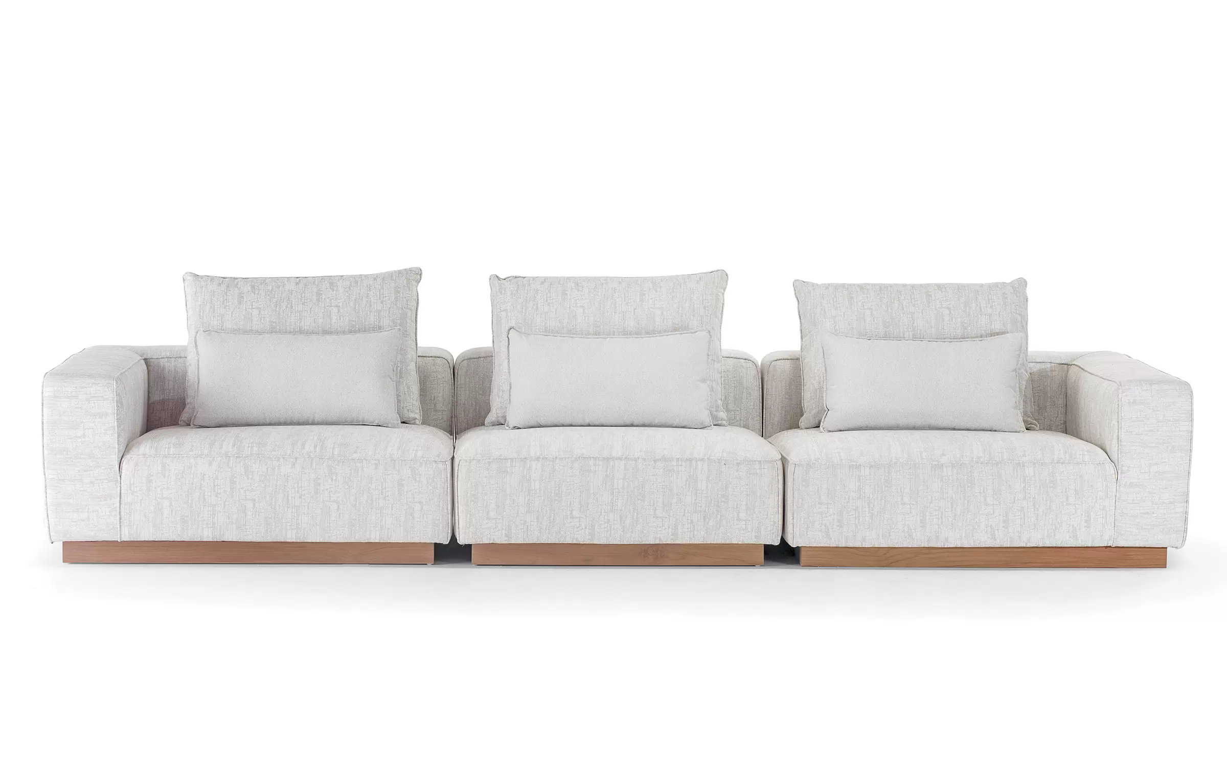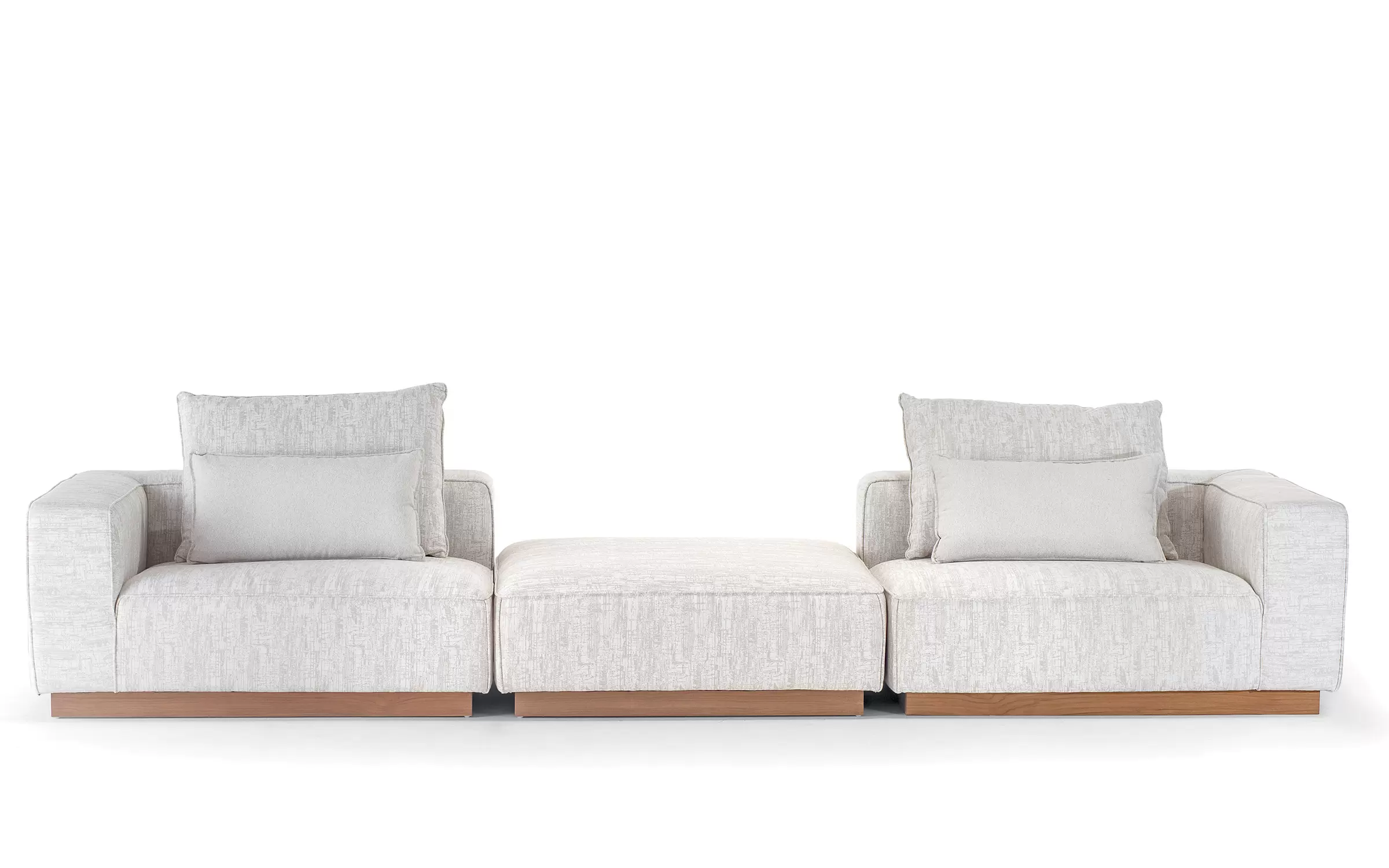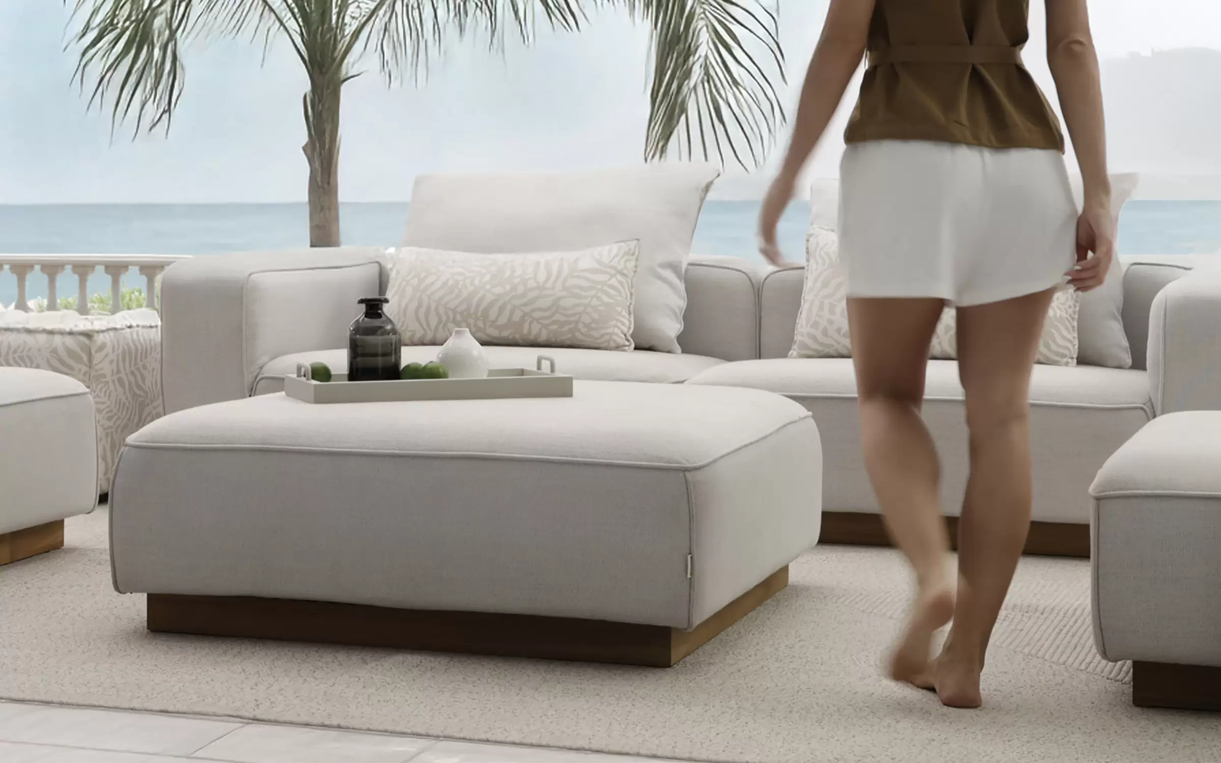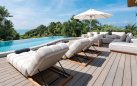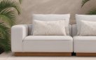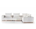 DON SET marki Grattoni to luksusowy zestaw modułowy do ogrodu i tarasu. Konstrukcja wykonana jest z aluminium malowanego proszkowo w kolorze antracytowym, uzupełniona eleganckimi wstawkami z drewna teakowego u podstawy każdego z elementów. Poduszki w kolorze jasnoszarobeżowym wykonane są z tkaniny akrylowej Olefin, wypełnione szybkoschnącą pianką quick dry foam, odporne na wilgoć i promieniowanie UV.